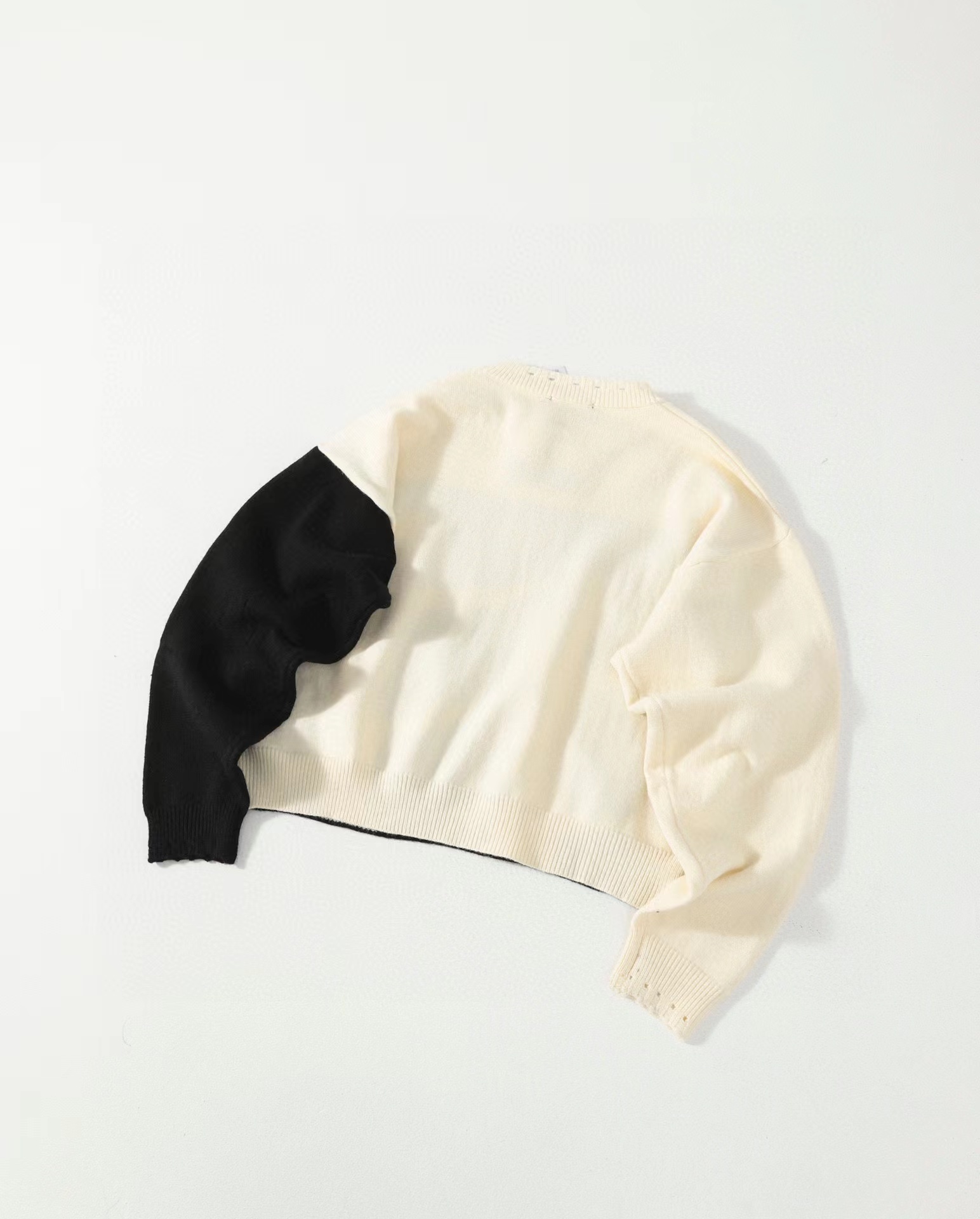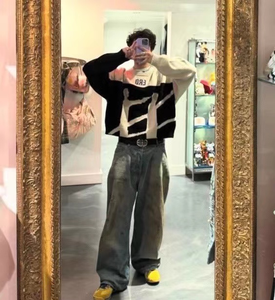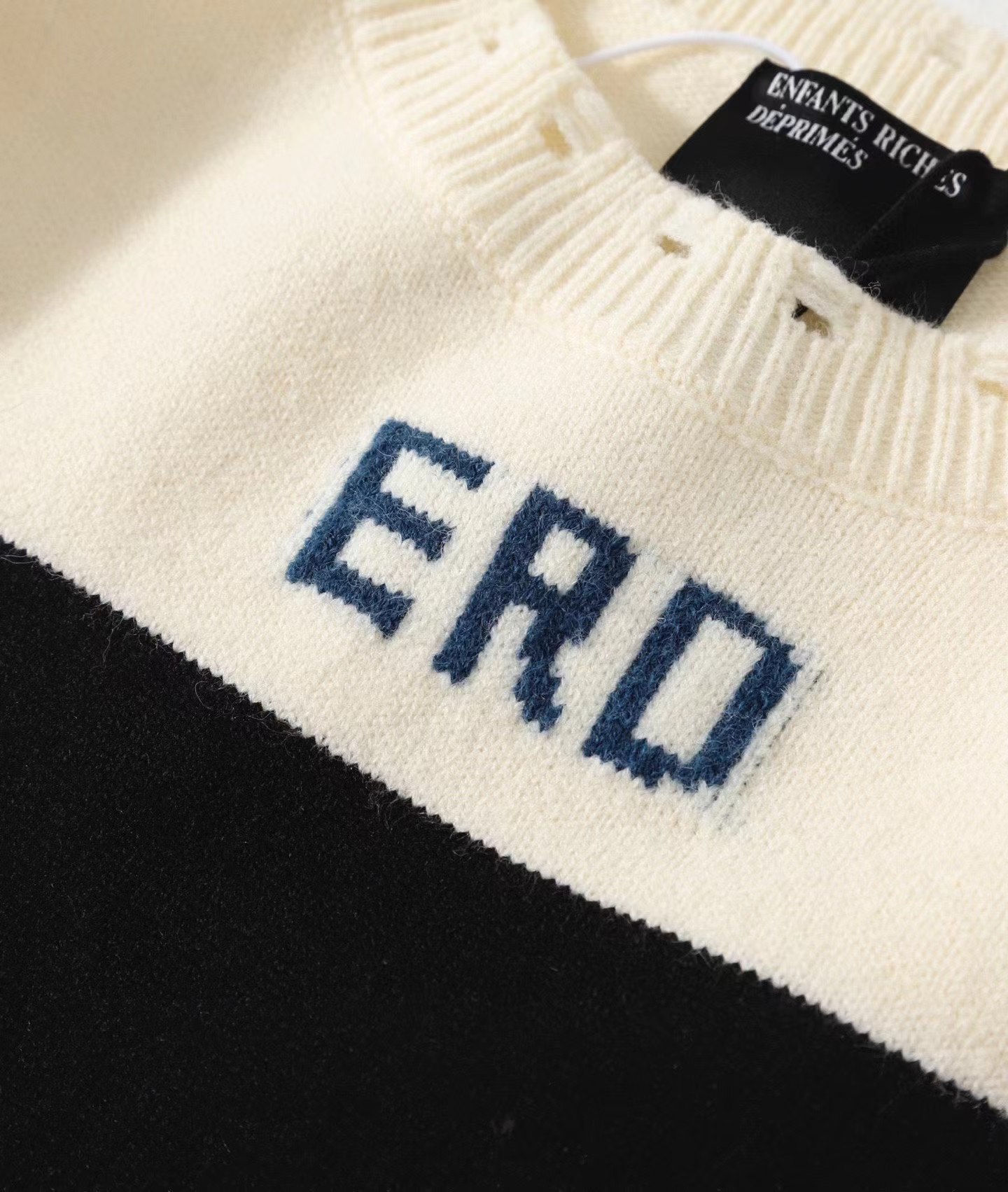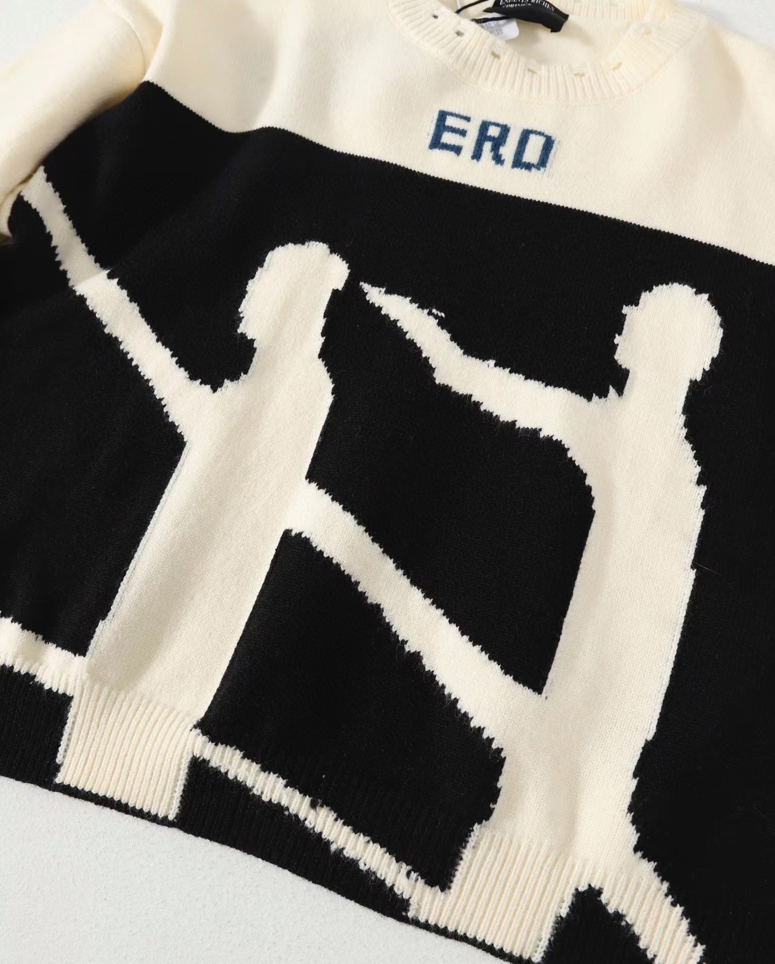 时尚高街手工破坏羊绒毛衣 情侣款爆款来袭, 致敬香港jing典电影【无间道】画面,羊极绒手工粗针勾破做坏工艺,时尚偏短款宽松版设计,上身gao级感十足!定制澳洲羊毛混纺面料,16支走锭纱线嵌花工艺,毛条细度19.5-19.7 ,整体走线没有过度松垮,也不会很扎肌肤,上身chao级舒适,锁温更保暖!工艺方面采用人像剪影嵌花公子,领口袖子纯手工粗针勾破做坏,非常耗时重工。宽松偏短款的设计风格,上身显瘦显腿长,调性十足百搭的一款!潮咖男女内搭外穿,自留好货,强烈推荐~