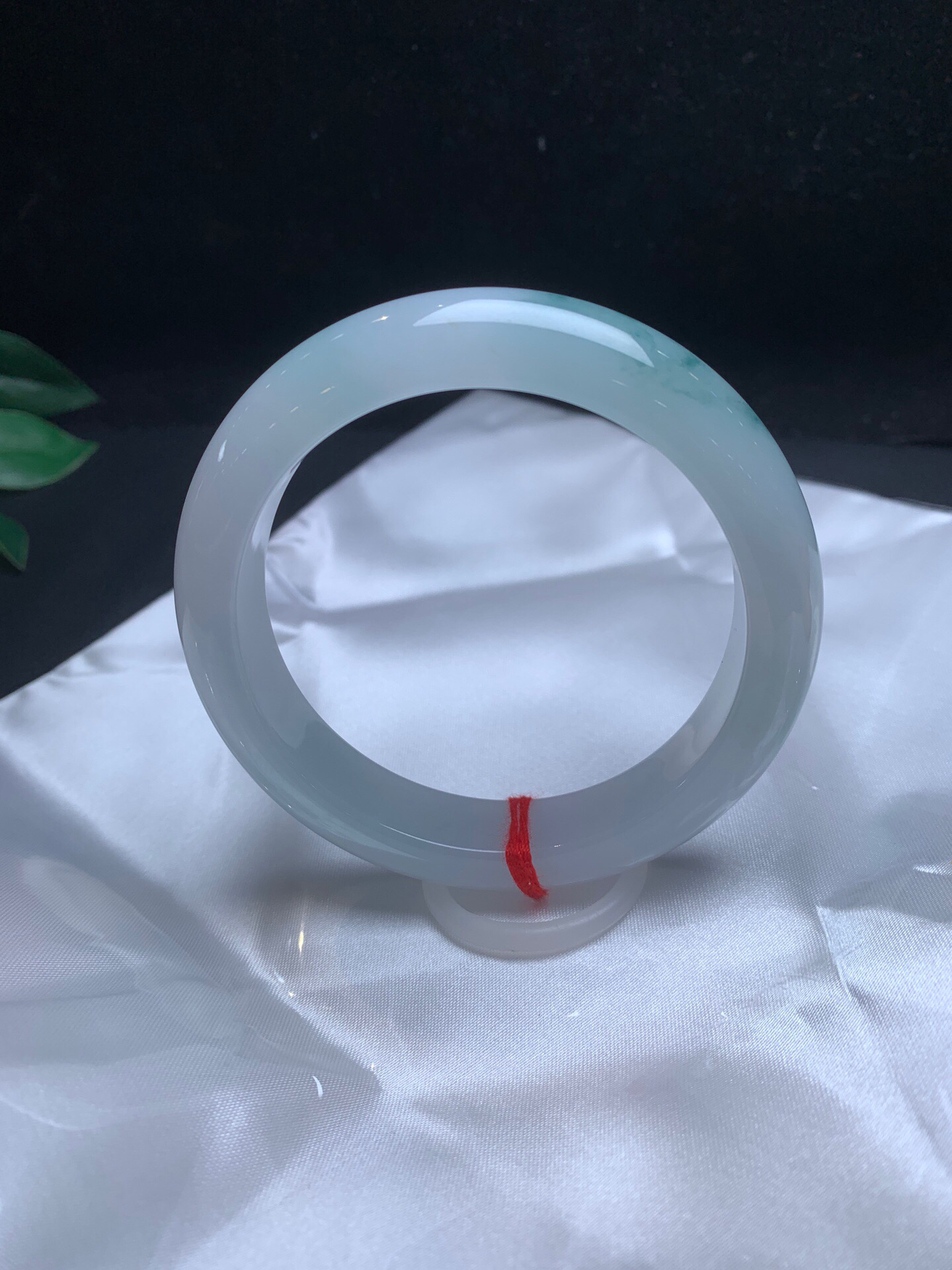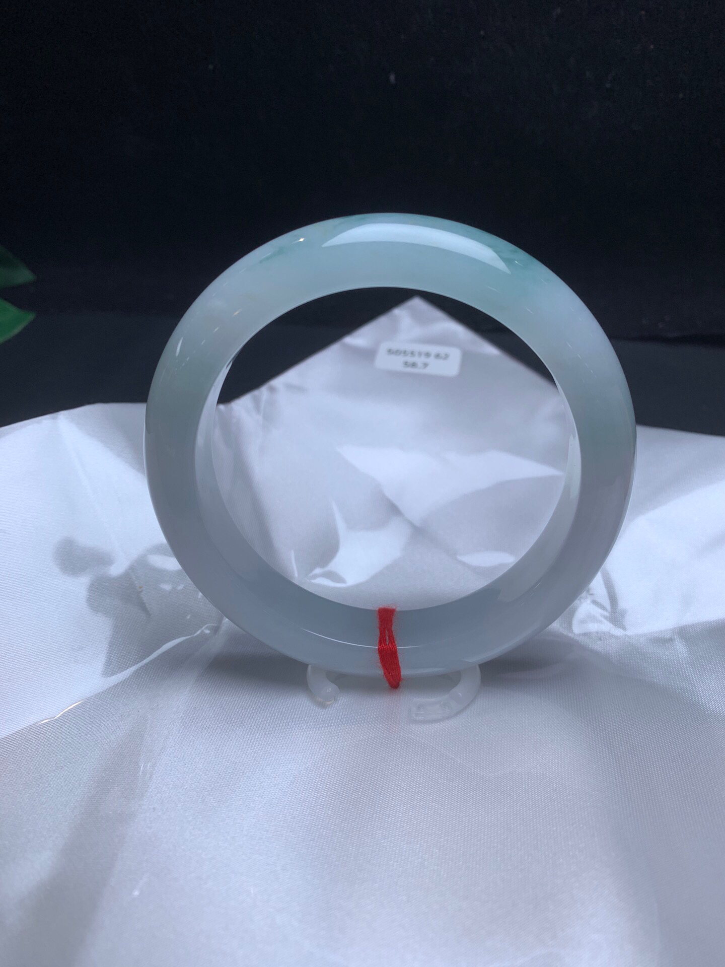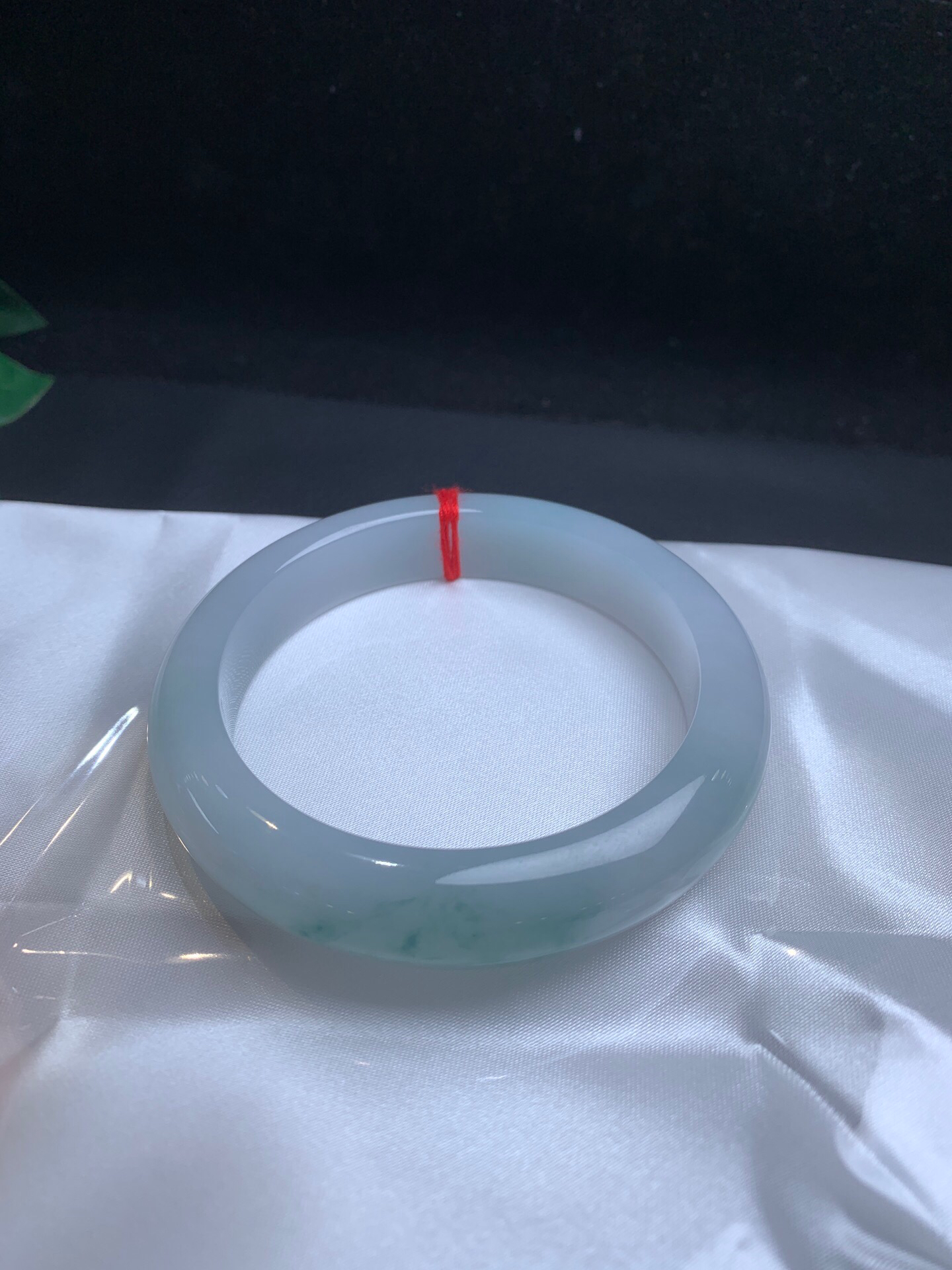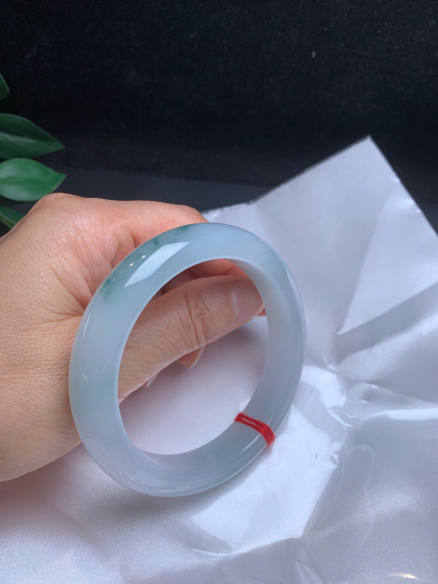 620106,58.7飘花手镯,12.7-9mm,润润的,底妆干净清新 飘清新蓝花,干净完美。超值价💰35800 #优石客珠宝#香玉荟萃