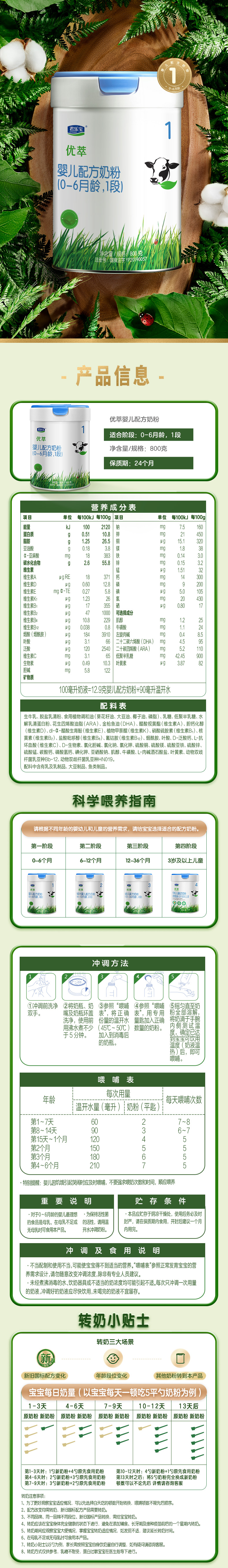 君乐宝优萃奶粉1段800g(0-6月龄)
