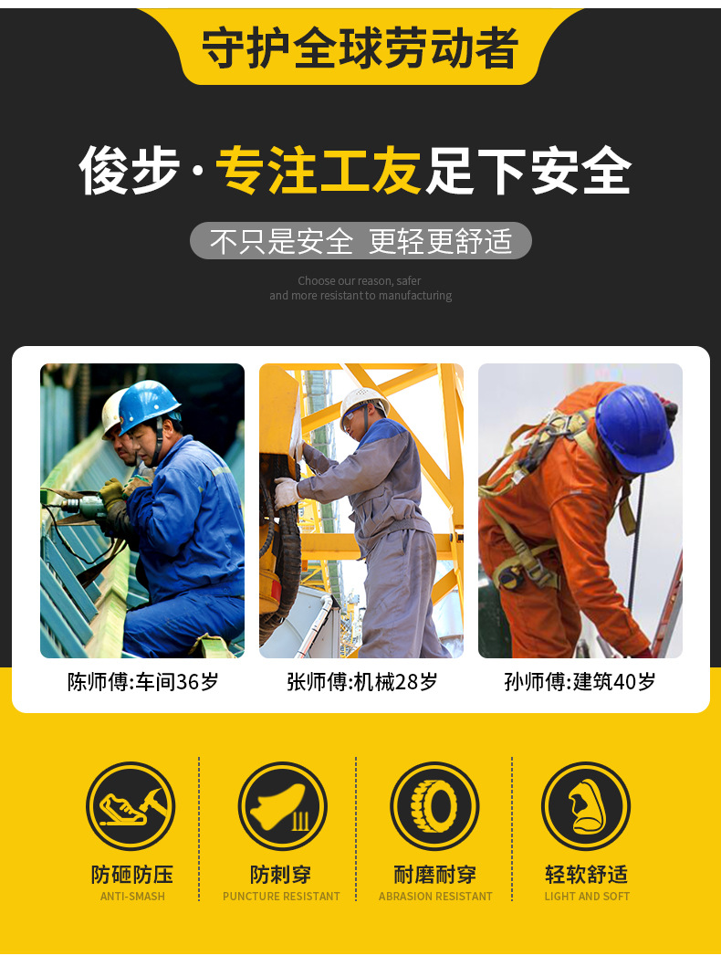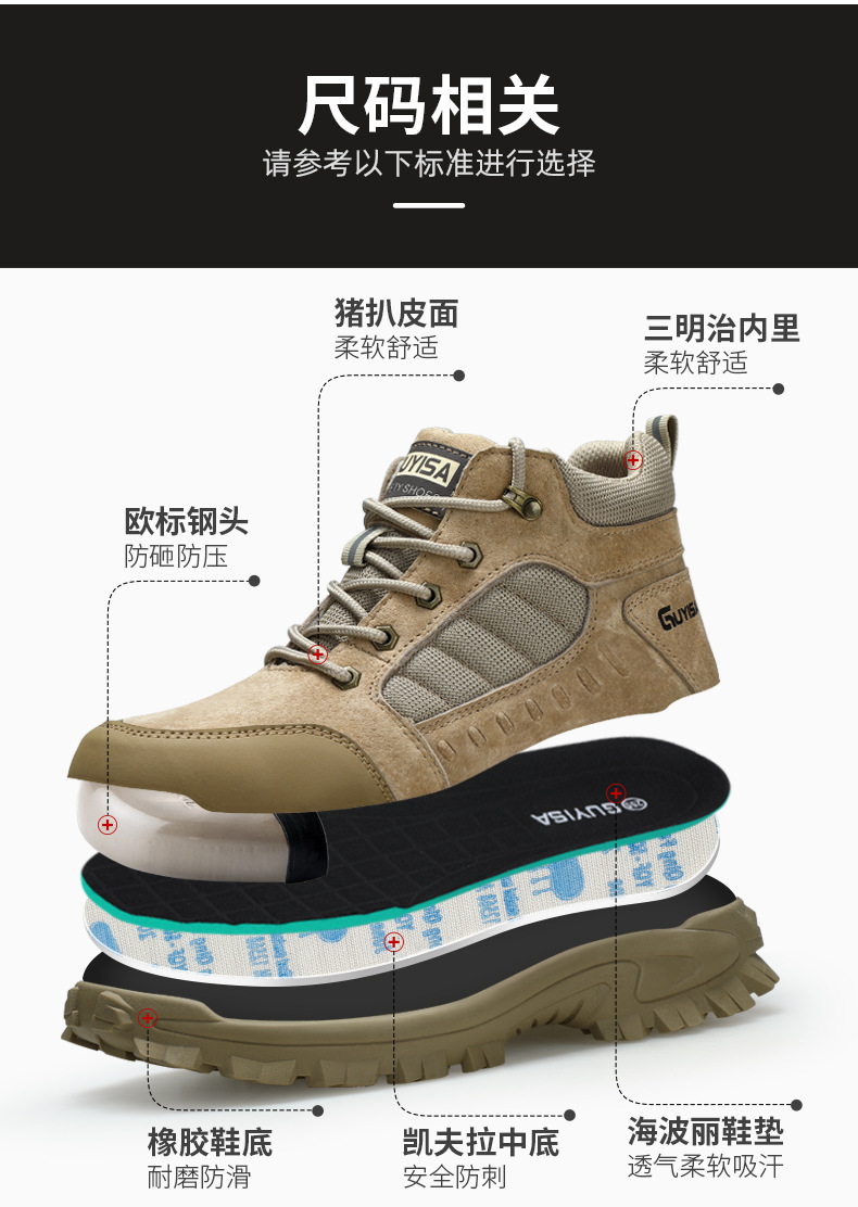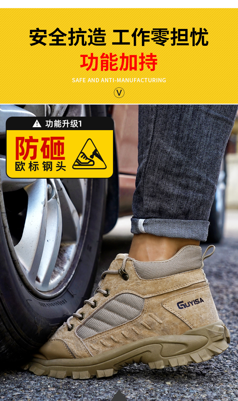劳保鞋男防砸防刺穿鞋工装反绒时尚轻便四季款工作鞋
