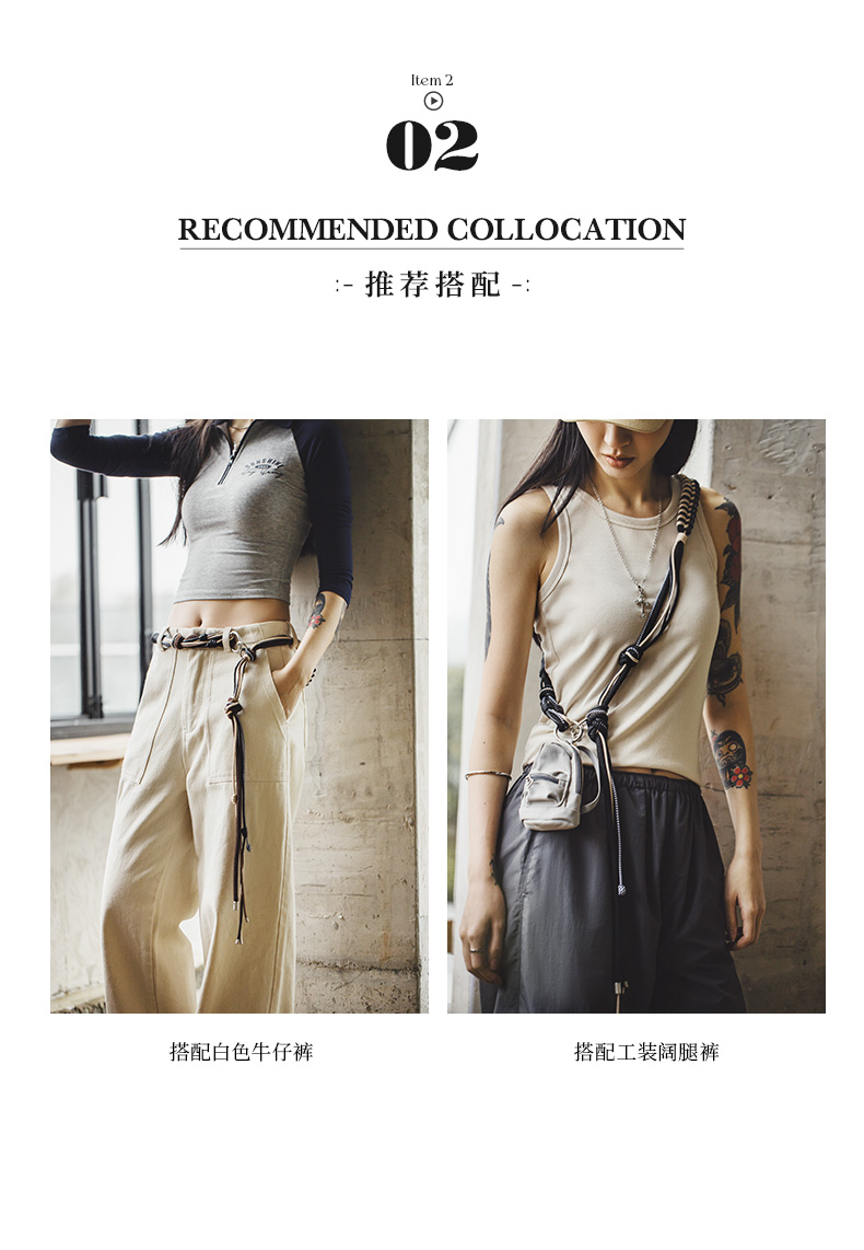马登女装vintage编织绳腰带女士腰绳腰链配饰装饰皮带可调节跨带