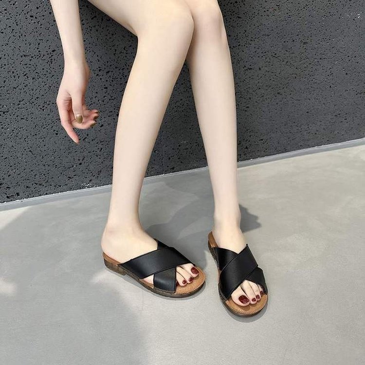 凯撒KAISER 软底软面牛皮交叉款凉鞋/拖鞋 软底软面 透气舒适不磨脚