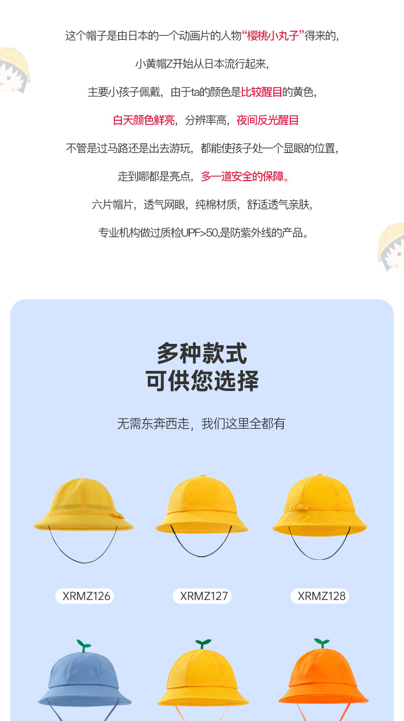 【幼儿园小黄帽】儿童宝宝帽子春夏儿童渔夫帽男女童卡通可爱幼儿园出游防晒小黄帽