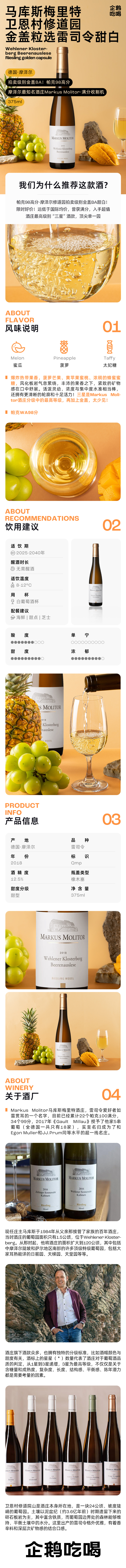 企鹅市集|德国马库斯梅里特Markus Molitor金盖BA甜白葡萄酒 375ml粒选雷司令 顶尖单一园