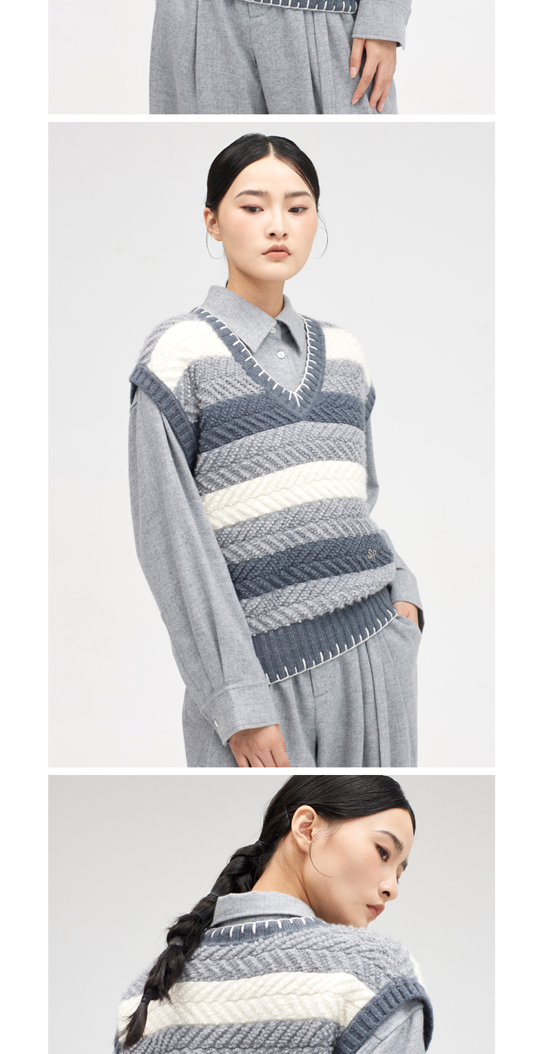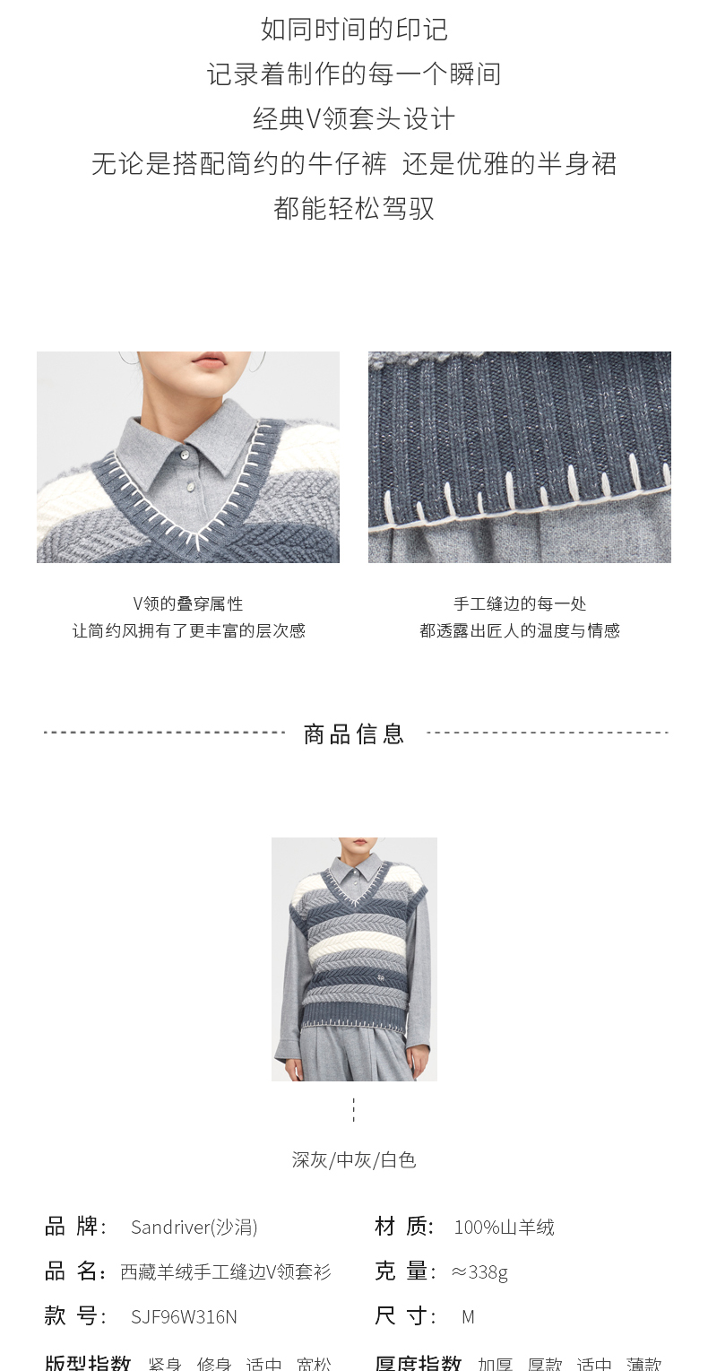 西藏羊绒手工缝边V领套衫SJF96W316N