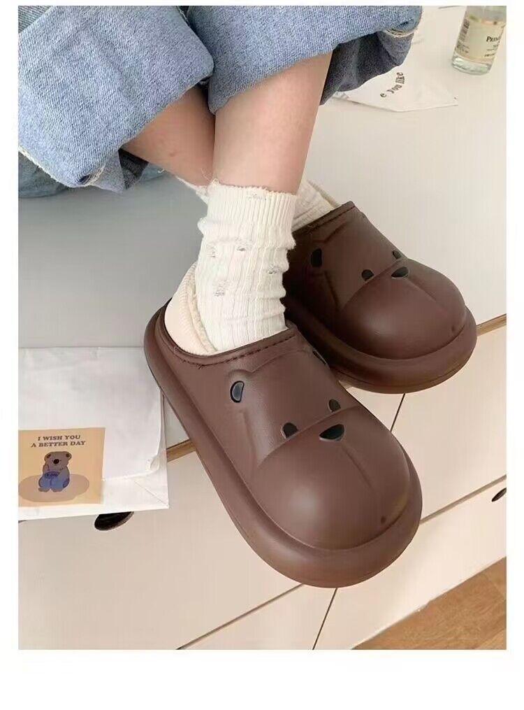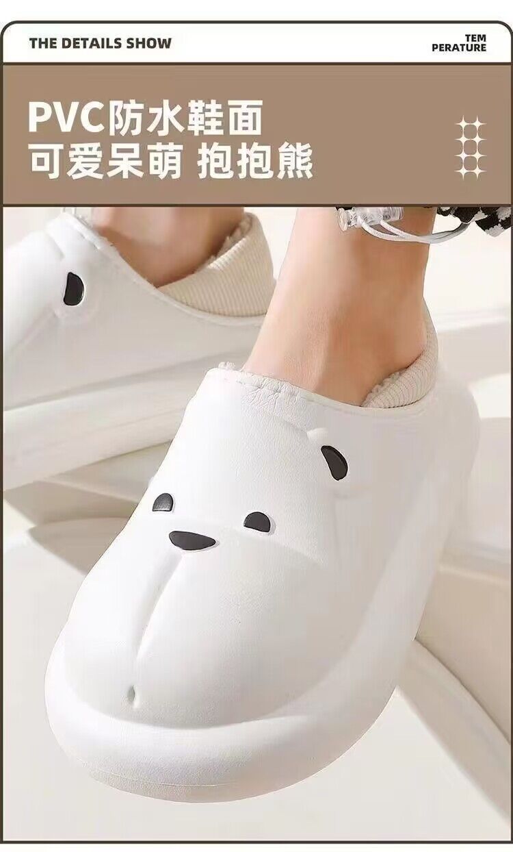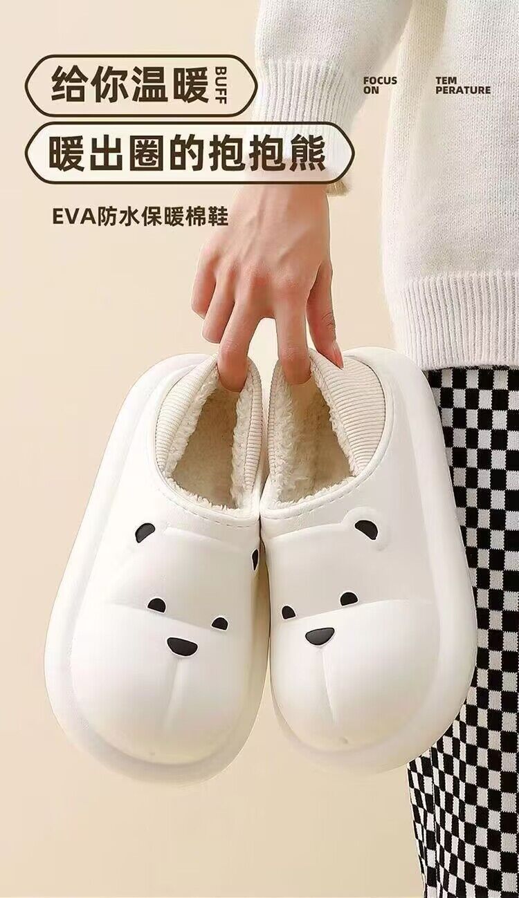 【暖出圈的抱抱熊🔥EVA防水保暖棉鞋】告别湿鞋烦恼「轻松打理易清洗」松紧后跟穿脱方便,可脚踩/一鞋两穿,防滑加绒加厚保暖,包头包跟厚底可爱棉拖鞋L