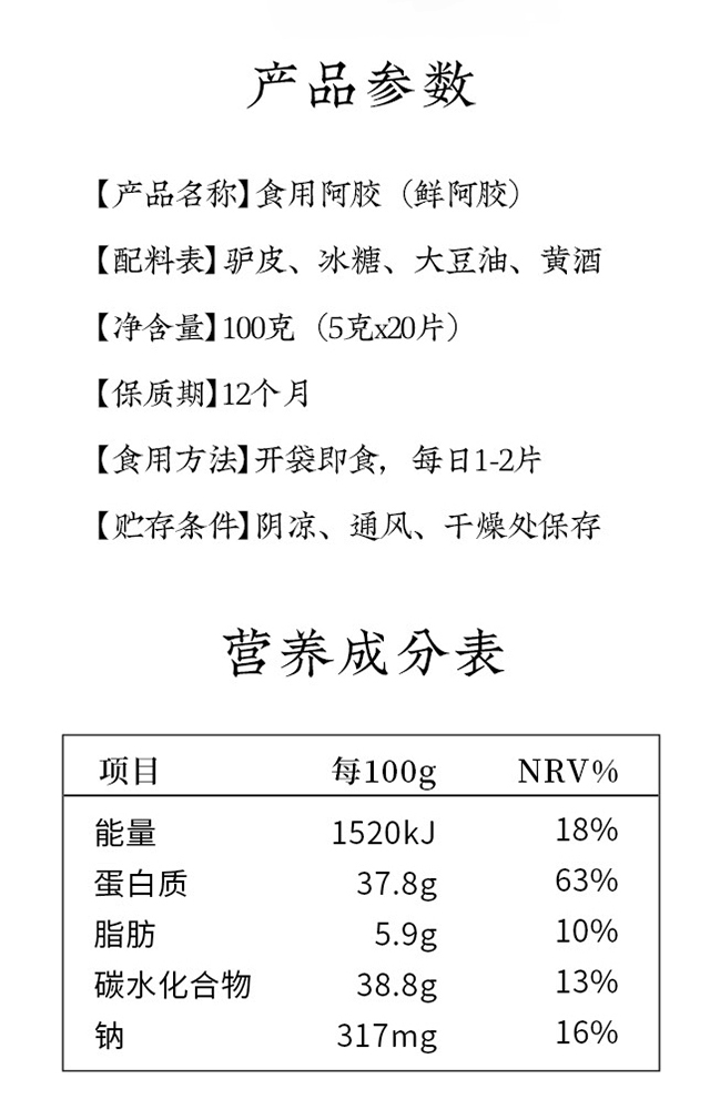【鲜阿胶•纯正非遗技艺】开袋即食1罐100g1片5g
