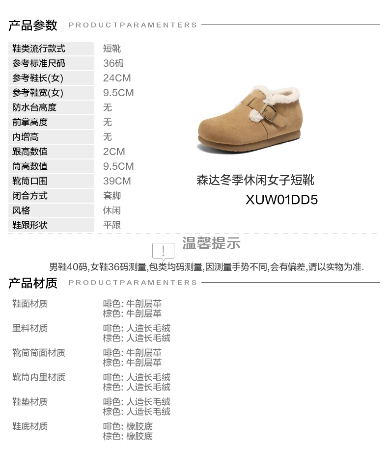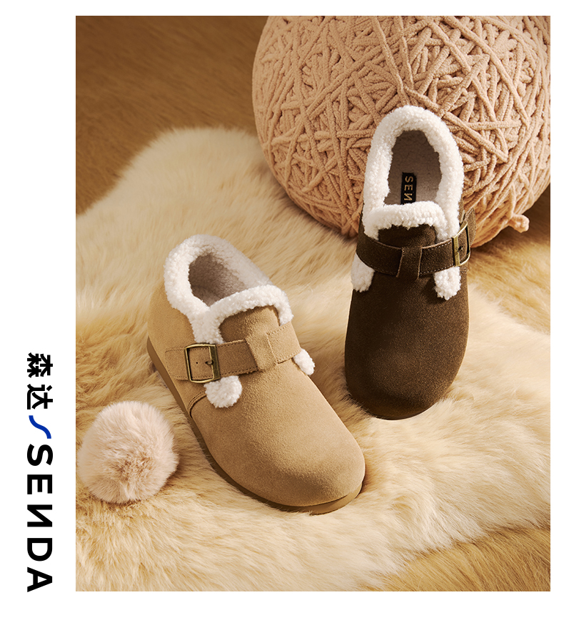 【云粉节】BF楼森达小太阳牛皮毛毛鞋2025冬季新款内增高保暖毛绒雪地靴XUW01吊牌价859活动价499