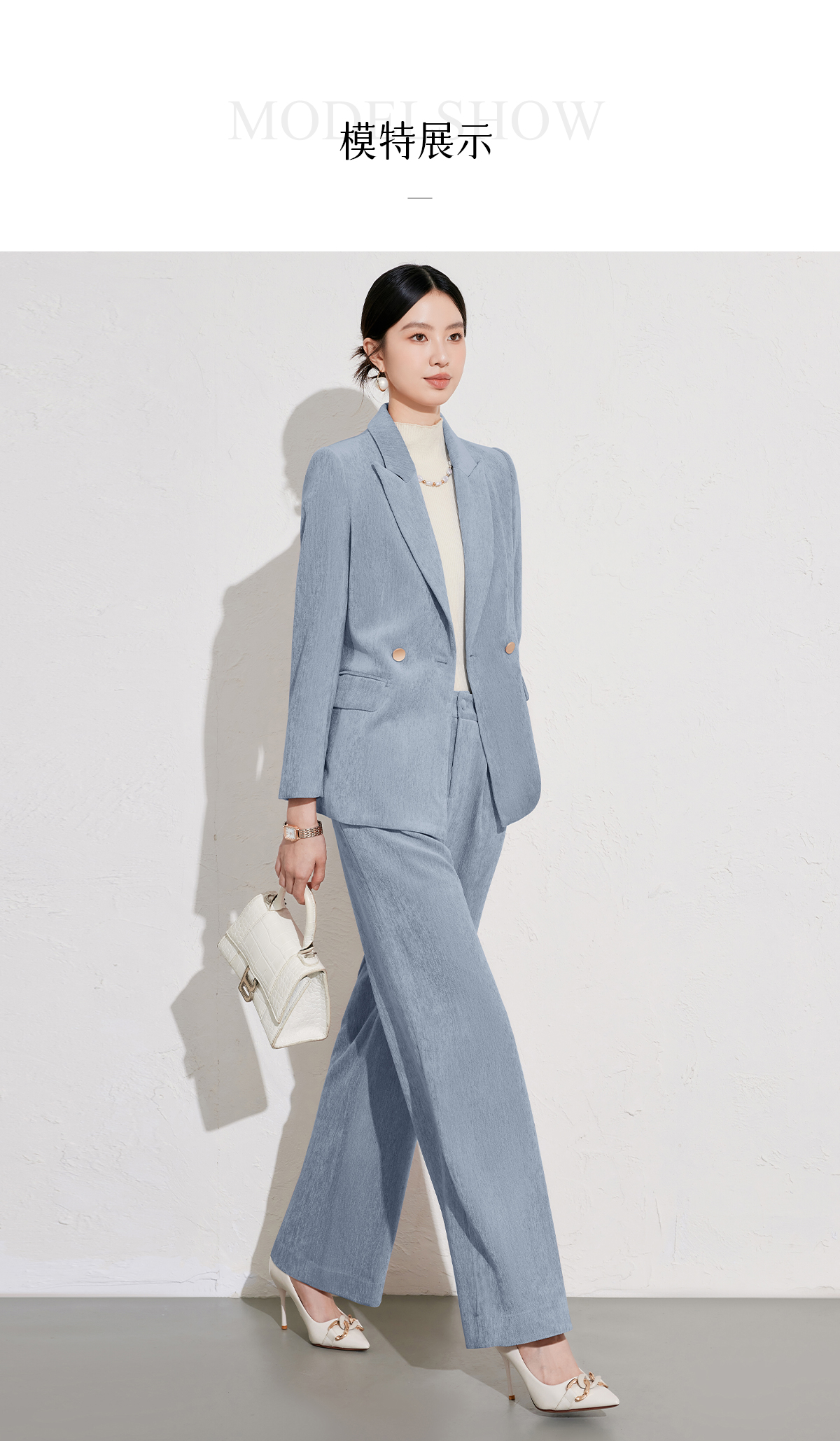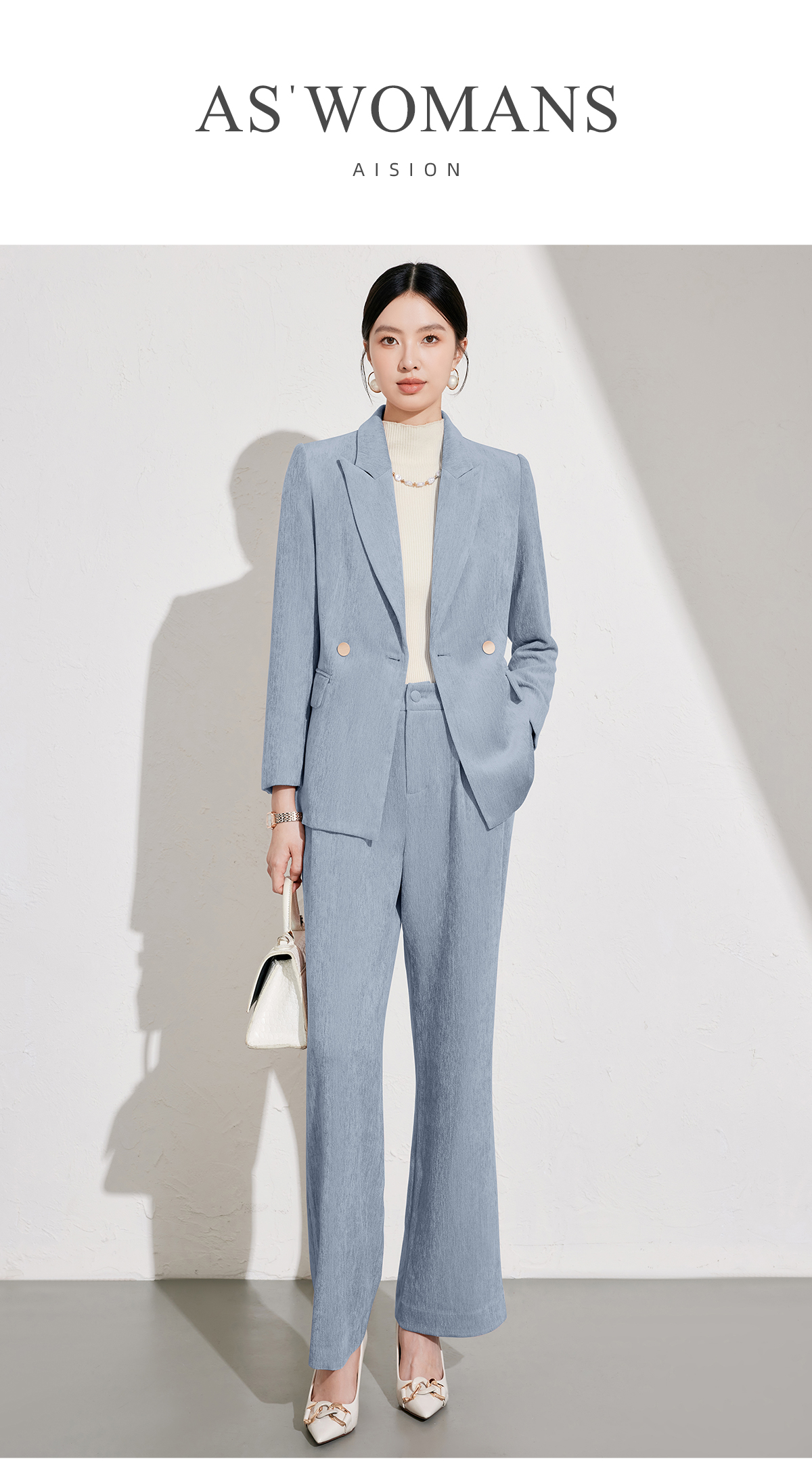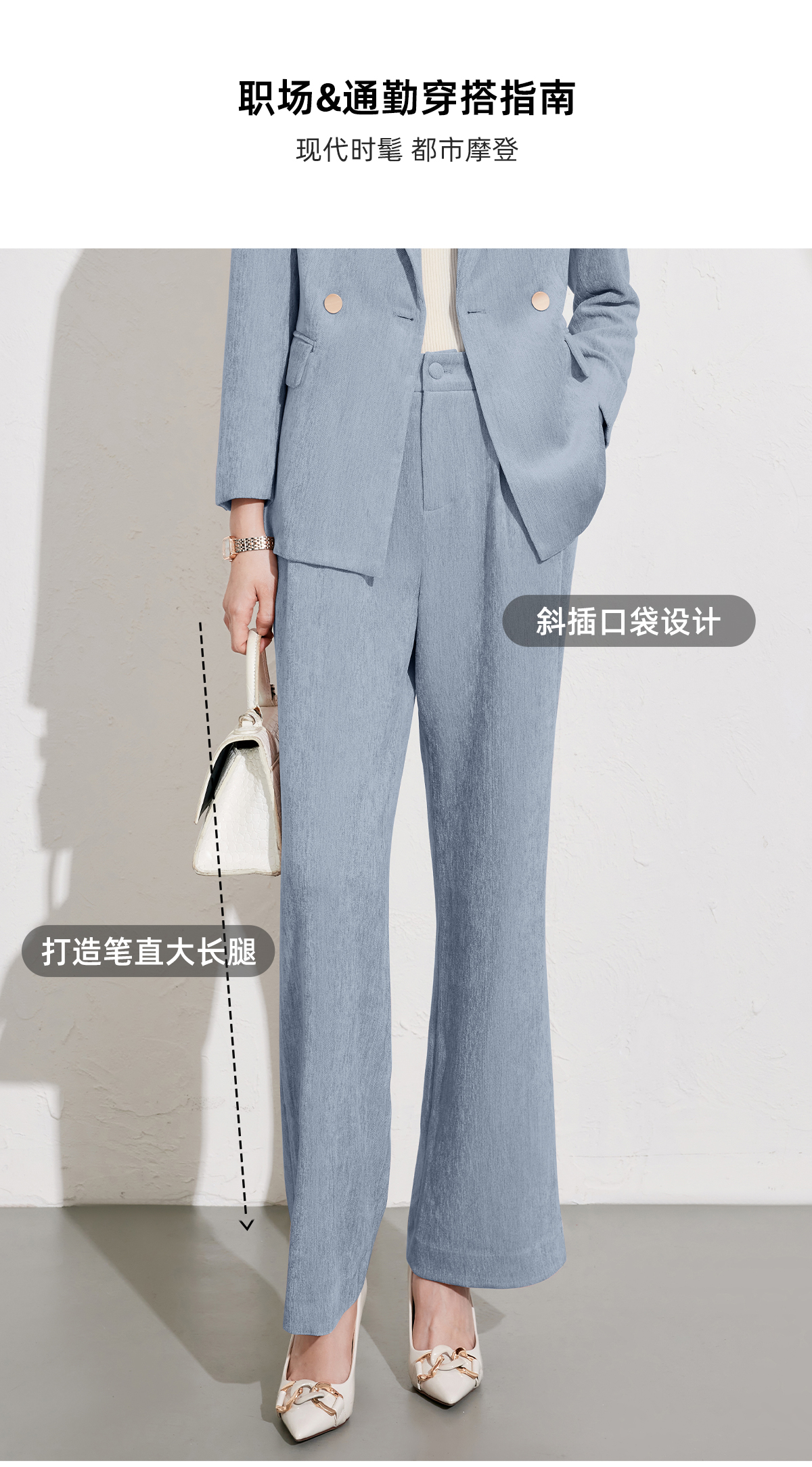 艾尚臣雾霾蓝西装裤女2026秋冬新款气质修身显瘦工作职业垂感长裤