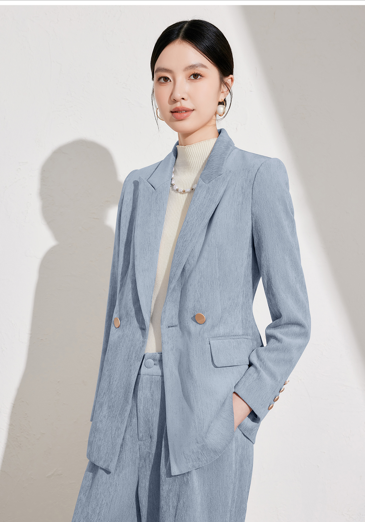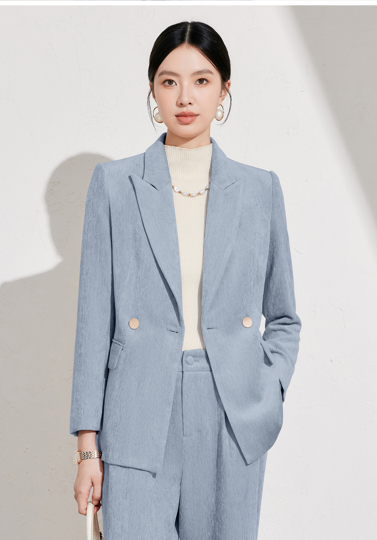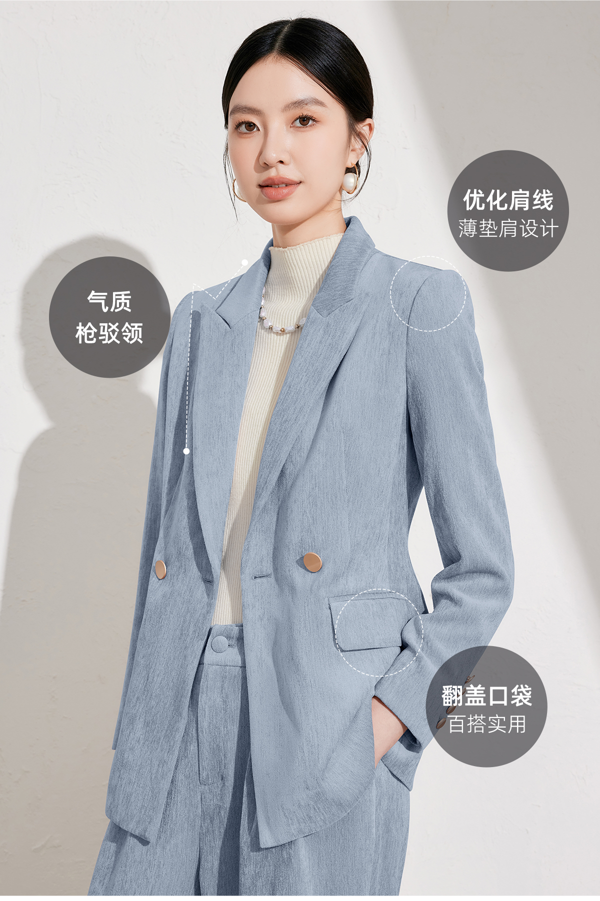 艾尚臣雾霾蓝西装裤女2026秋冬新款气质修身显瘦工作职业垂感长裤