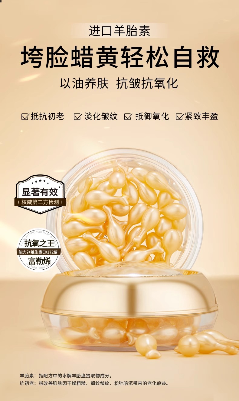 【以油养肤 抗皱抗氧化】富勒烯羊胎素胶囊精华油 0.34ml*35粒#富勒烯羊胎素胶囊精华油抗皱非面部护肤精油以油养肤