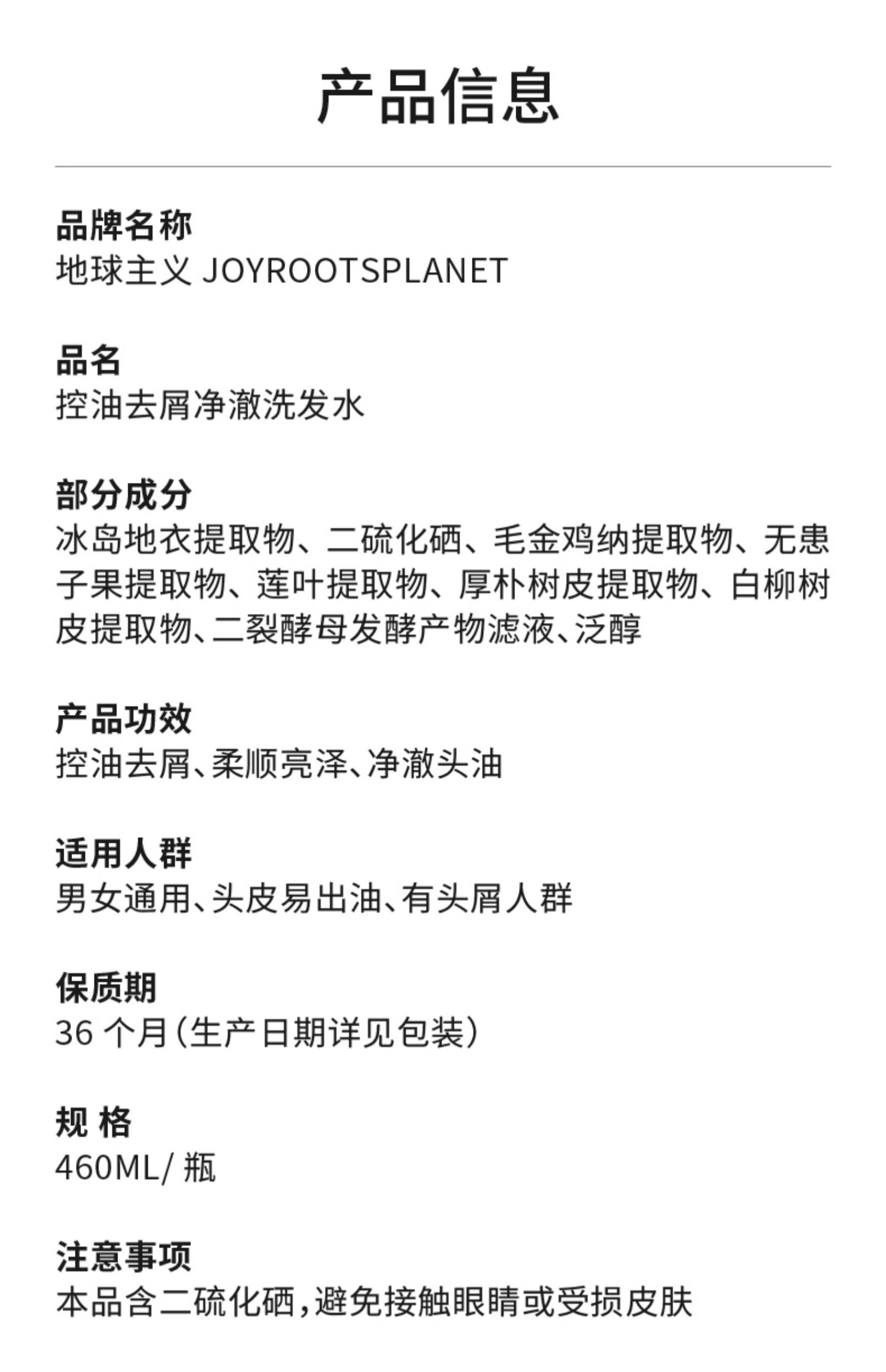 地球主义洗发水去屑控油蓬松男女洗头水正品二硫化硒460ml