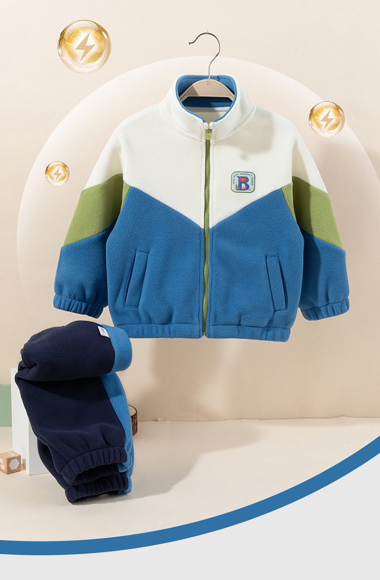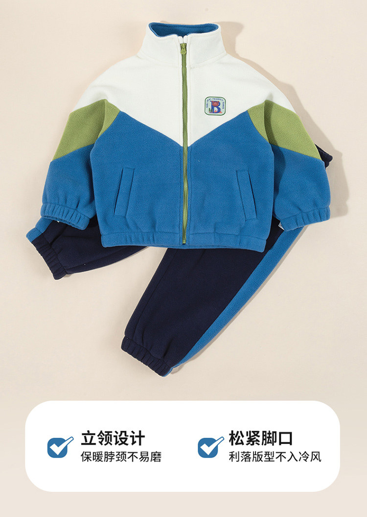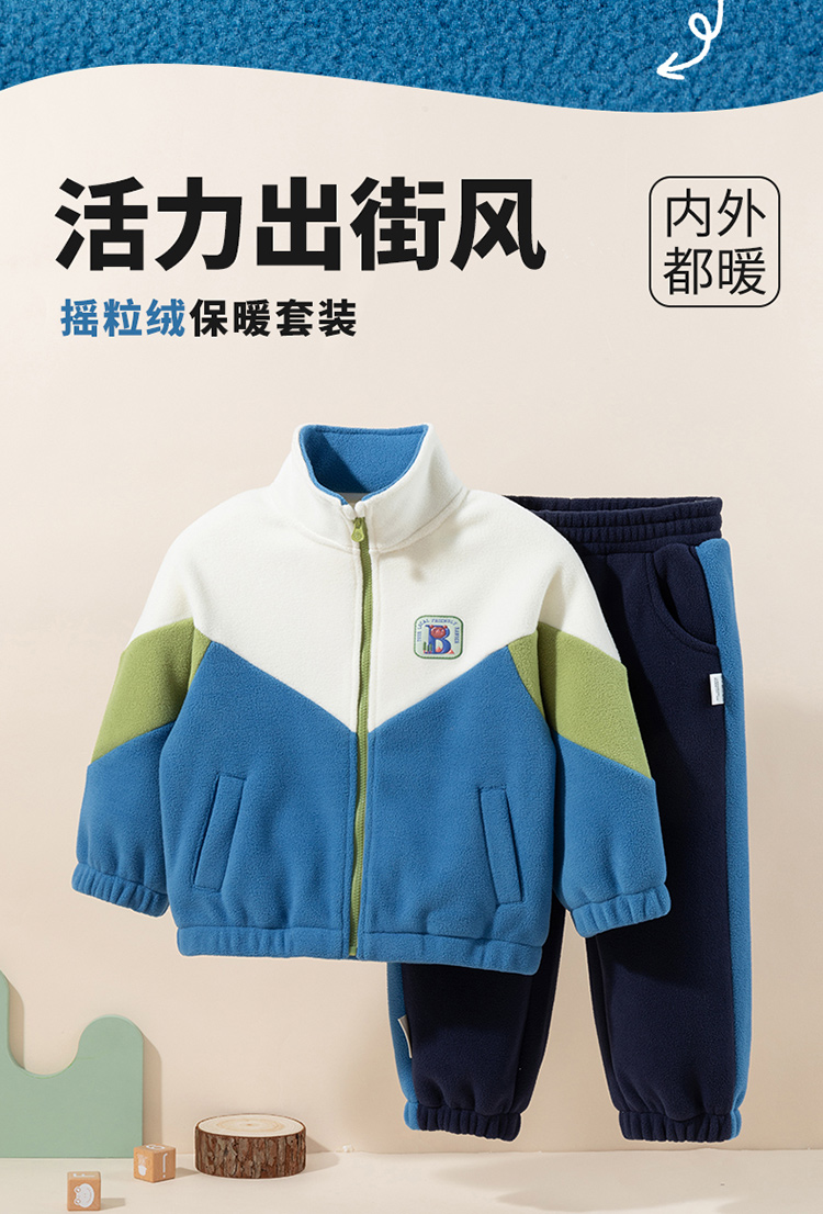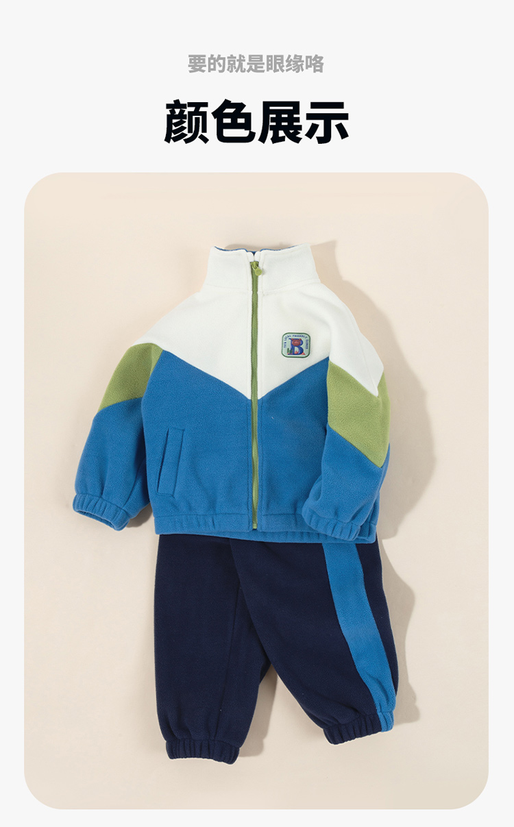 贝贝怡立领时尚双面绒男童套装秋新款儿童卫衣卫裤ZB3DT028