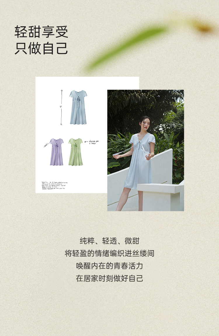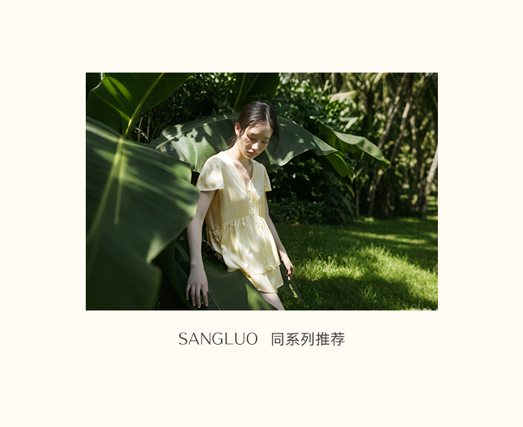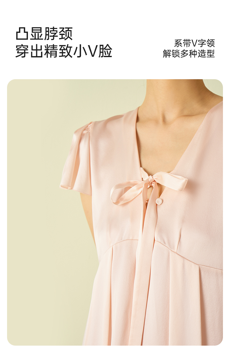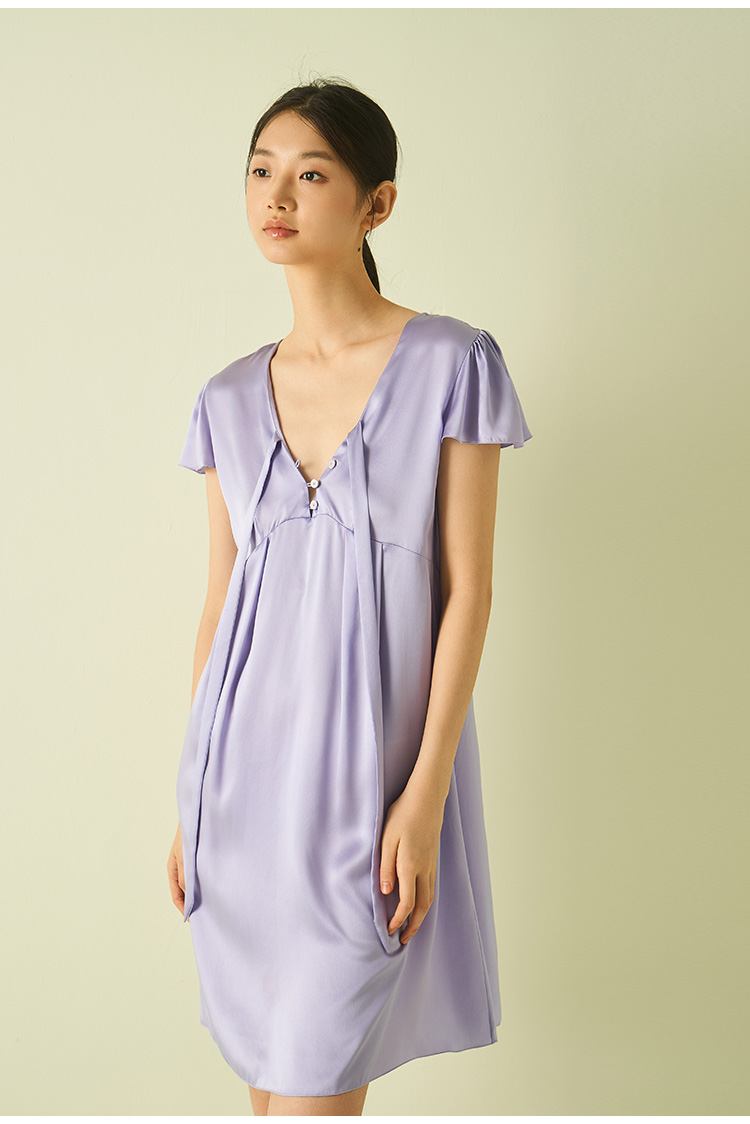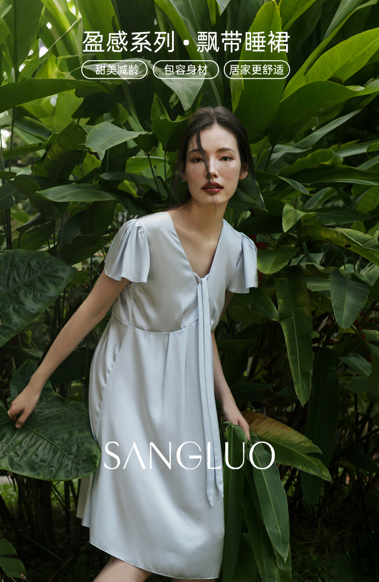 盈感系列』桑罗系带娃娃衫荷叶袖轻盈凉感桑蚕丝睡裙新品