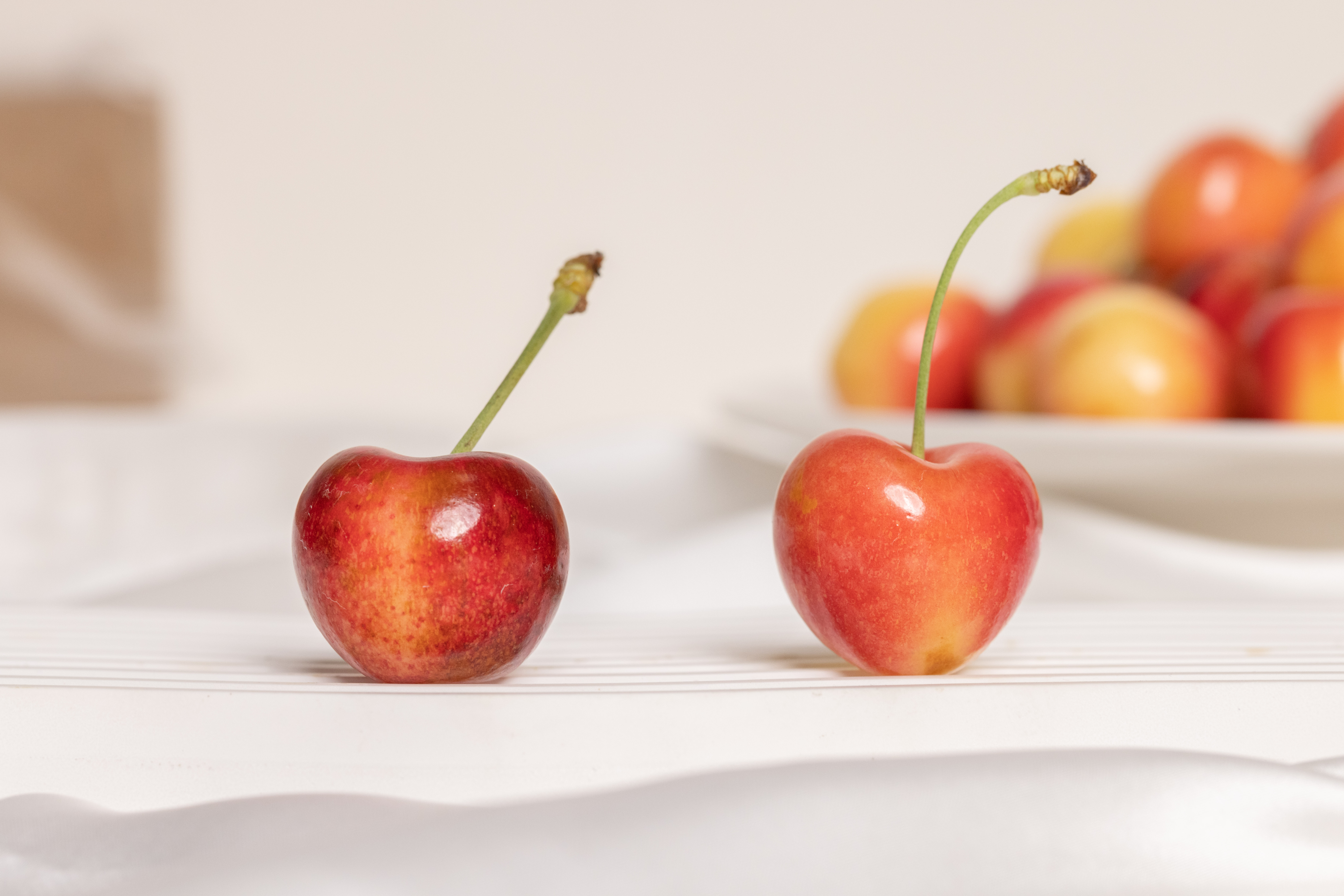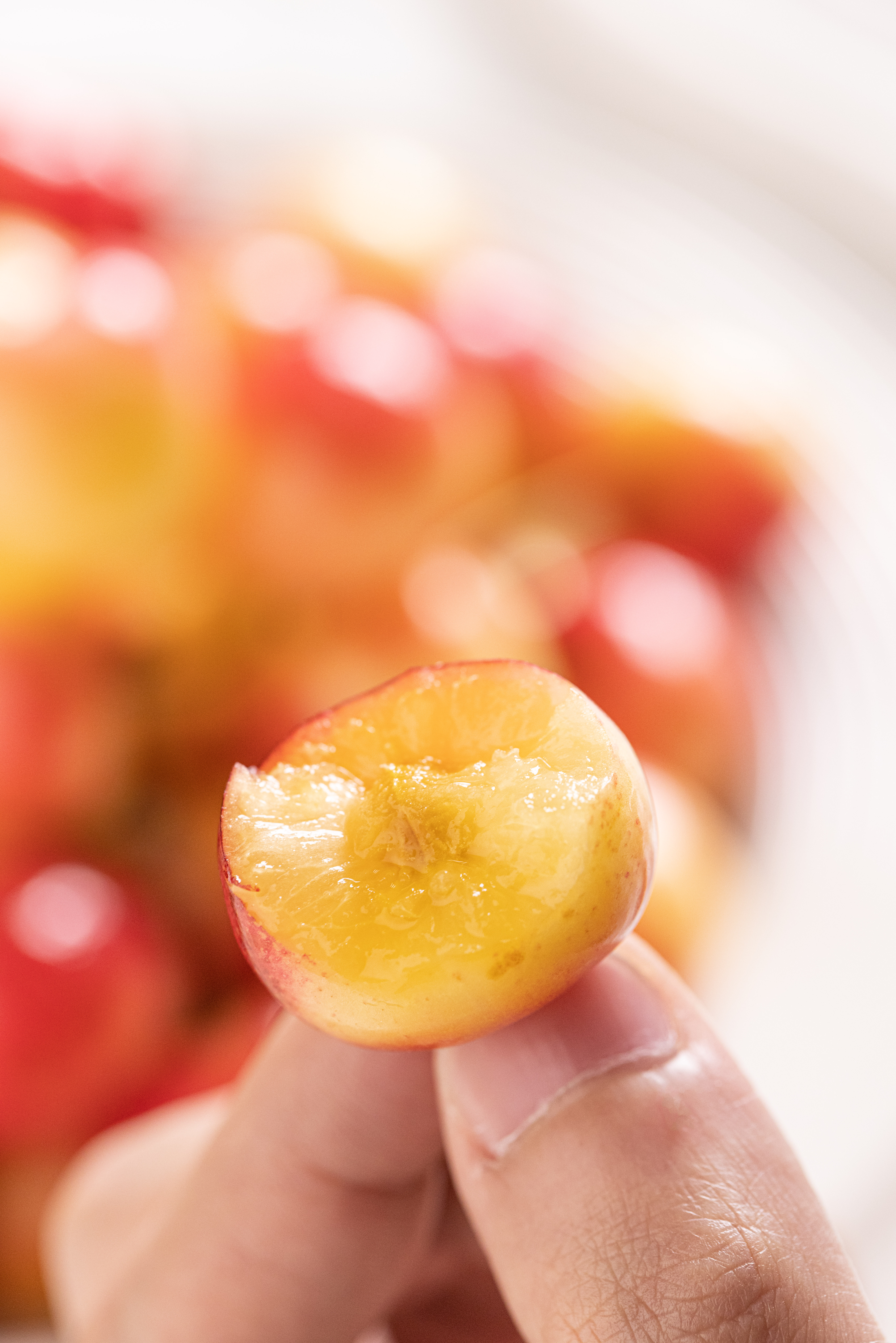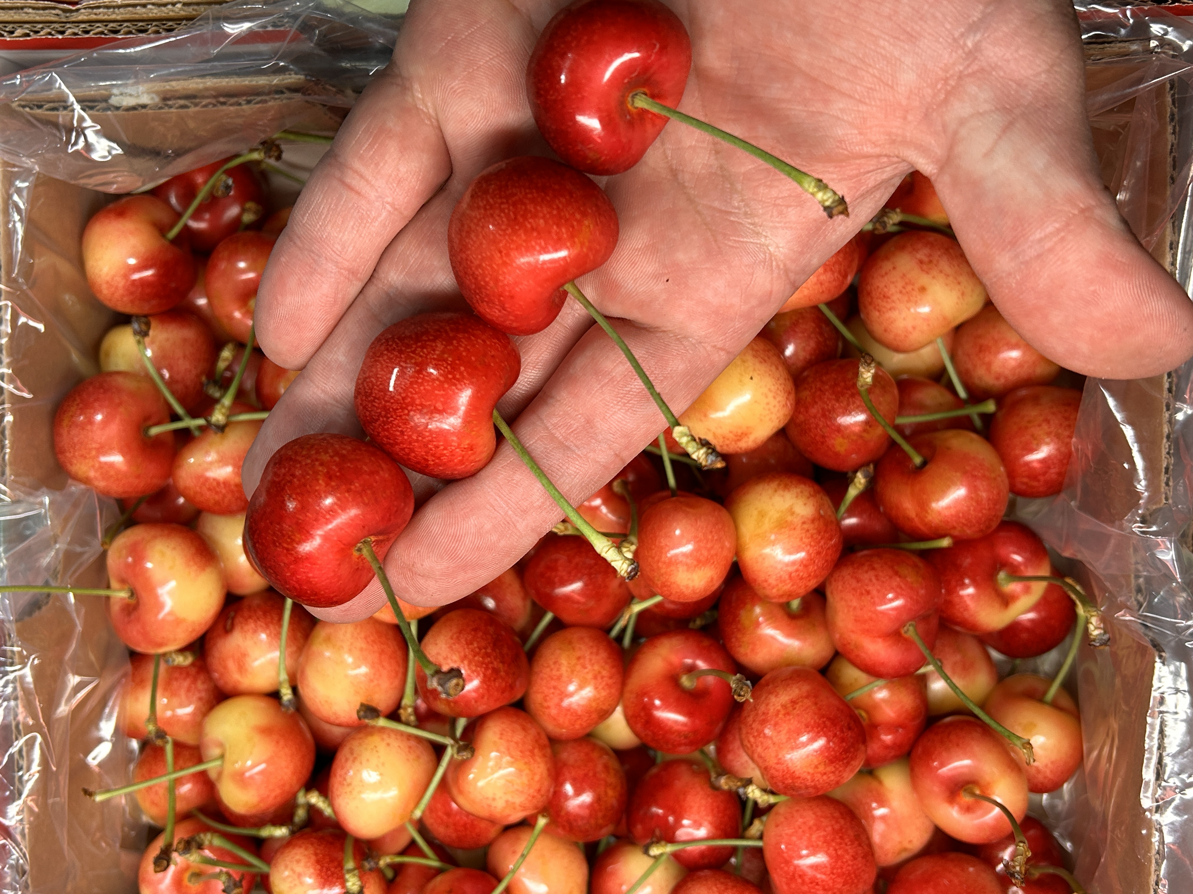 外观黄里透红,部分个体为全橙红色,与我们熟悉的雷尼尔车厘子(Rainier)相似。