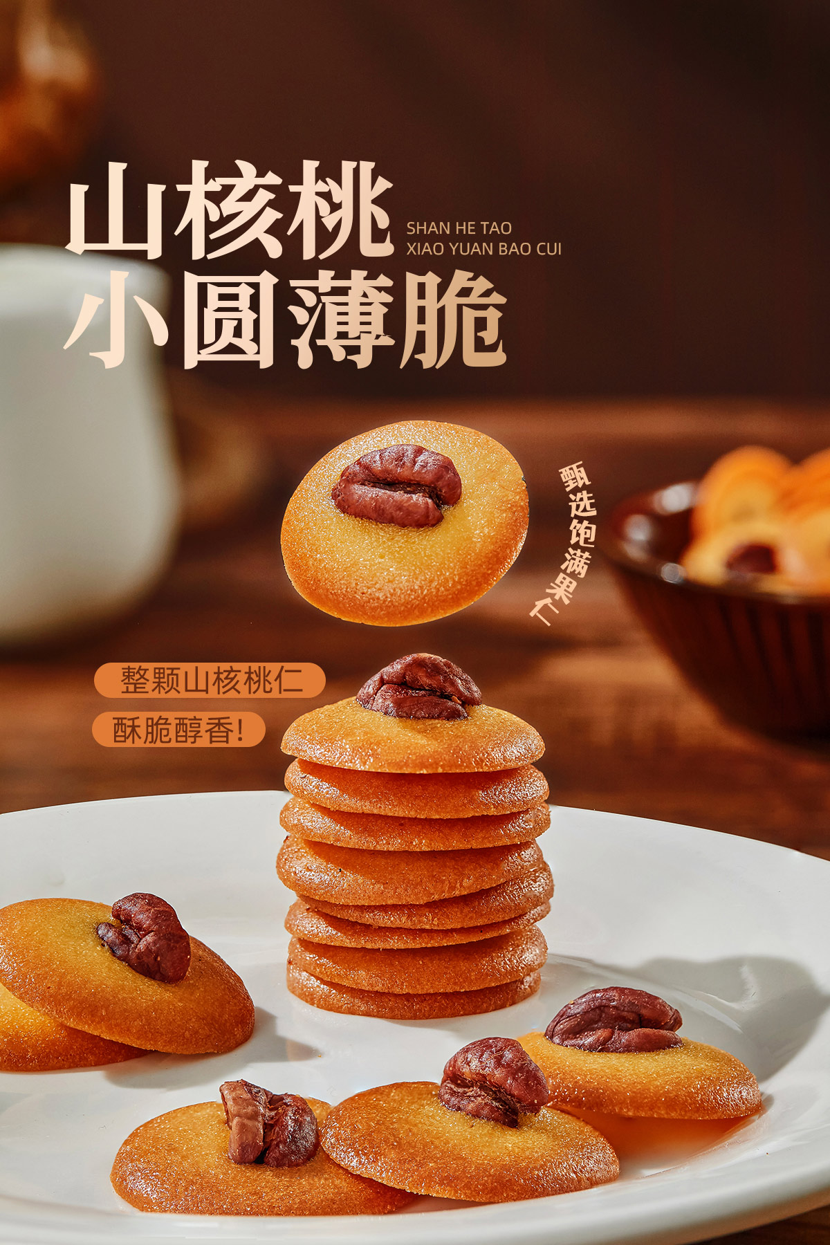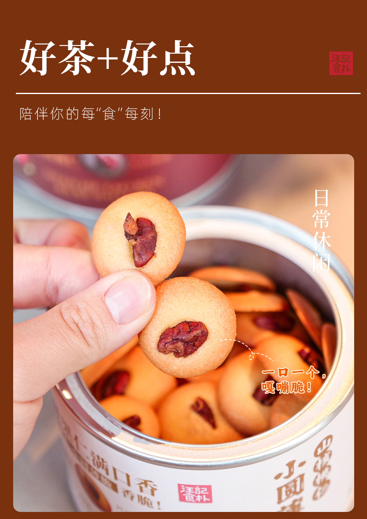【山核桃小圆薄脆】汪记食朴小圆薄脆入口香脆罐装净重120g/罐