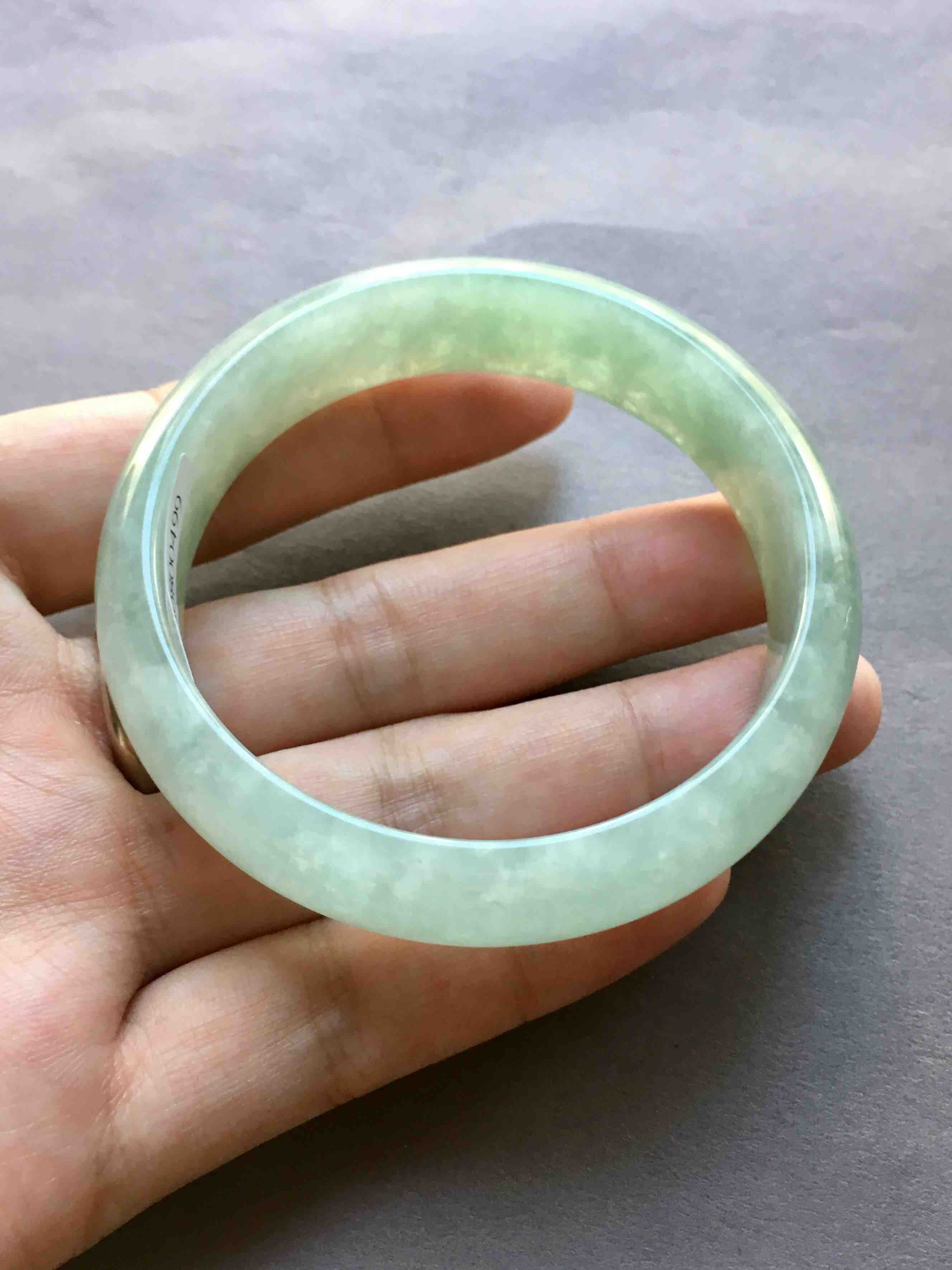 糯冰种淡晴水翡翠手镯,种水晶莹剔透,水头很赞,漂亮的淡晴水色,内径56,宽14.3,厚7mm,标准尺码,适合手寸55到57佩戴,高性价比推荐