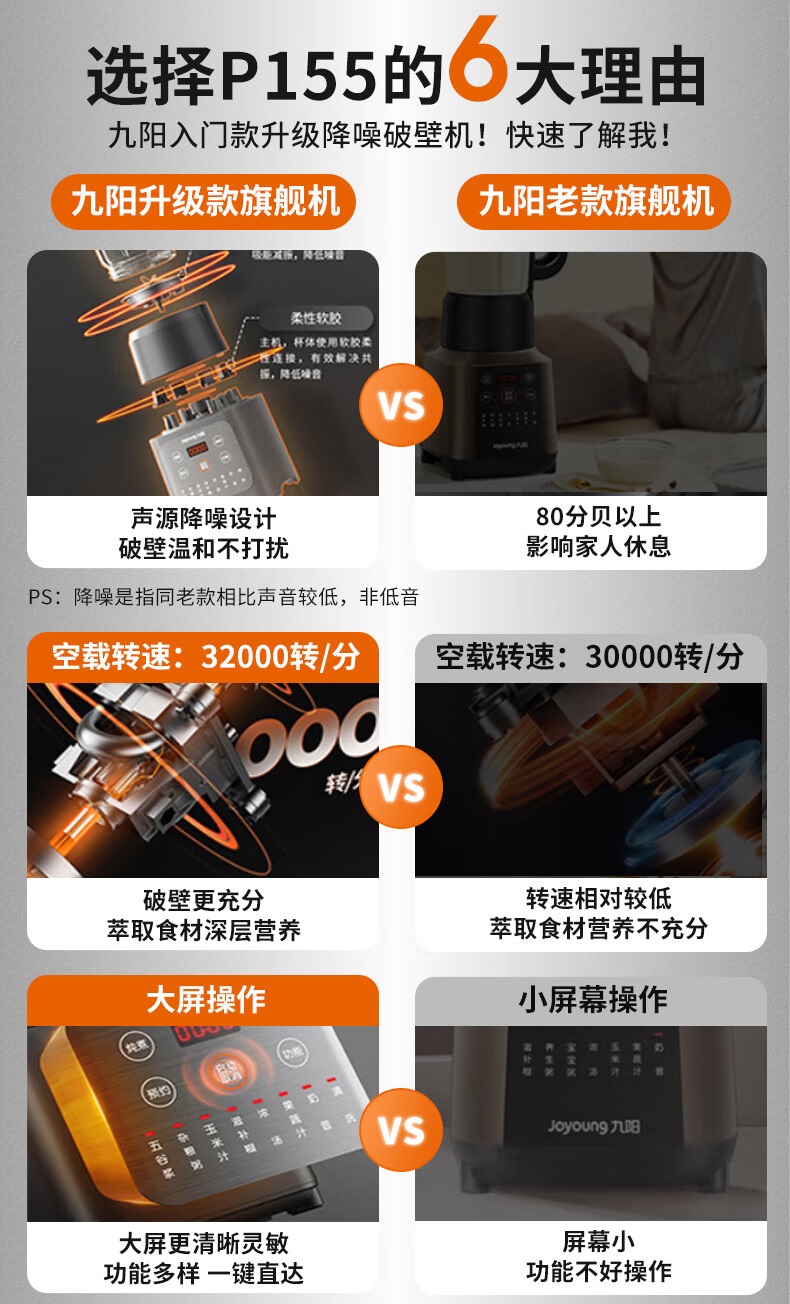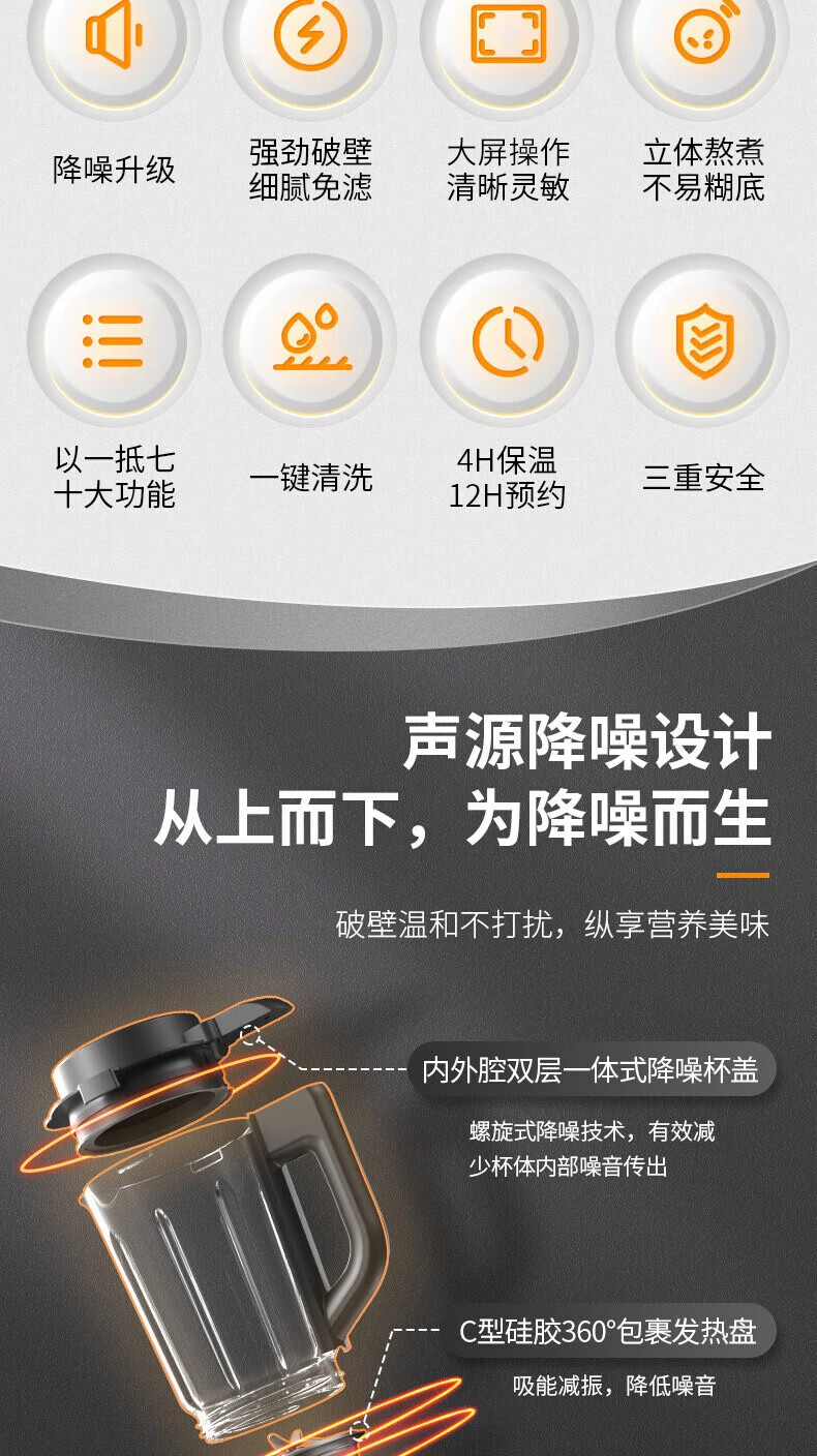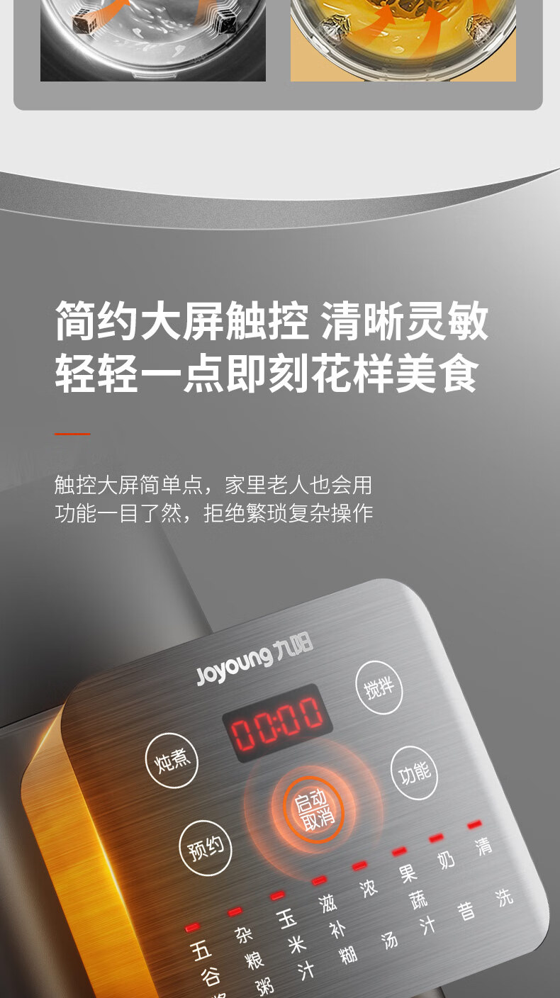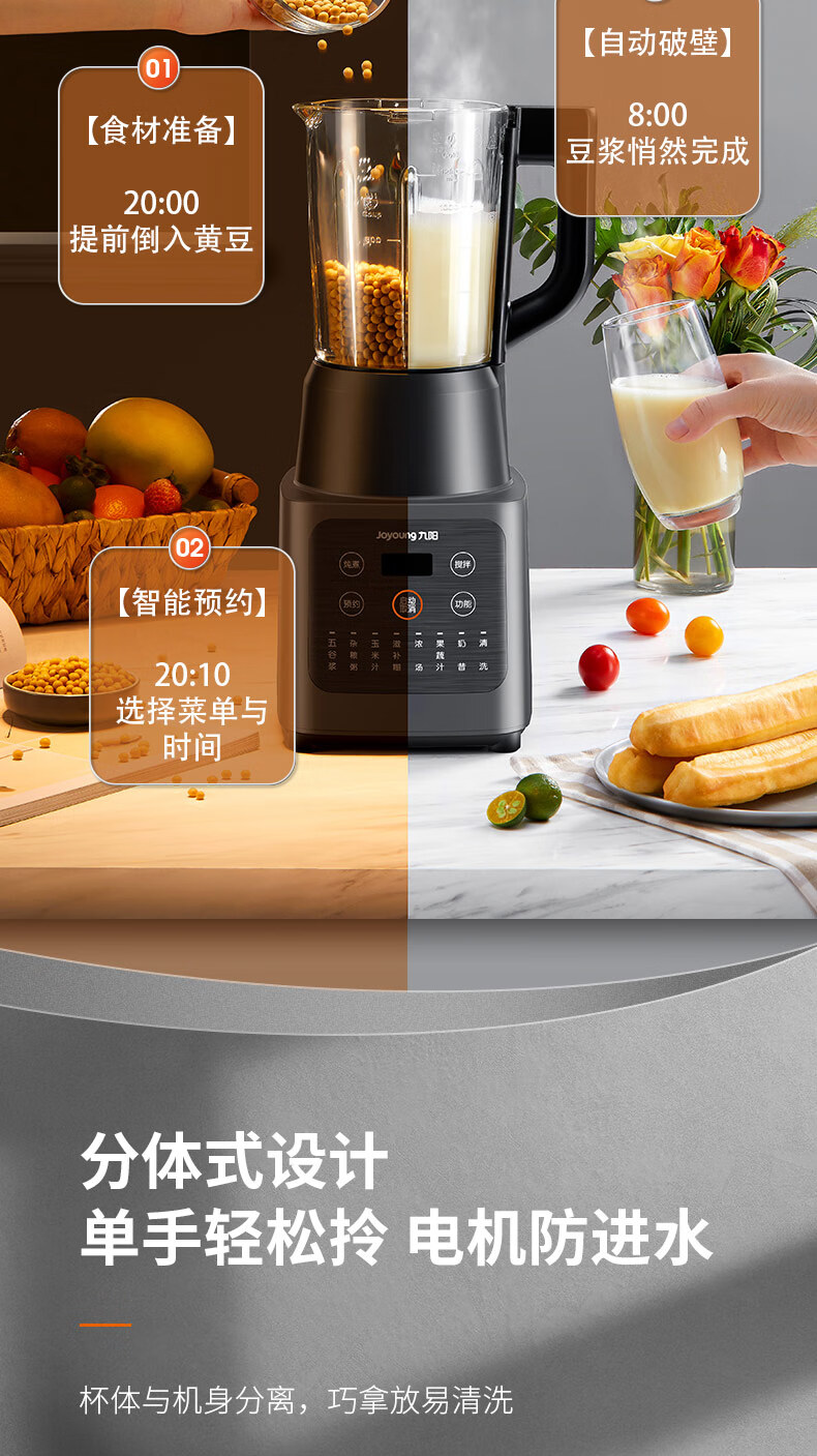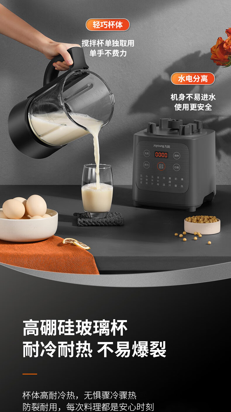 九阳破壁机1.2L升家用多功能榨汁免滤豆浆机冷热双打料理机辅食机