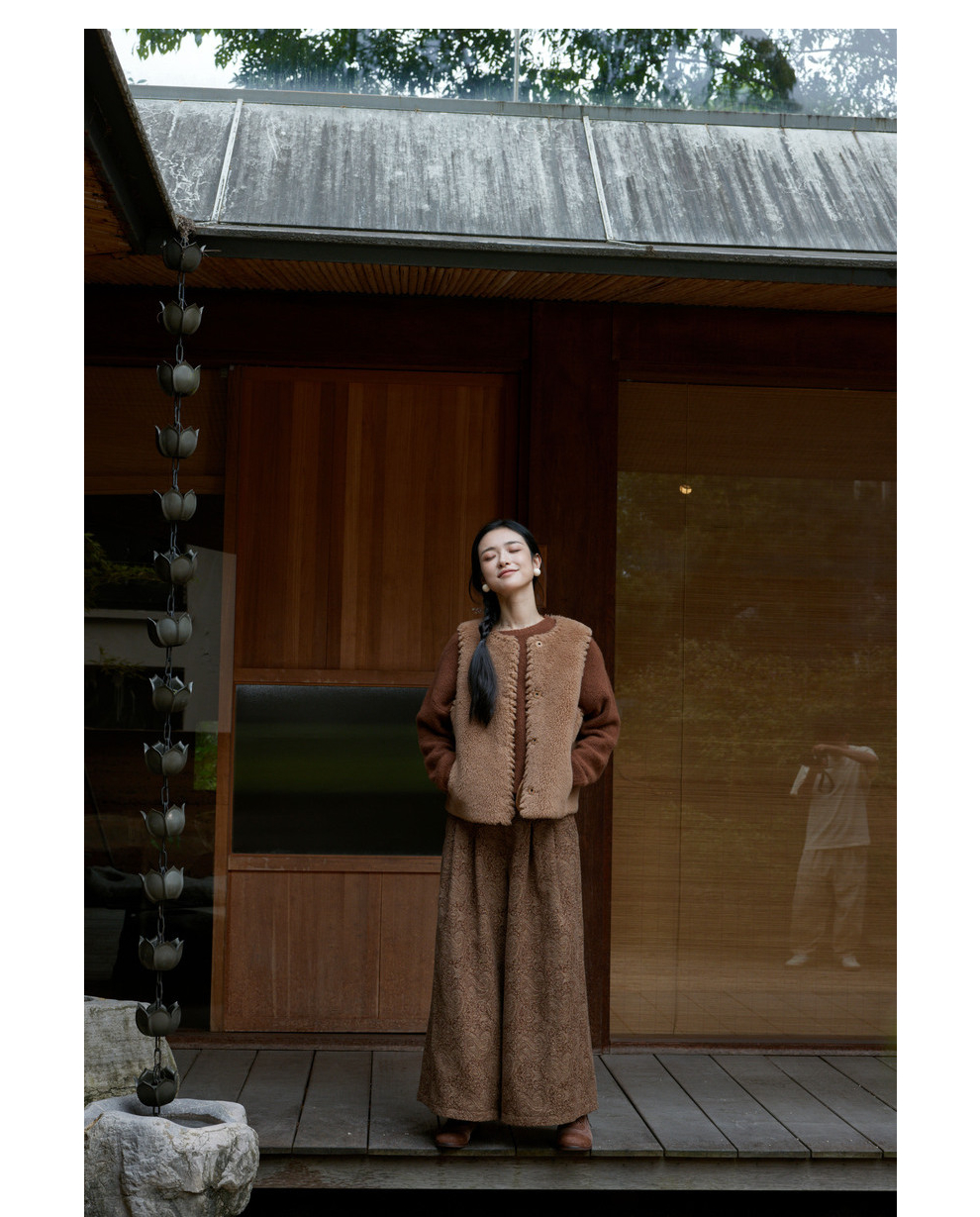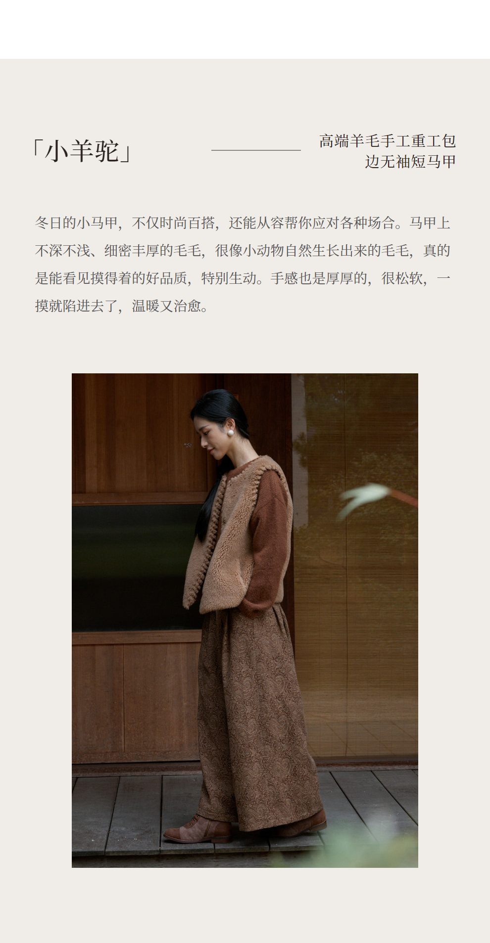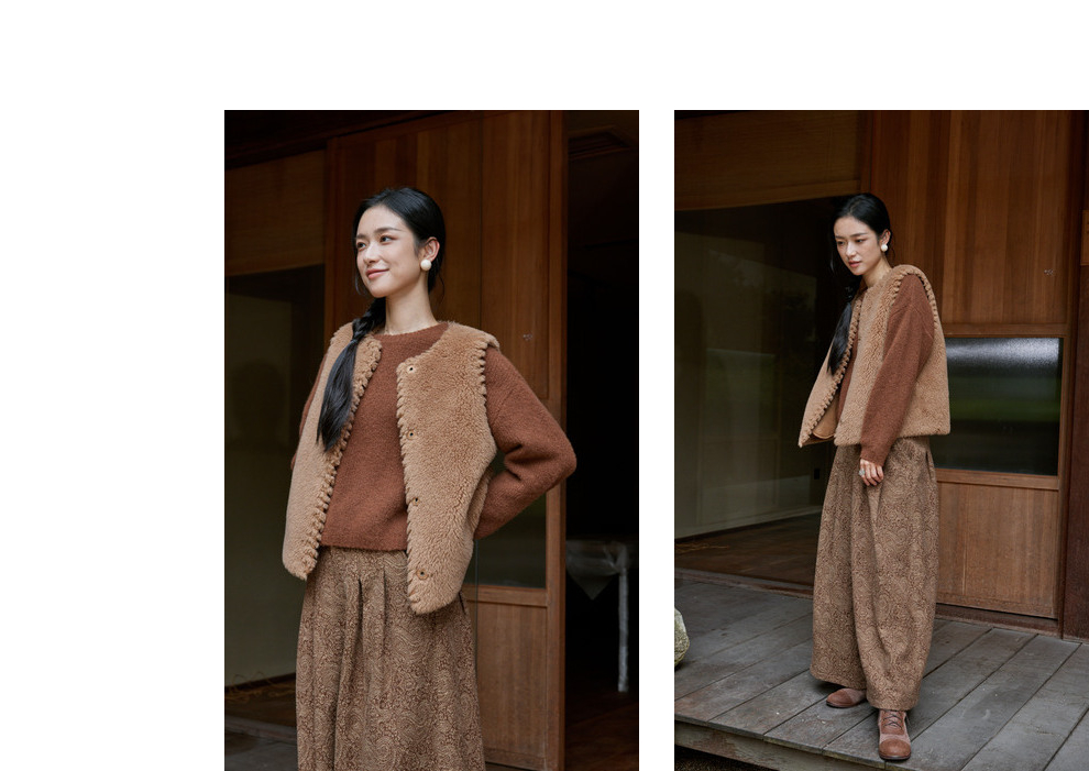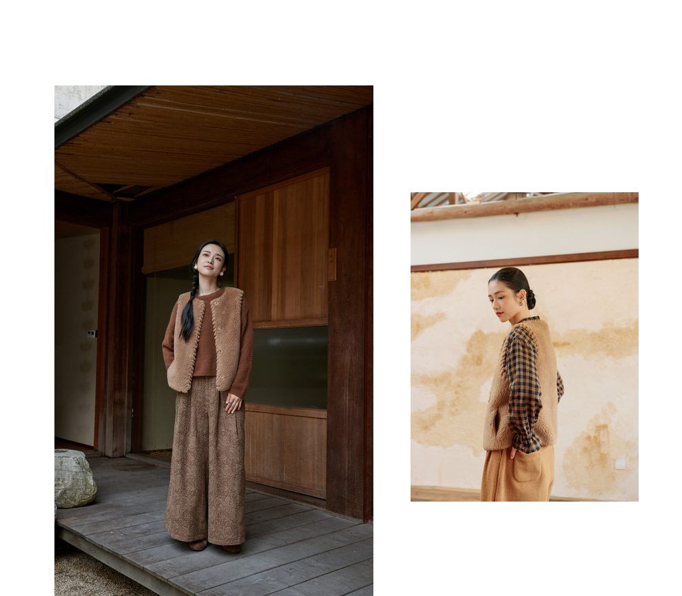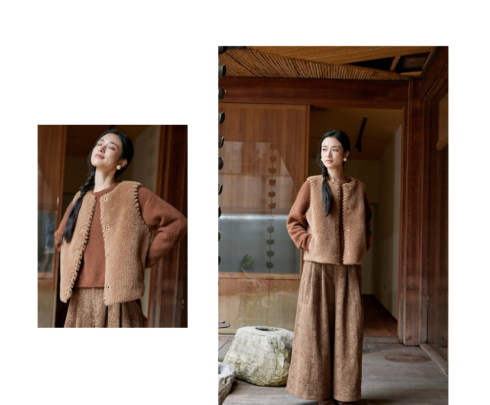 绽放810朵/高端棕色松软加厚绵羊绒防风保暖重手工包边无袖短马甲