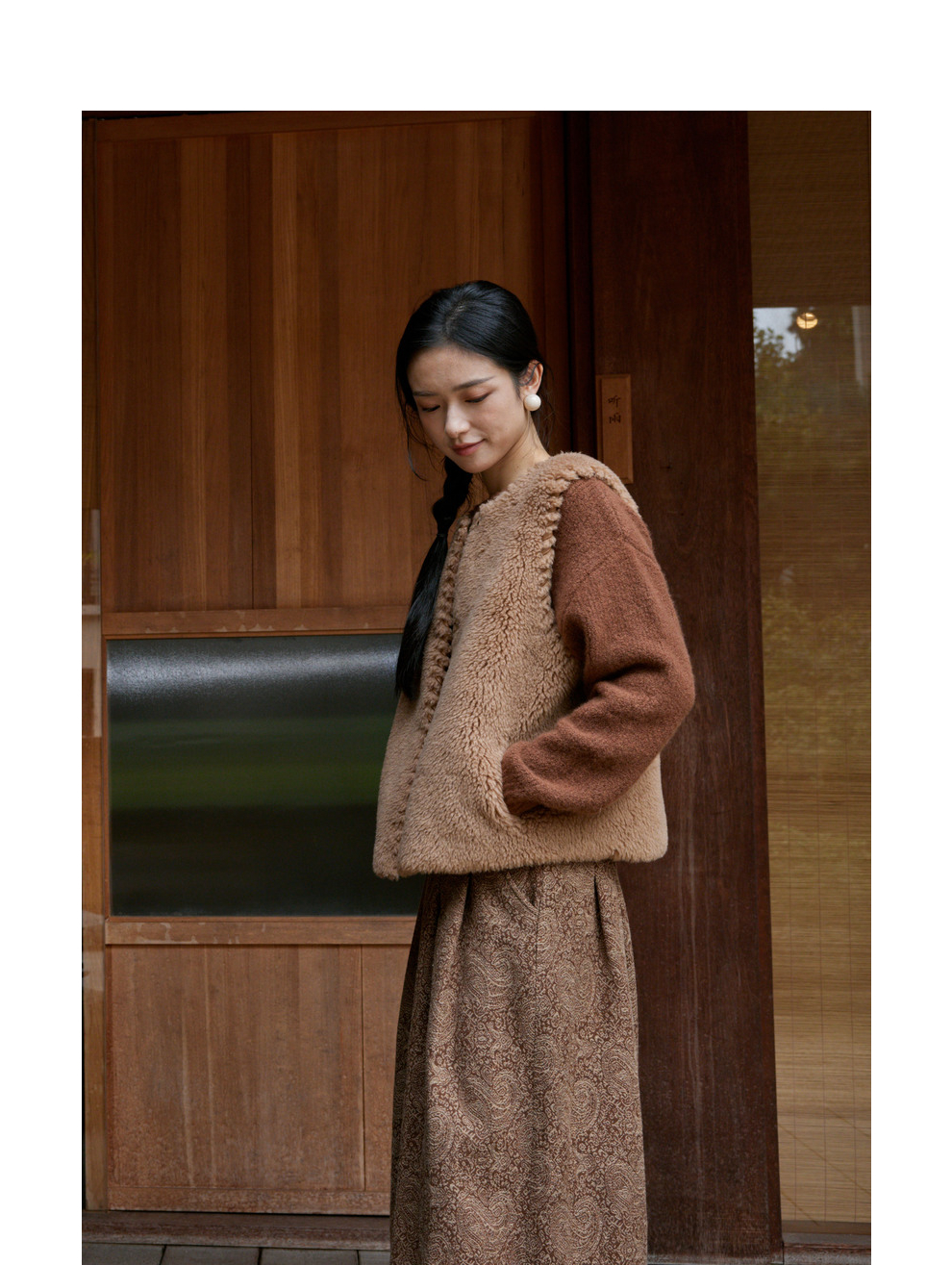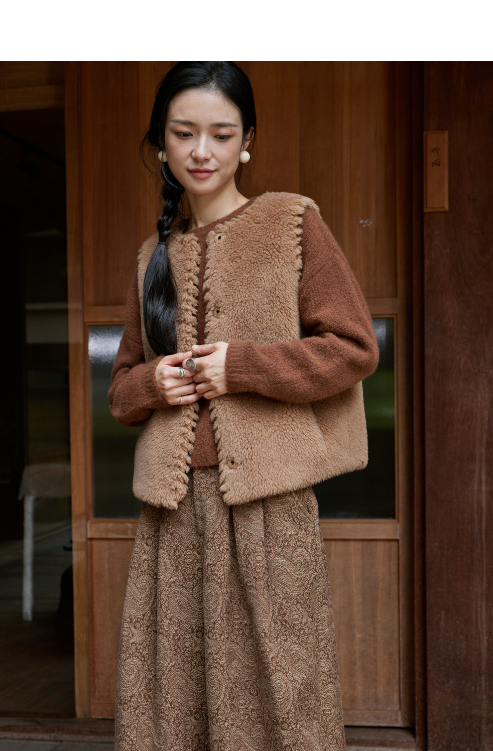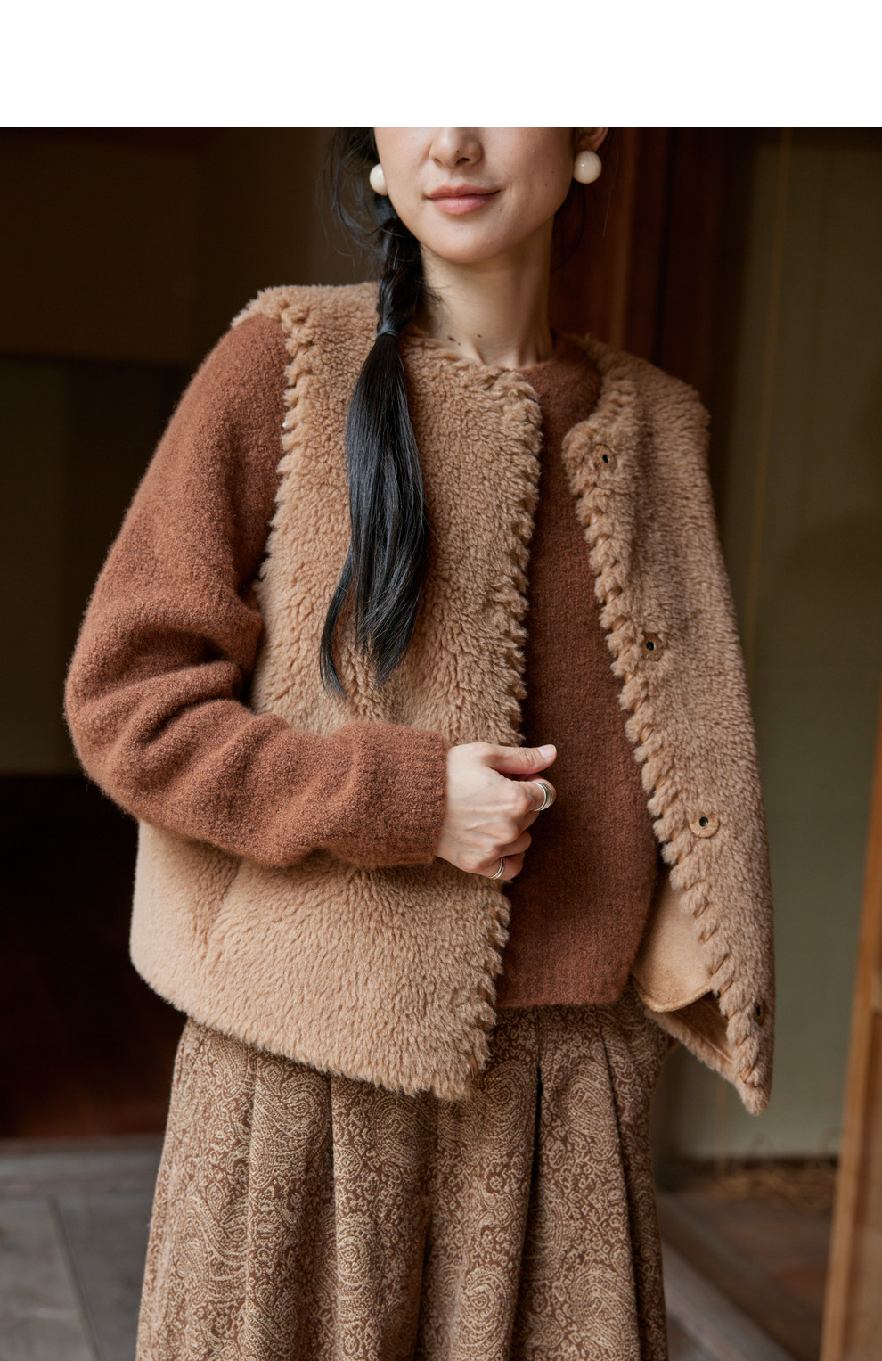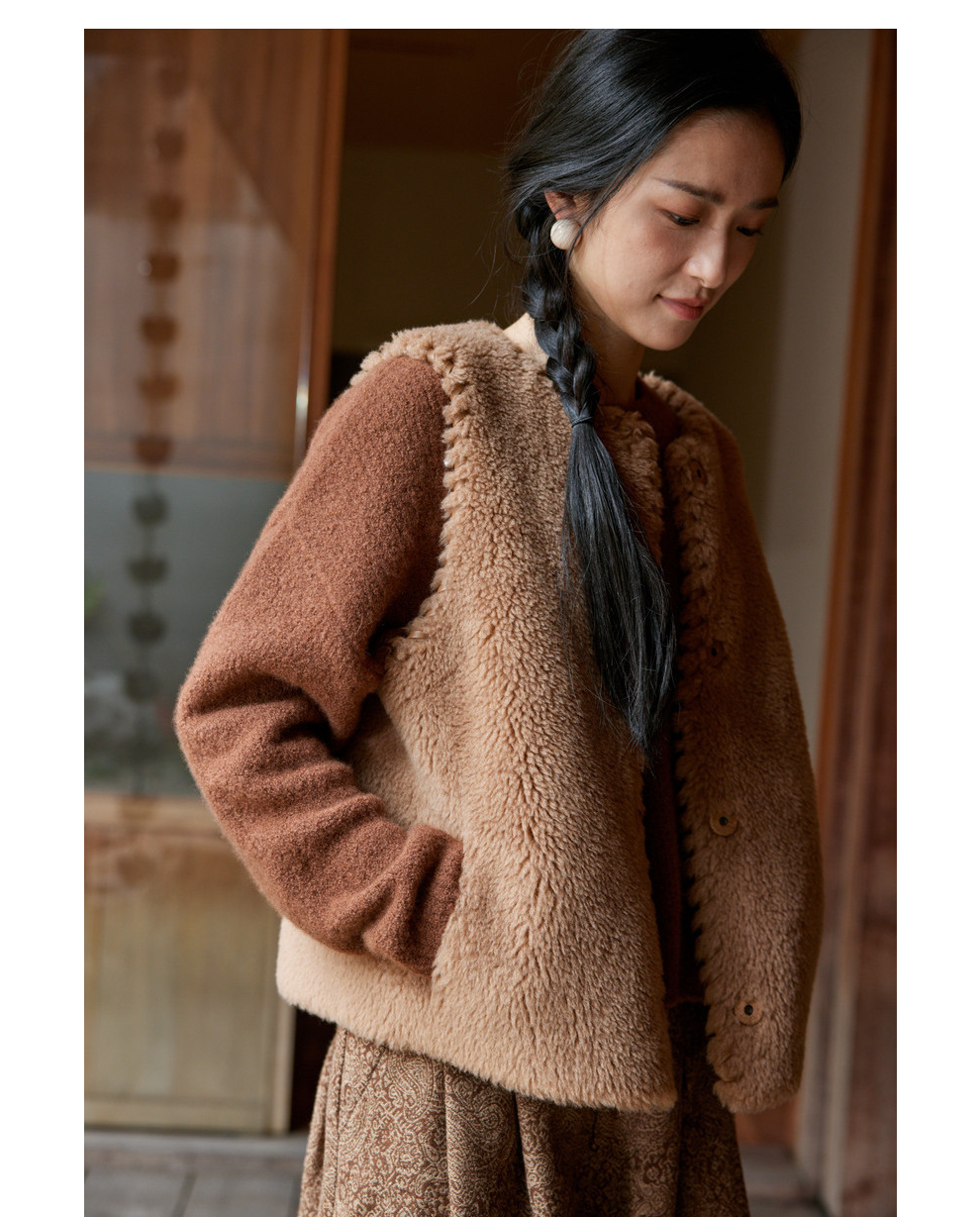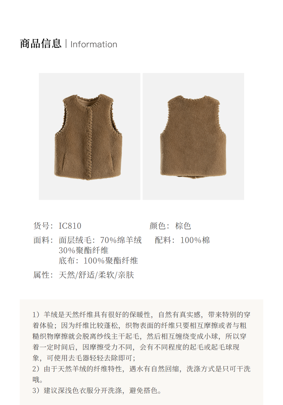 绽放810朵/高端棕色松软加厚绵羊绒防风保暖重手工包边无袖短马甲