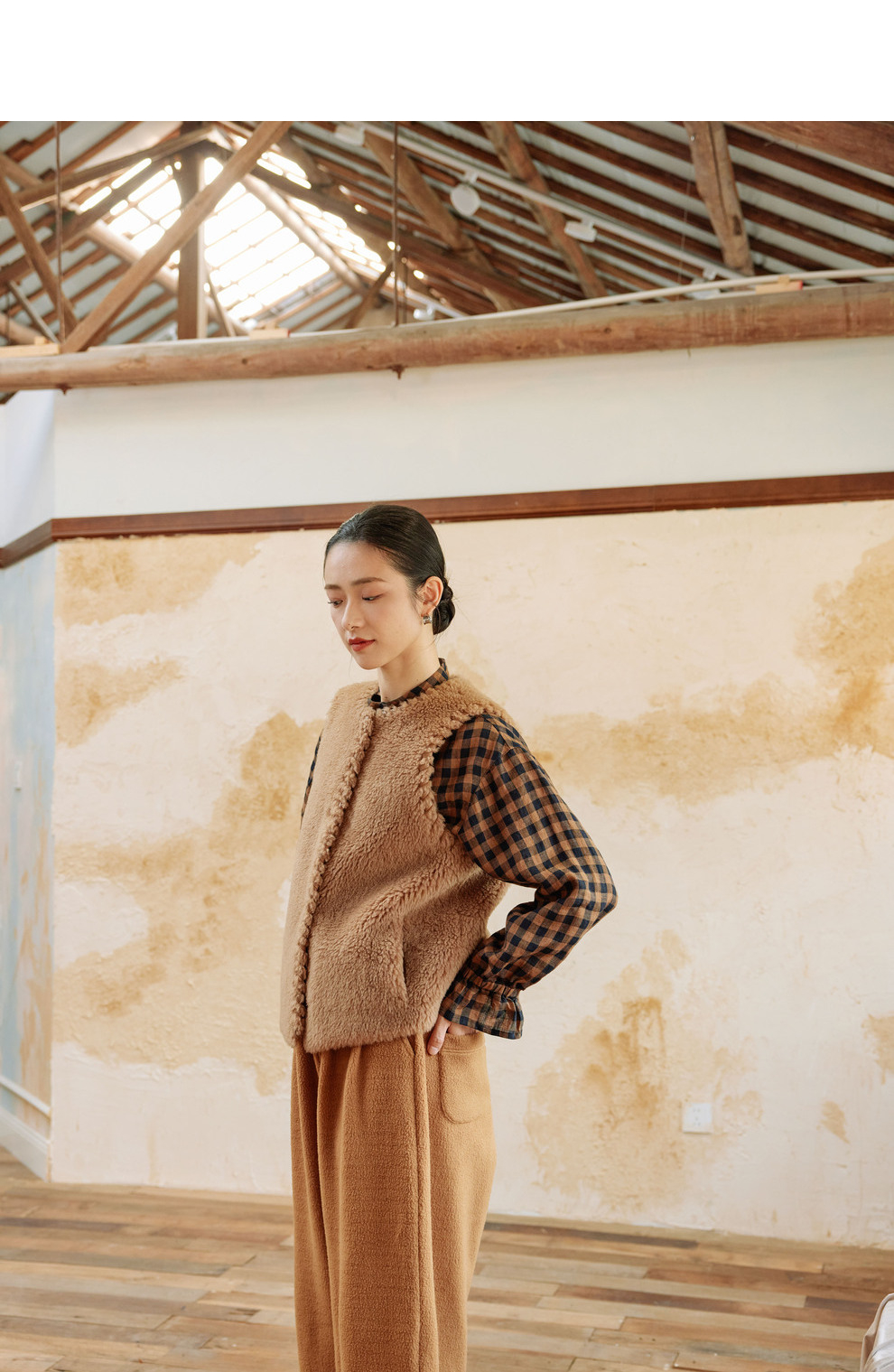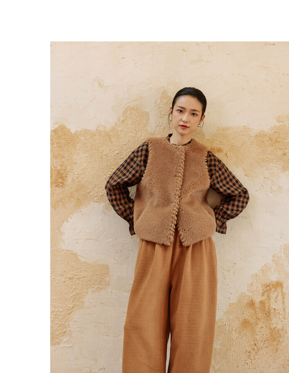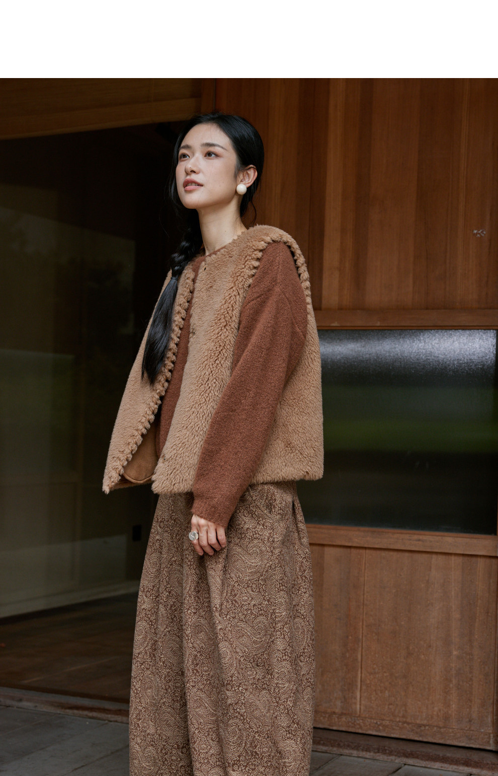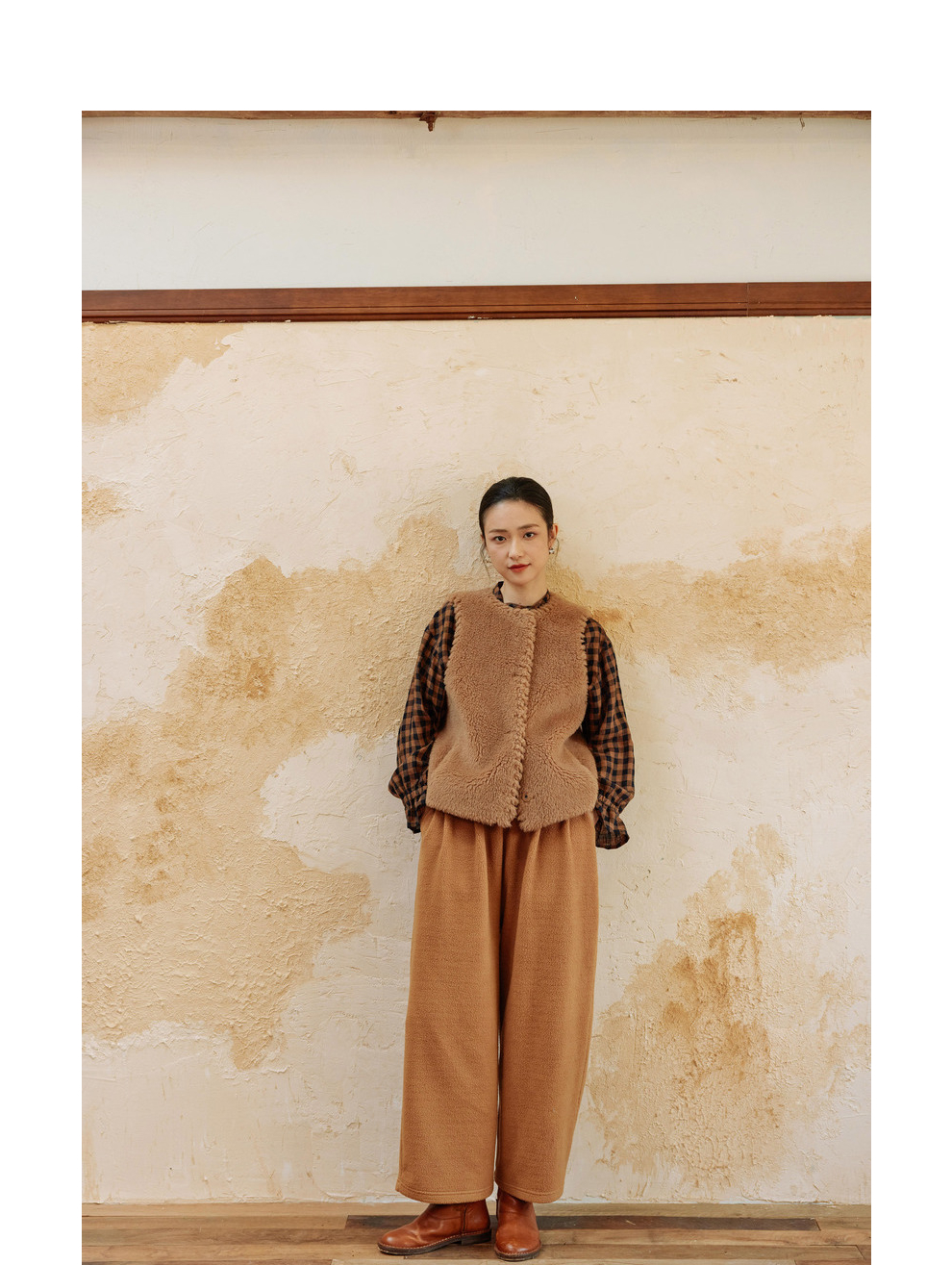 绽放810朵/高端棕色松软加厚绵羊绒防风保暖重手工包边无袖短马甲