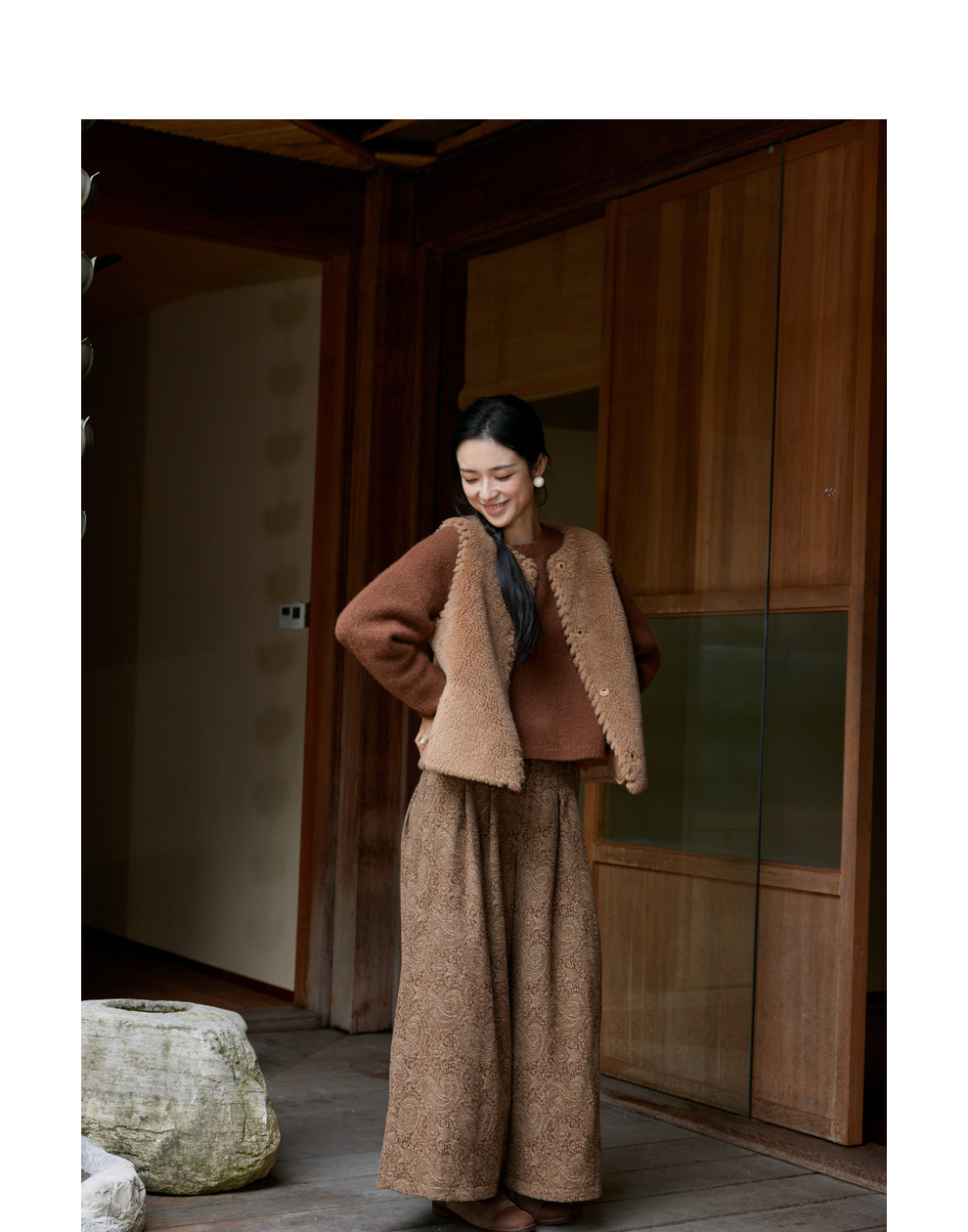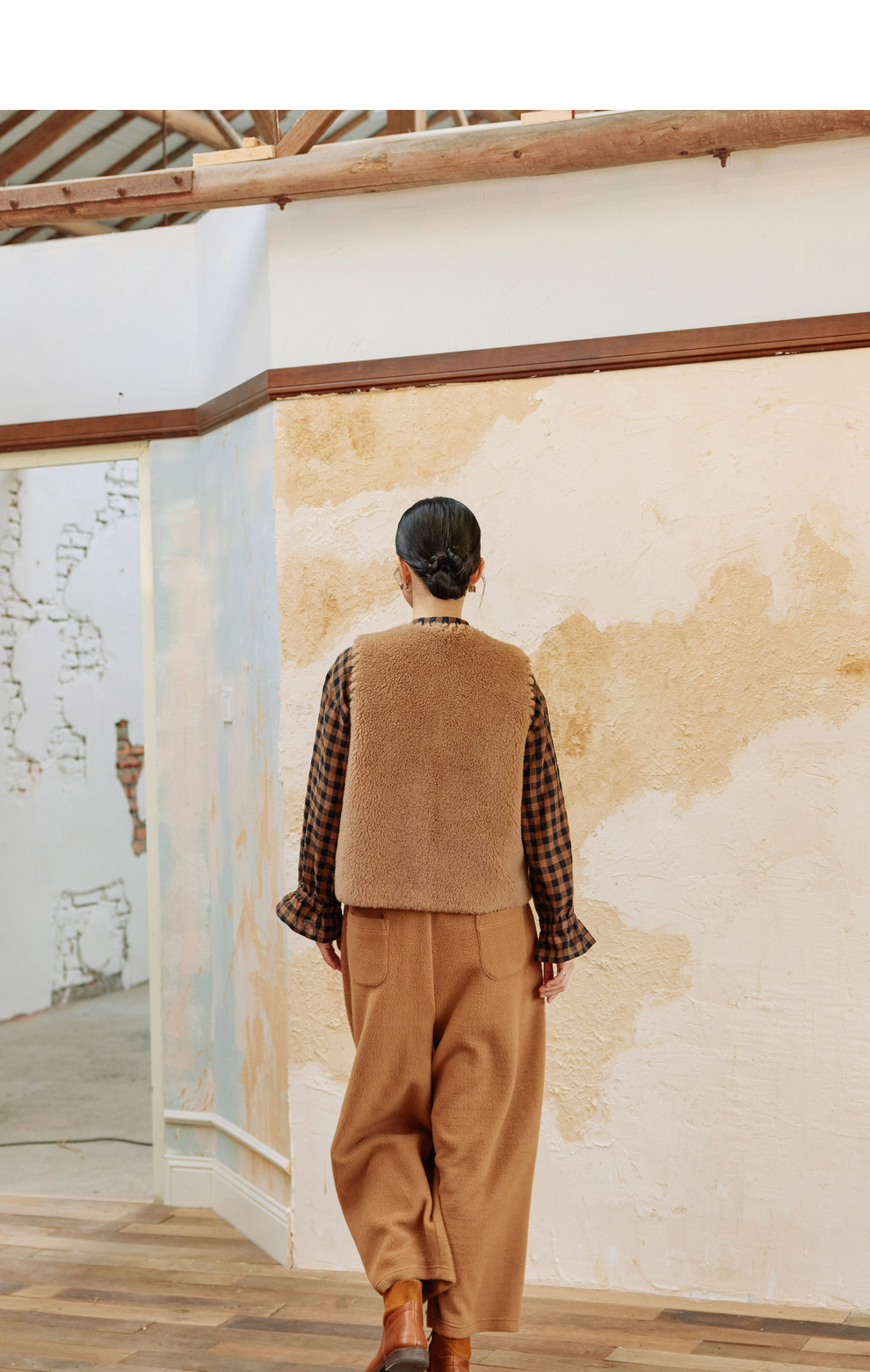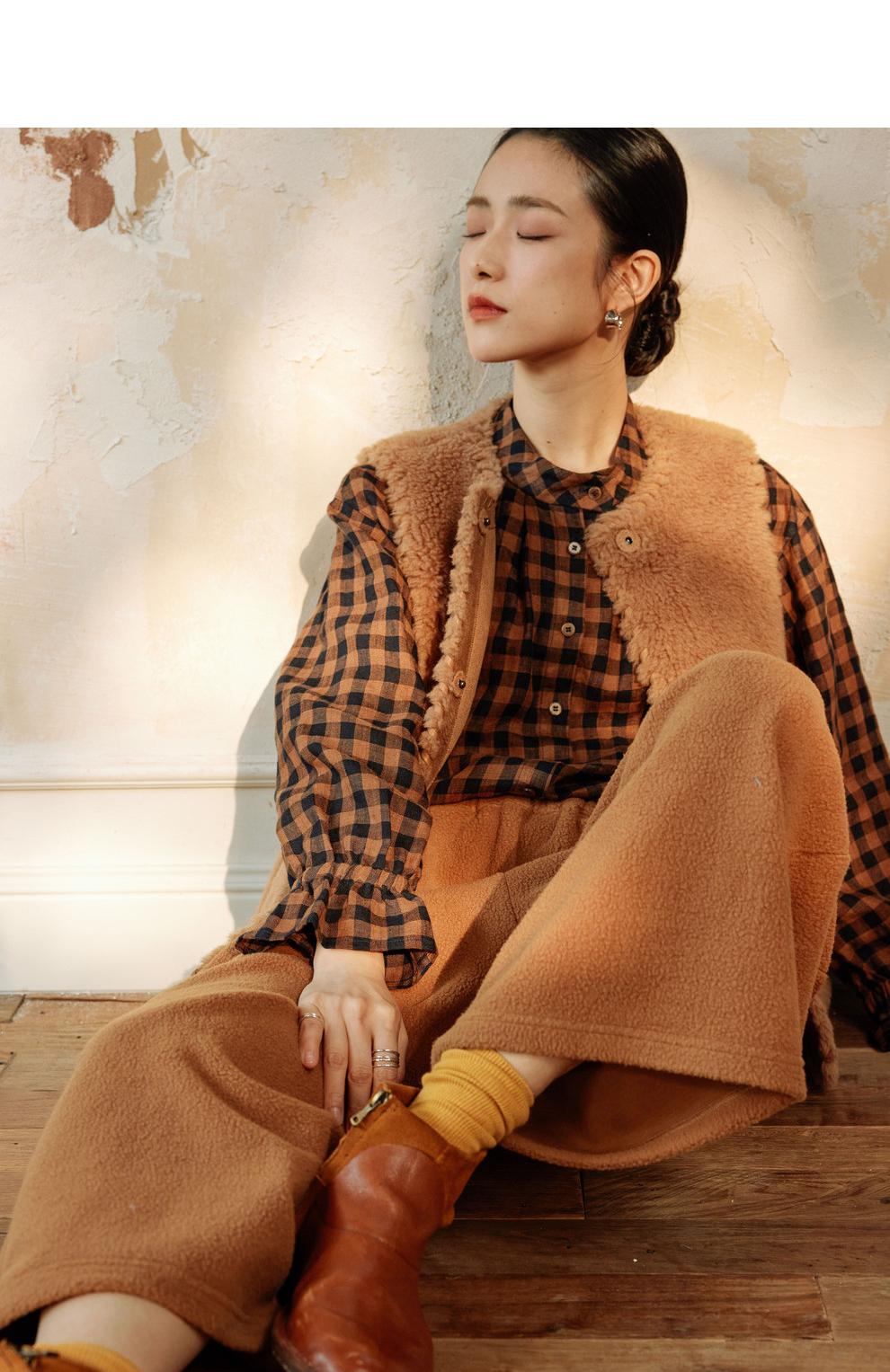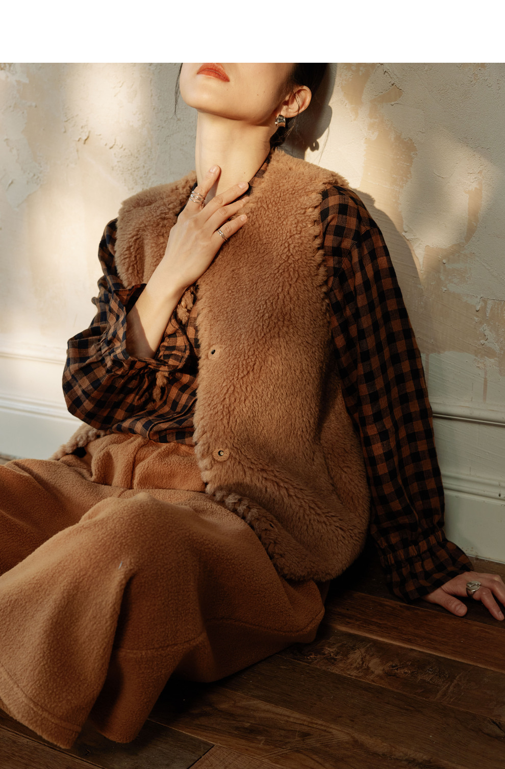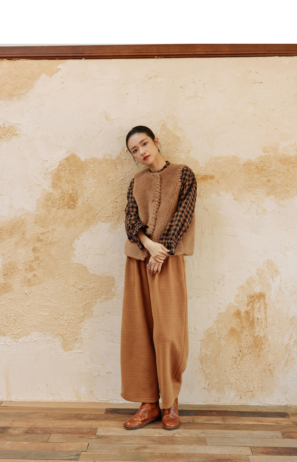 绽放810朵/高端棕色松软加厚绵羊绒防风保暖重手工包边无袖短马甲