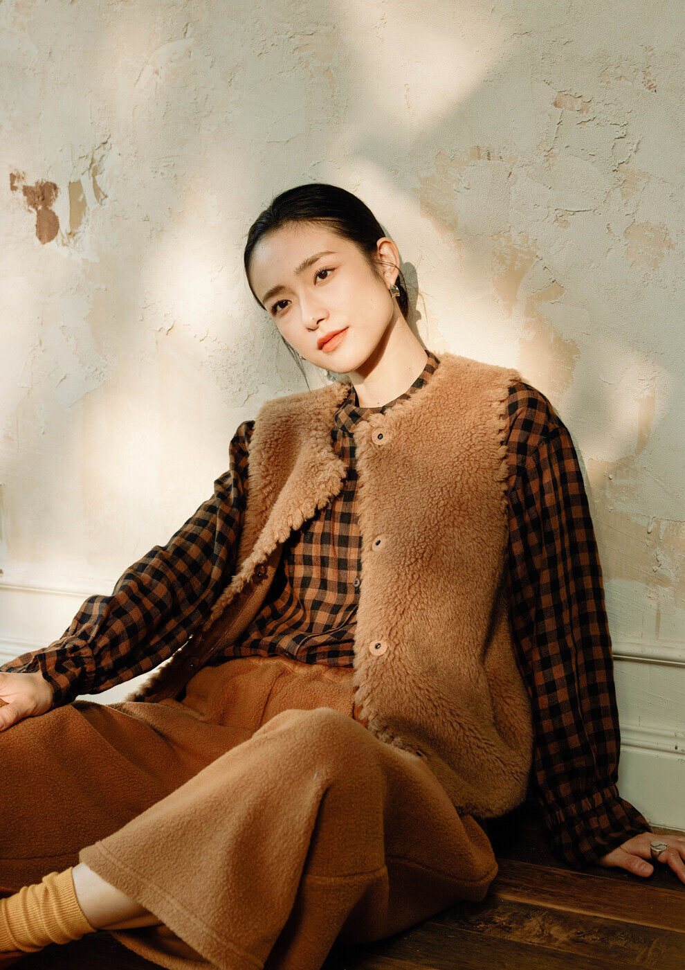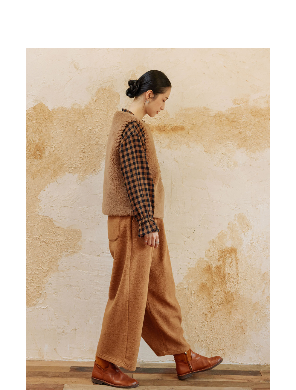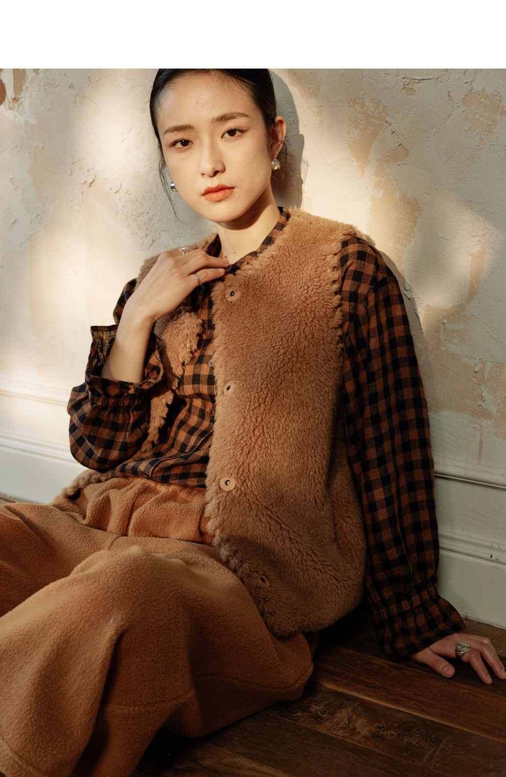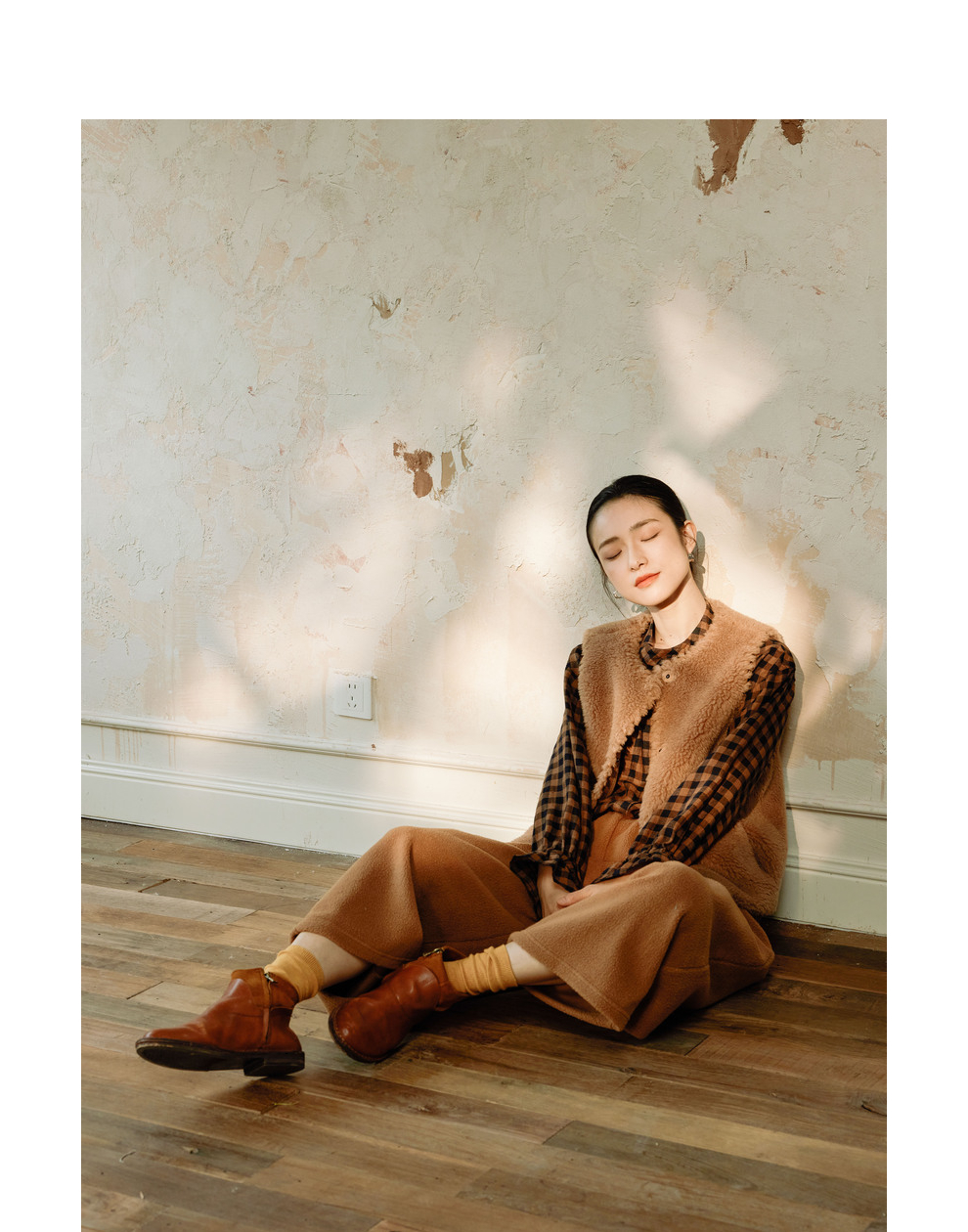 绽放810朵/高端棕色松软加厚绵羊绒防风保暖重手工包边无袖短马甲
