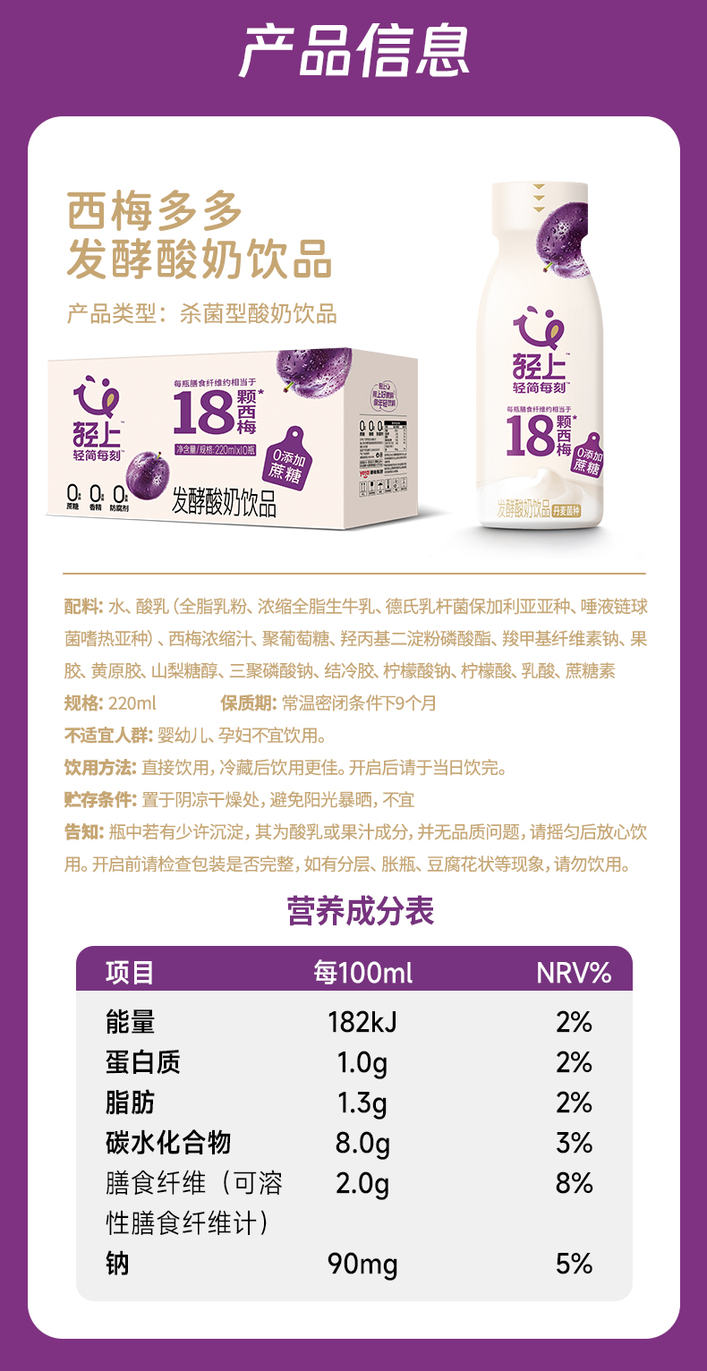 轻上西梅多多常温发酵酸奶饮品营养牛奶早餐无负担轻食解腻饮品