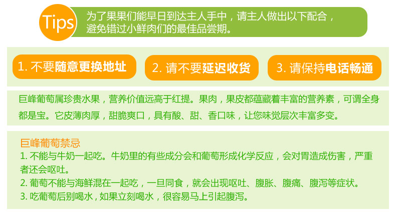 1、工作日17点截单,截单后的订单将于第二天凌晨四点开始采摘,八点开始装箱后陆续发货。生鲜水果发出后,不得申请退款!