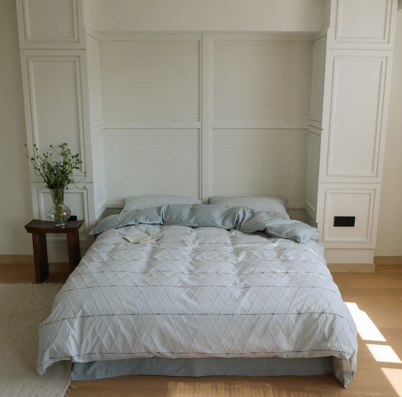 【全棉系列】 韩风色织肌理手工剪花床上四件套 水洗纯棉床单被套春夏新品1.8m