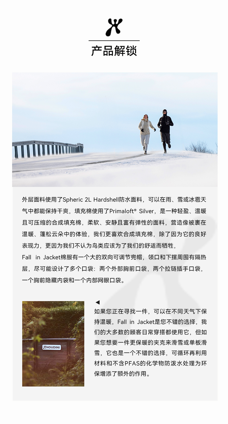 HOUDINI胡丁尼Fall in Jacket立秋II代 女户外冬新品保暖P棉服防寒外套 810052