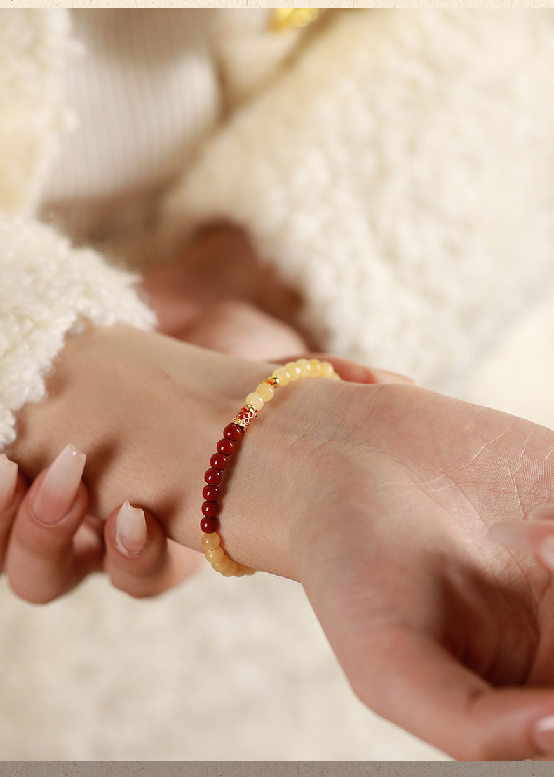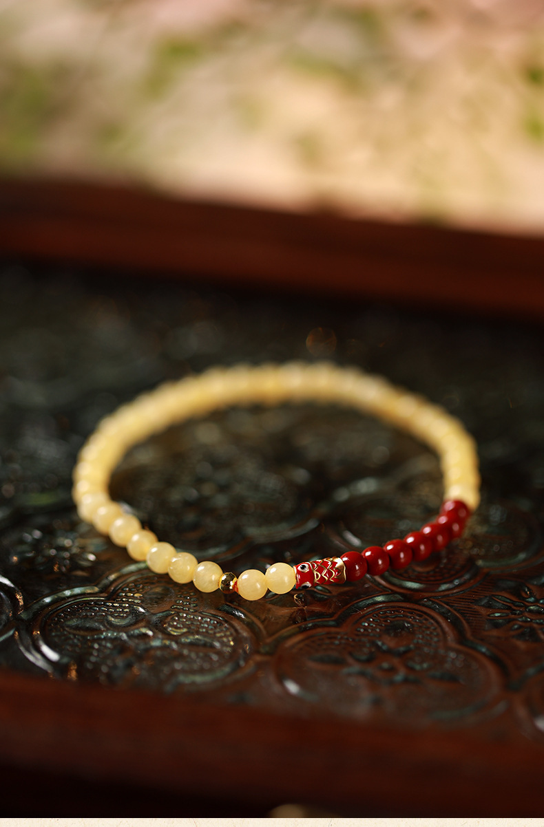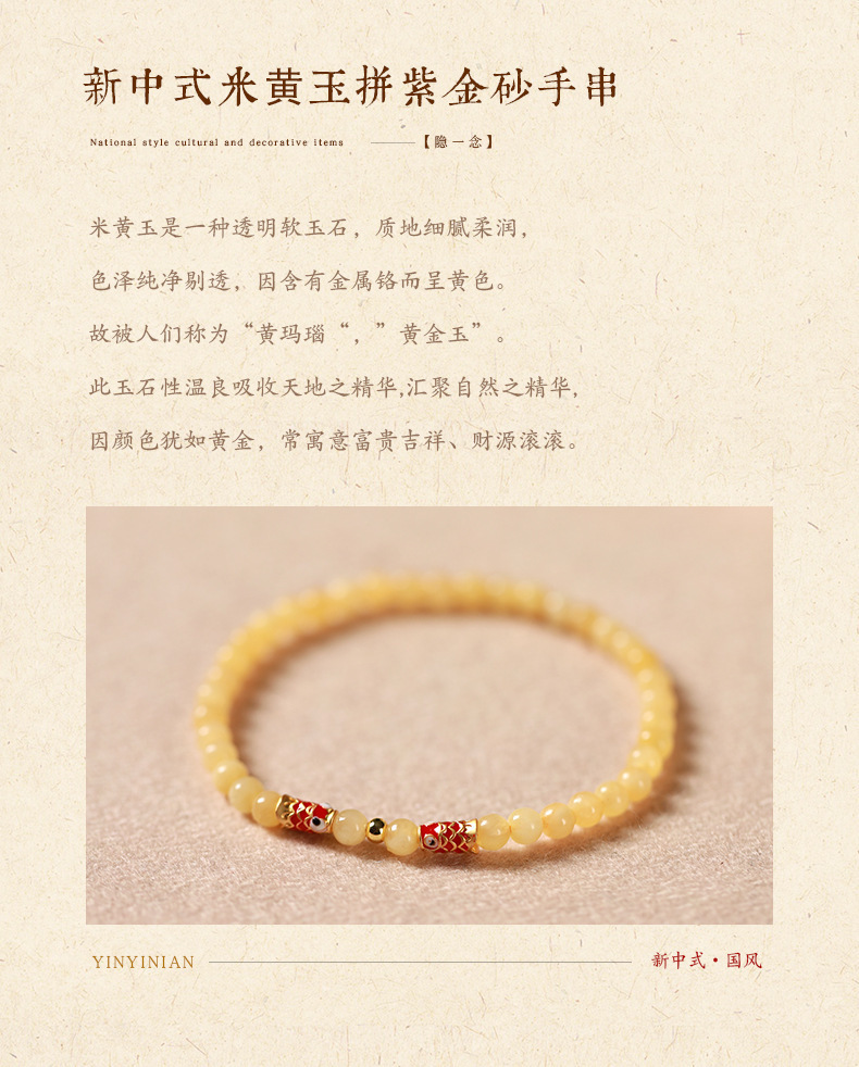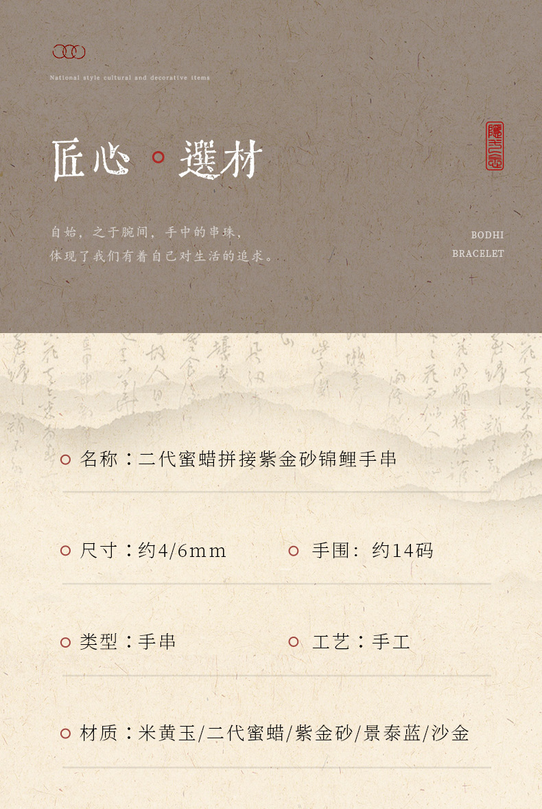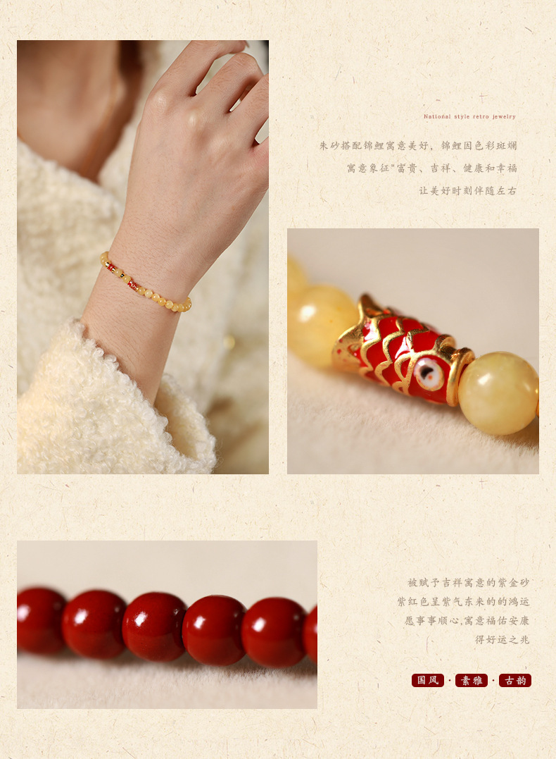 六鑫珠宝 景泰蓝米黄玉紫金砂二代蜜蜡锦鲤上岸手串