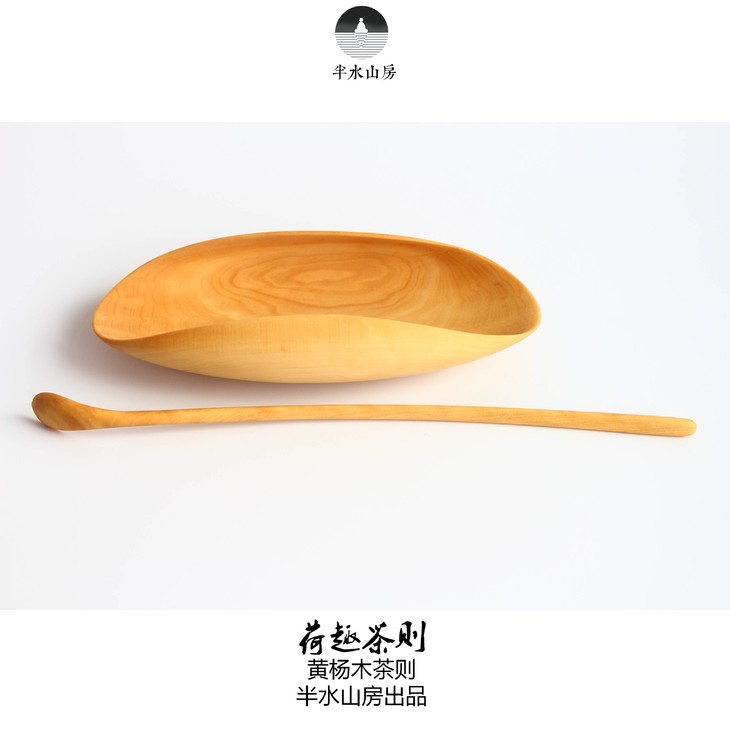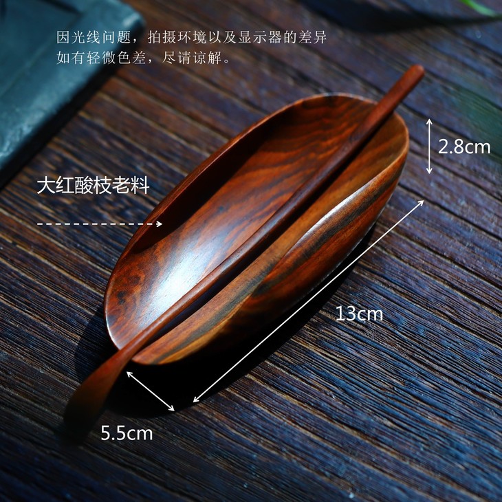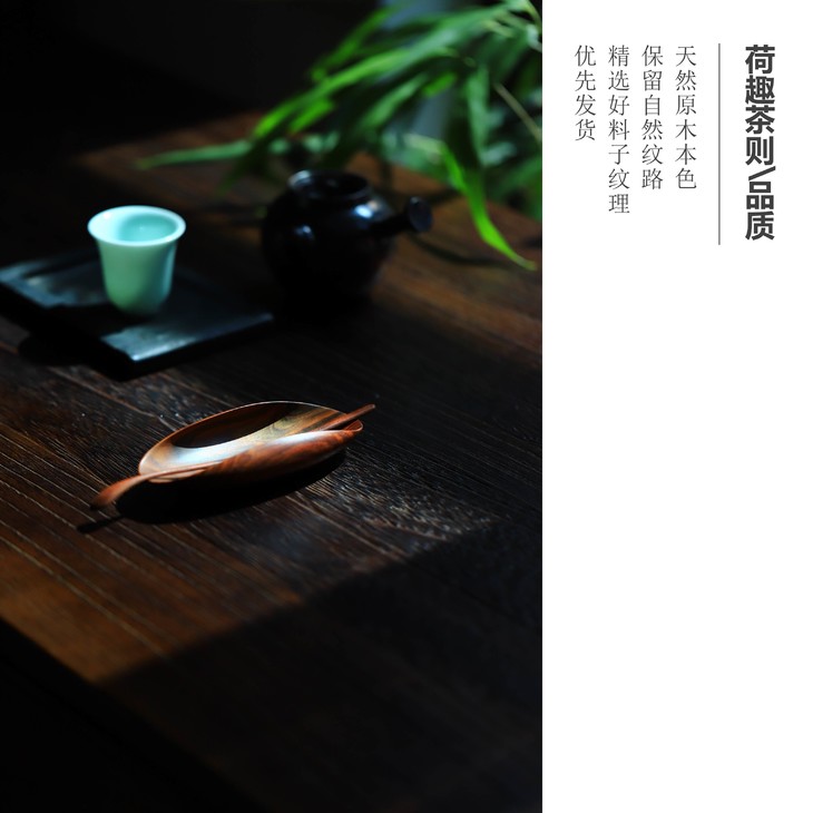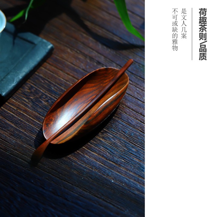 黄杨木荷趣茶则茶荷原创设计红木茶则茶船