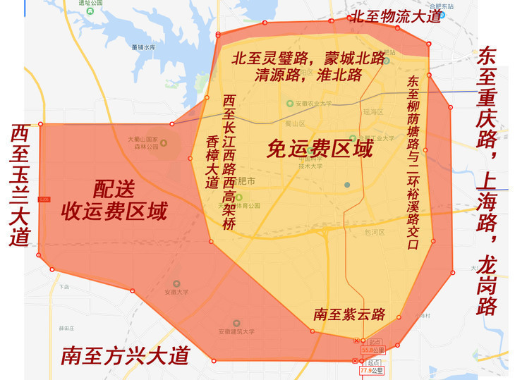 免配送范围:西至香樟大道,南至紫云路,北至北二环,东至东二环,超出配送范围,需联系客服4006-591-520