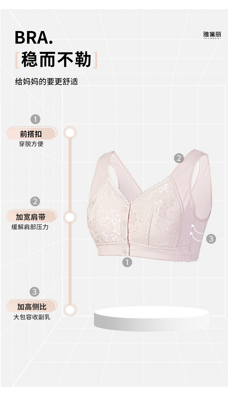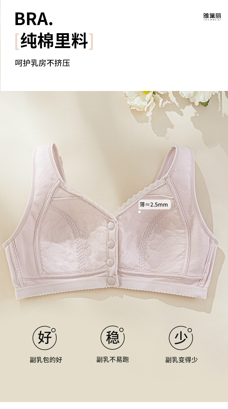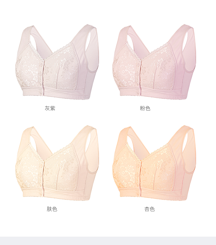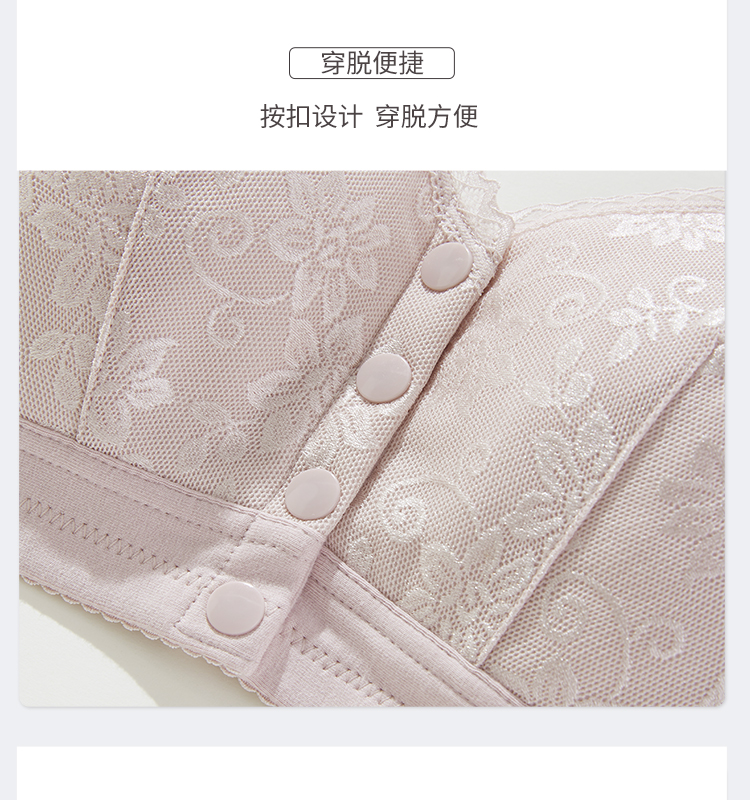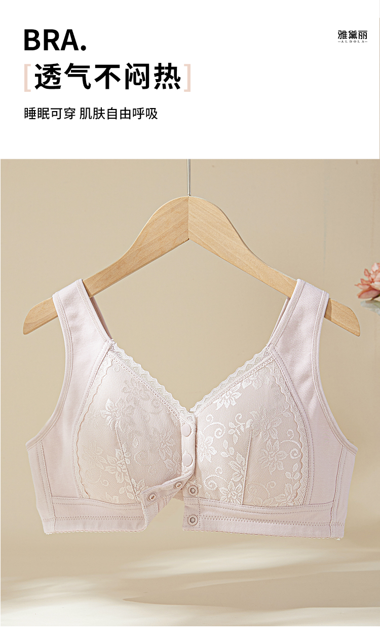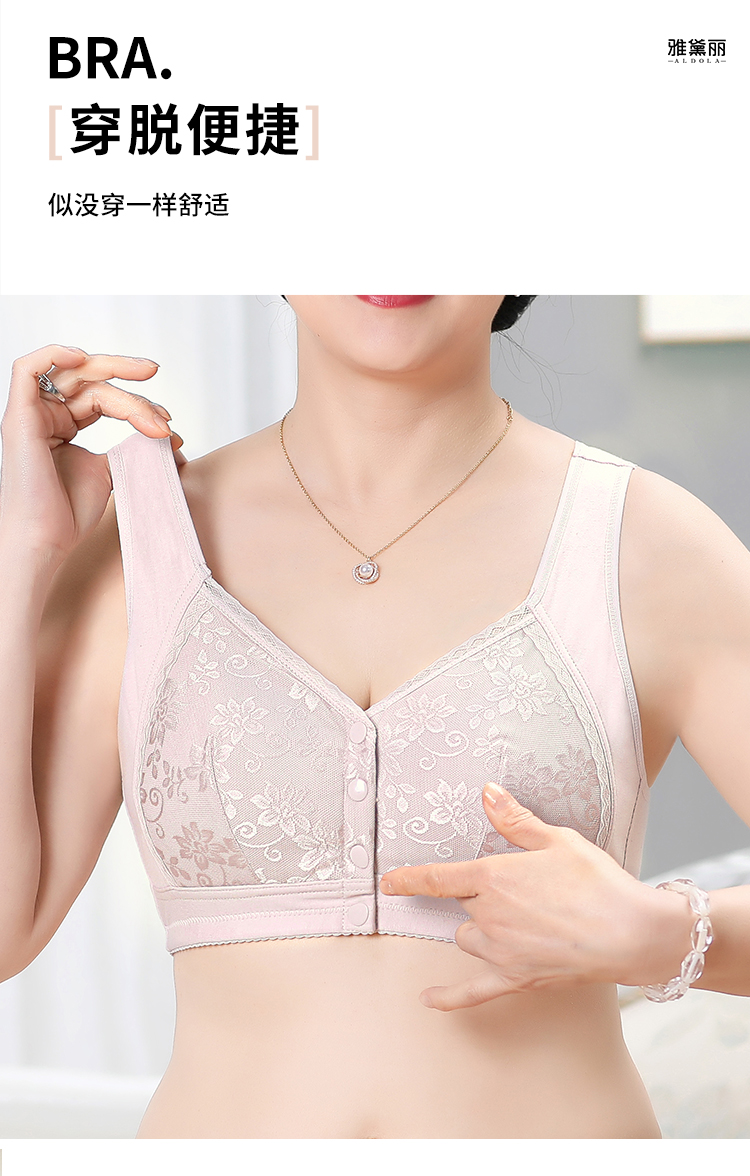 雅黛丽中老年文胸夏季薄款前开扣妈妈内衣蕾丝大码背心式女士胸罩