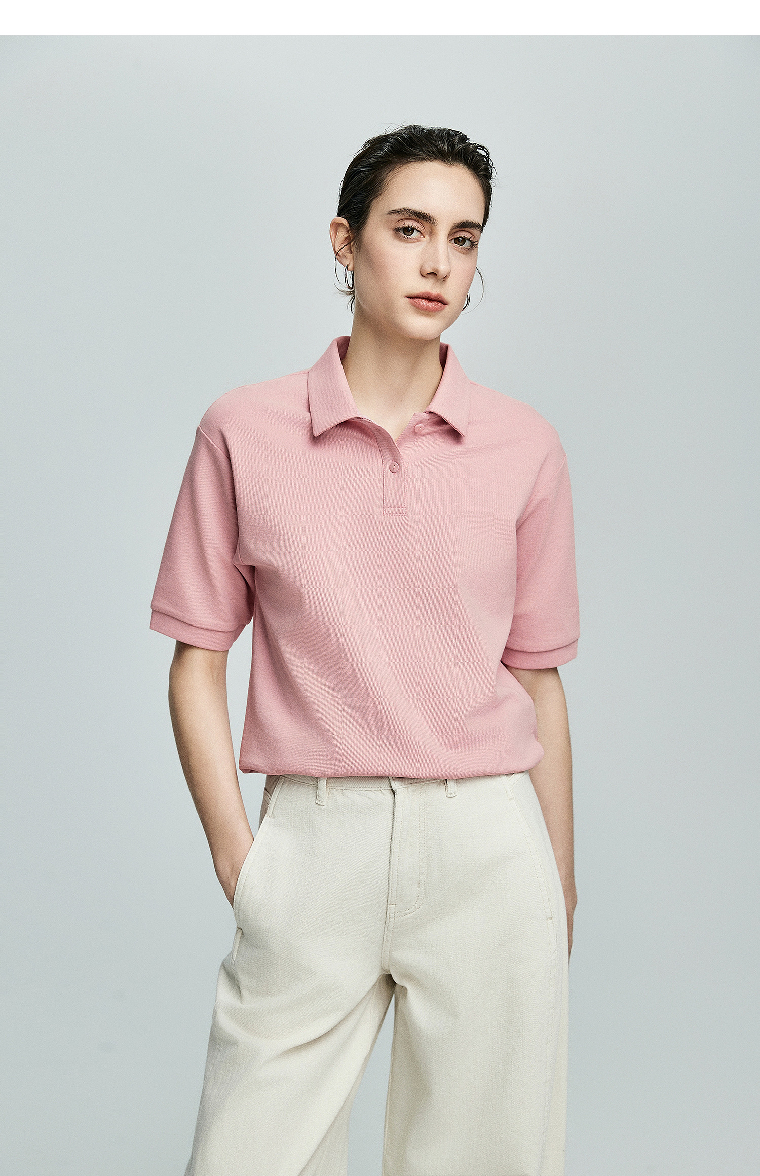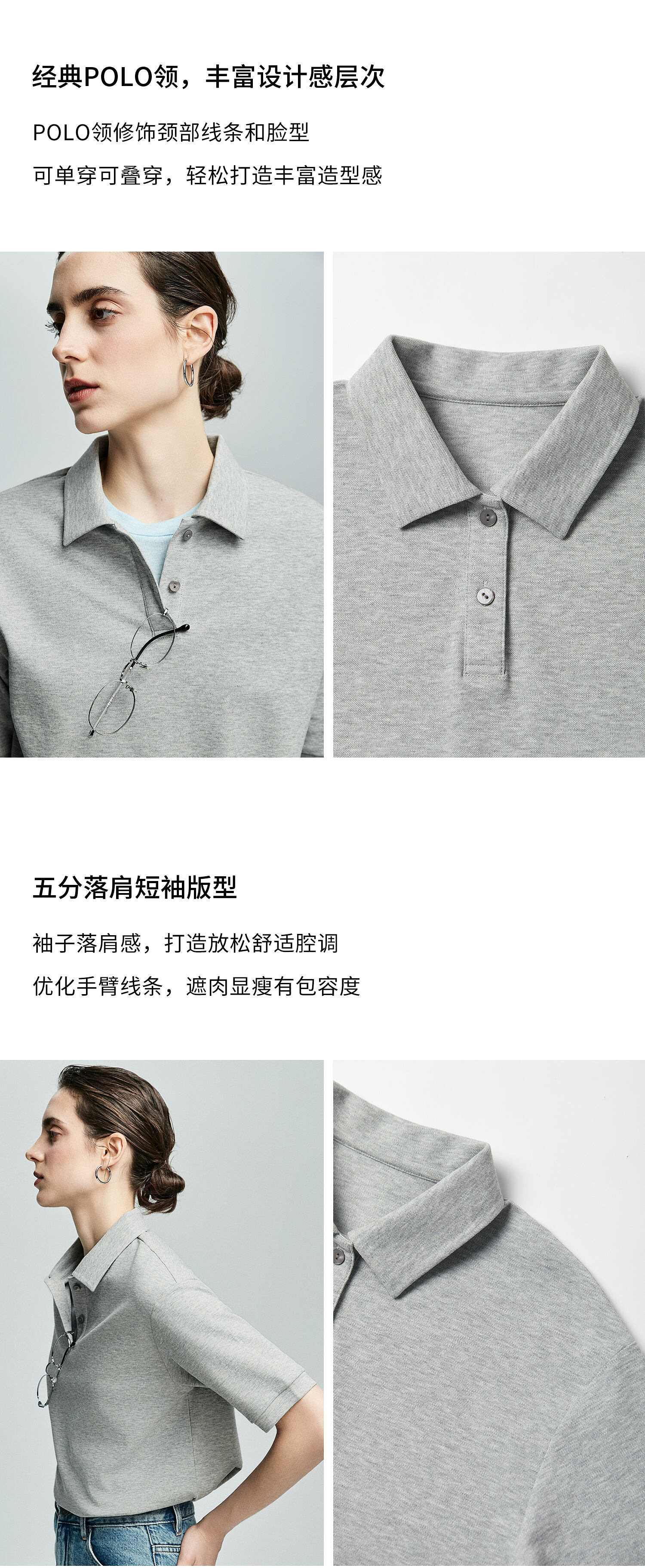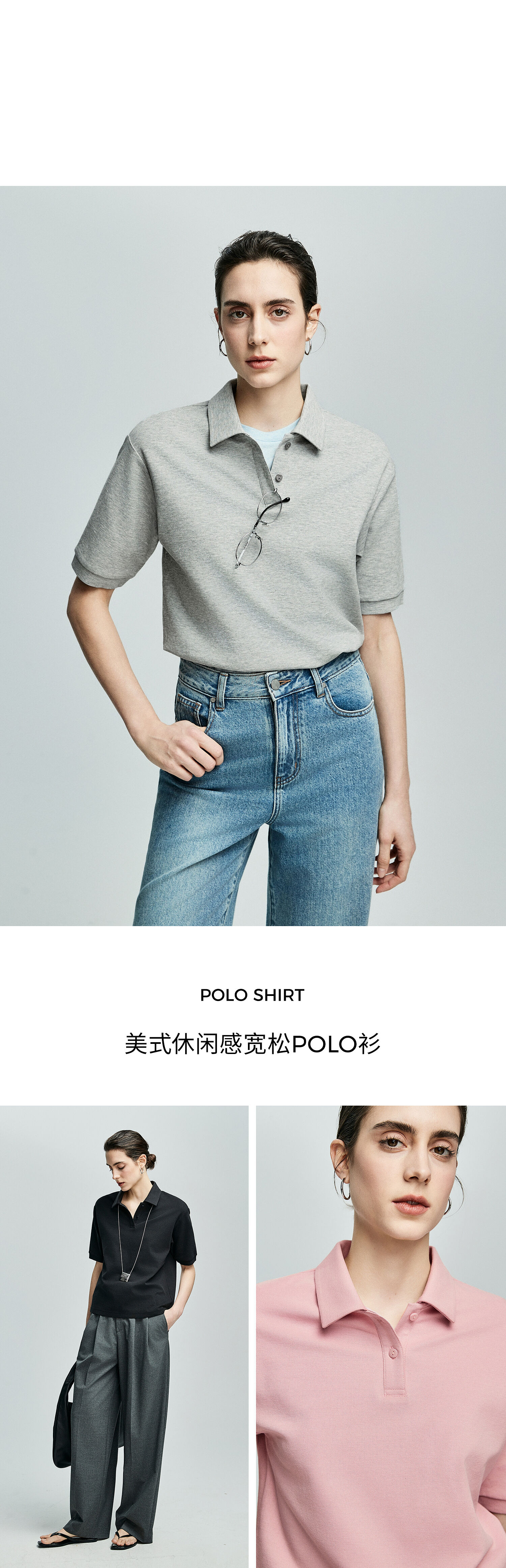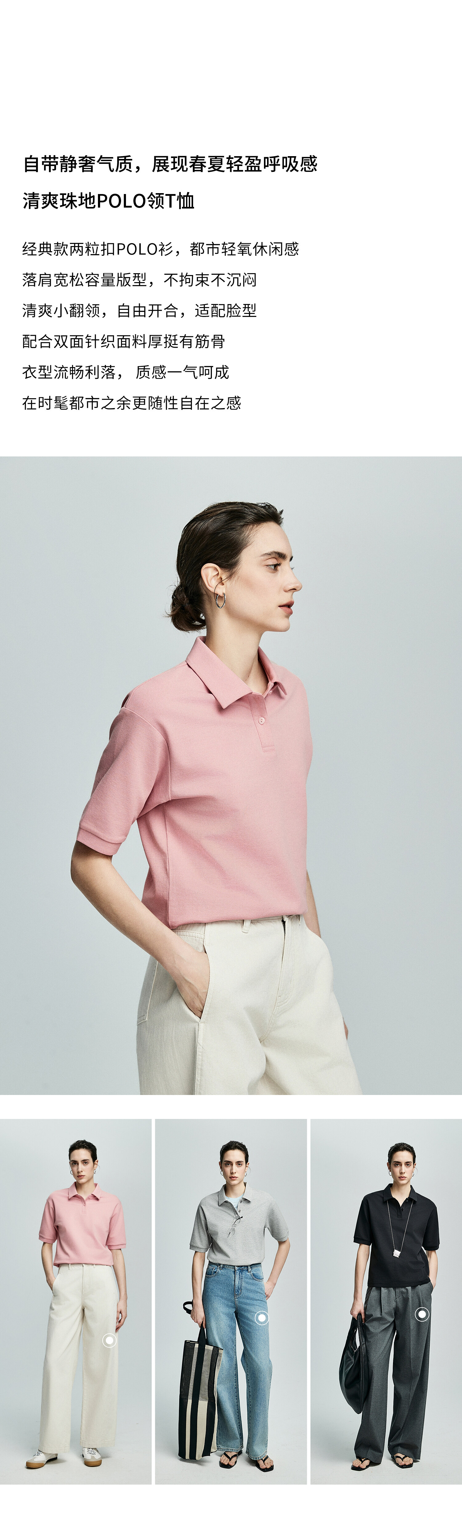 棉仓363601003初棉美式落肩宽松小翻领POLO衫