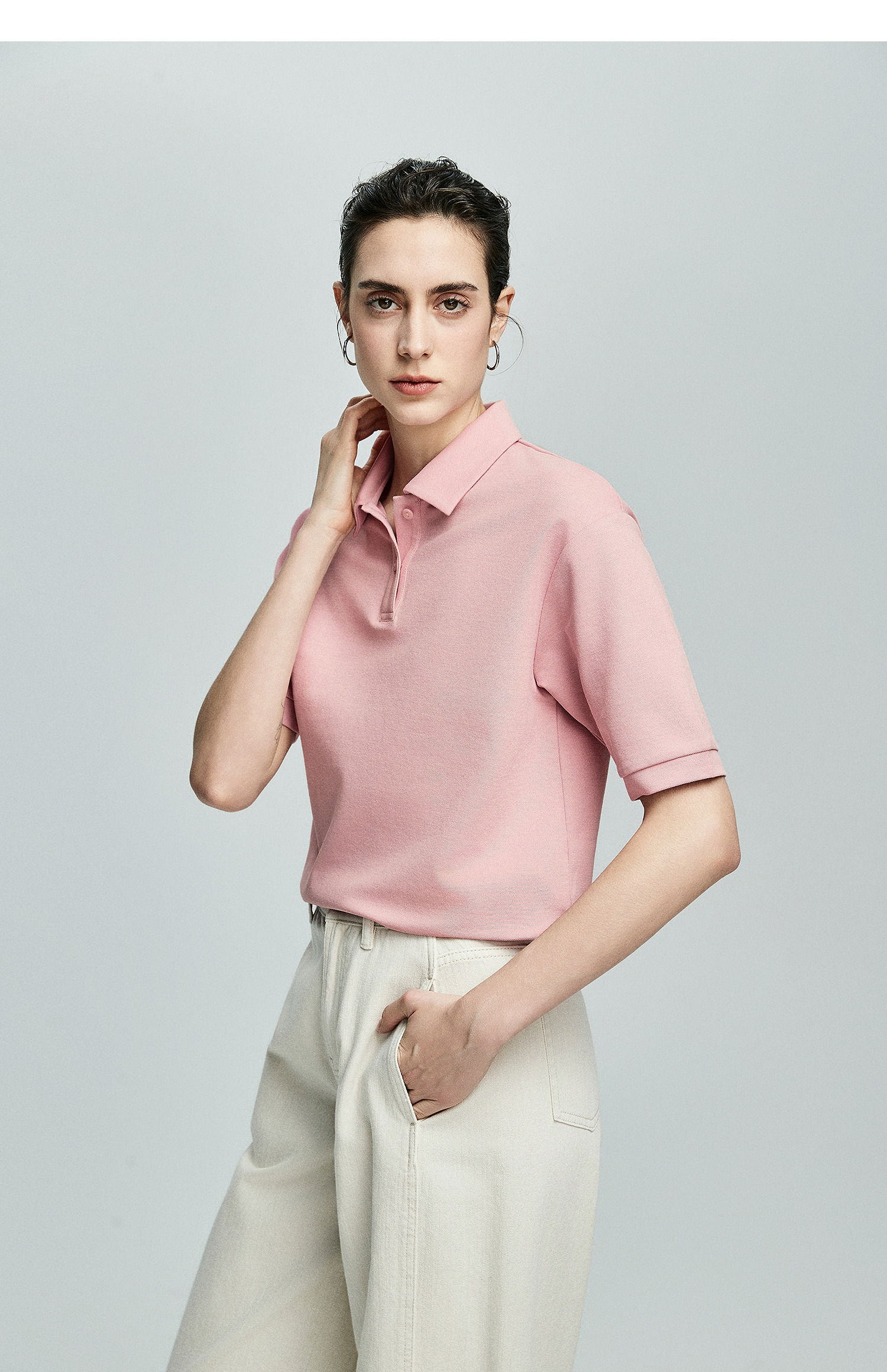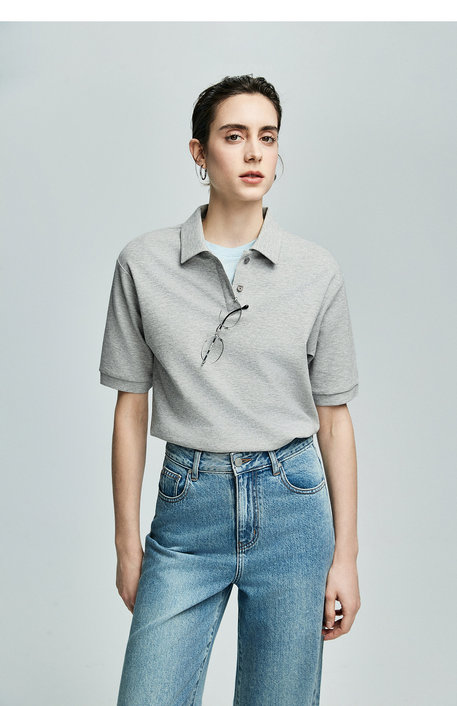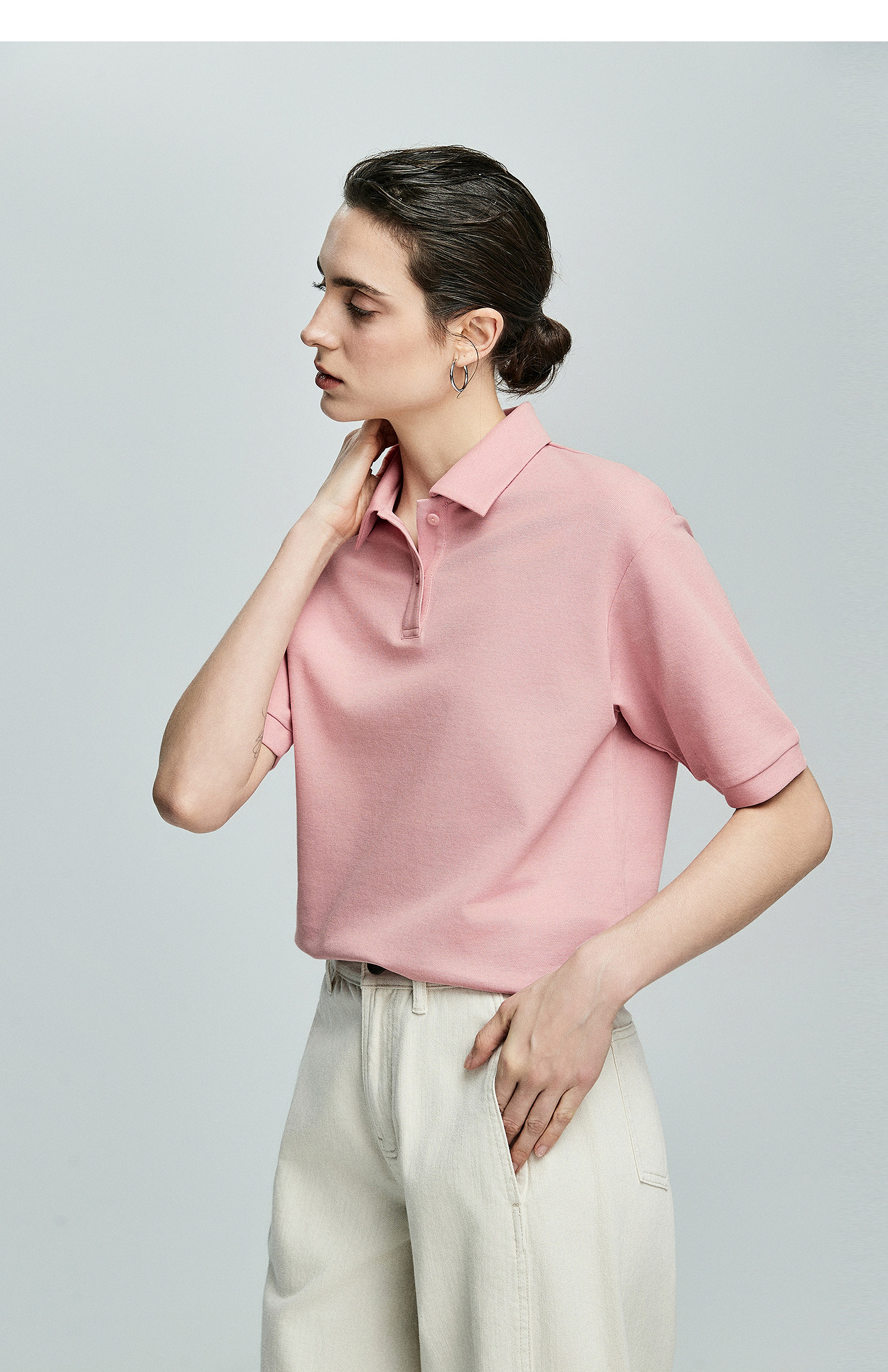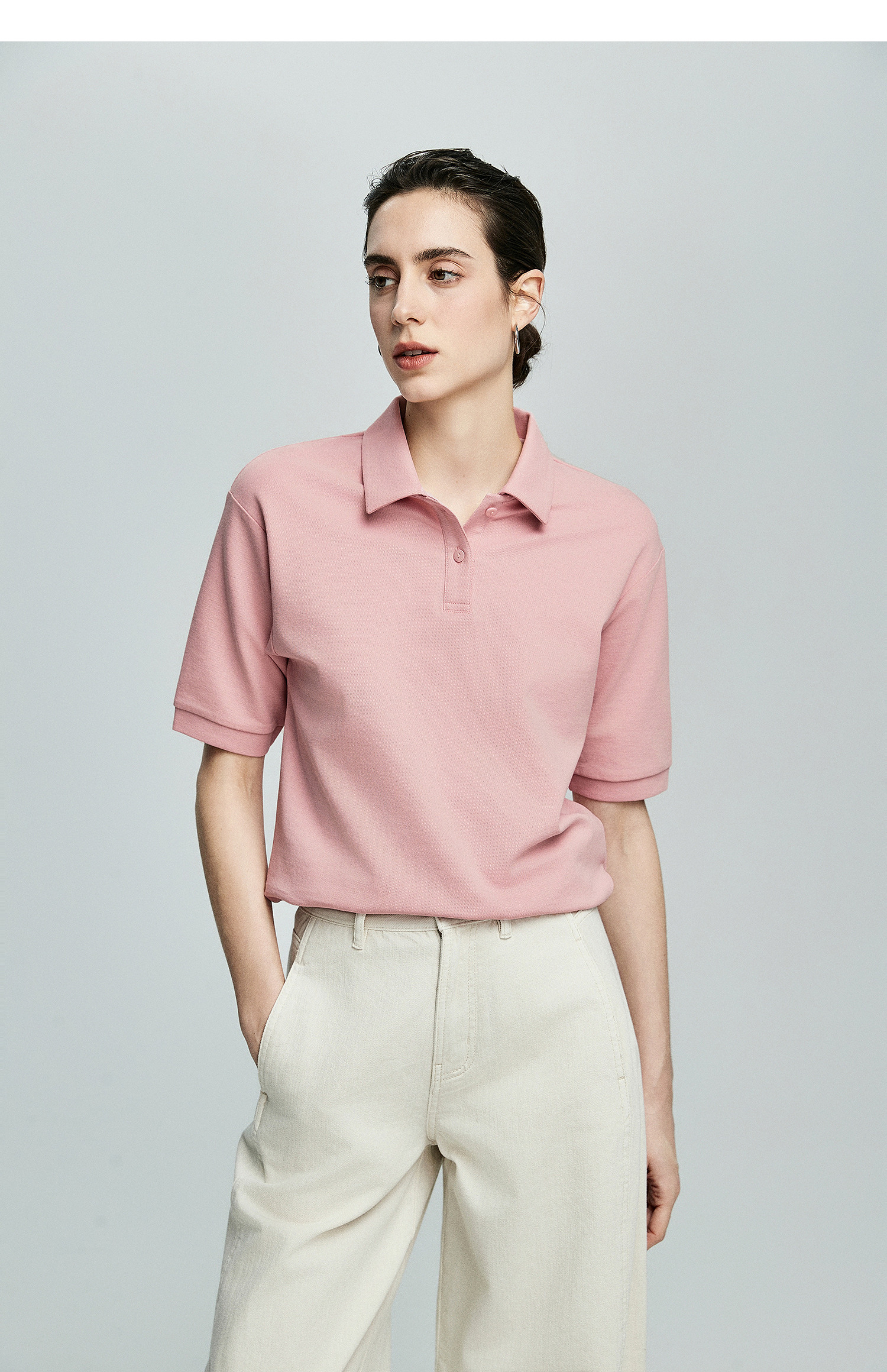 棉仓363601003初棉美式落肩宽松小翻领POLO衫