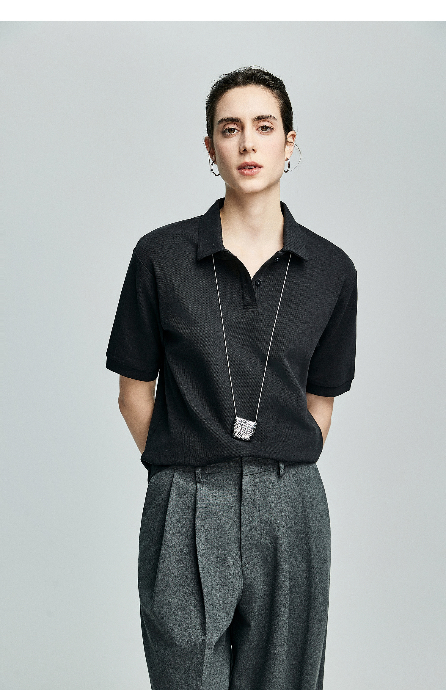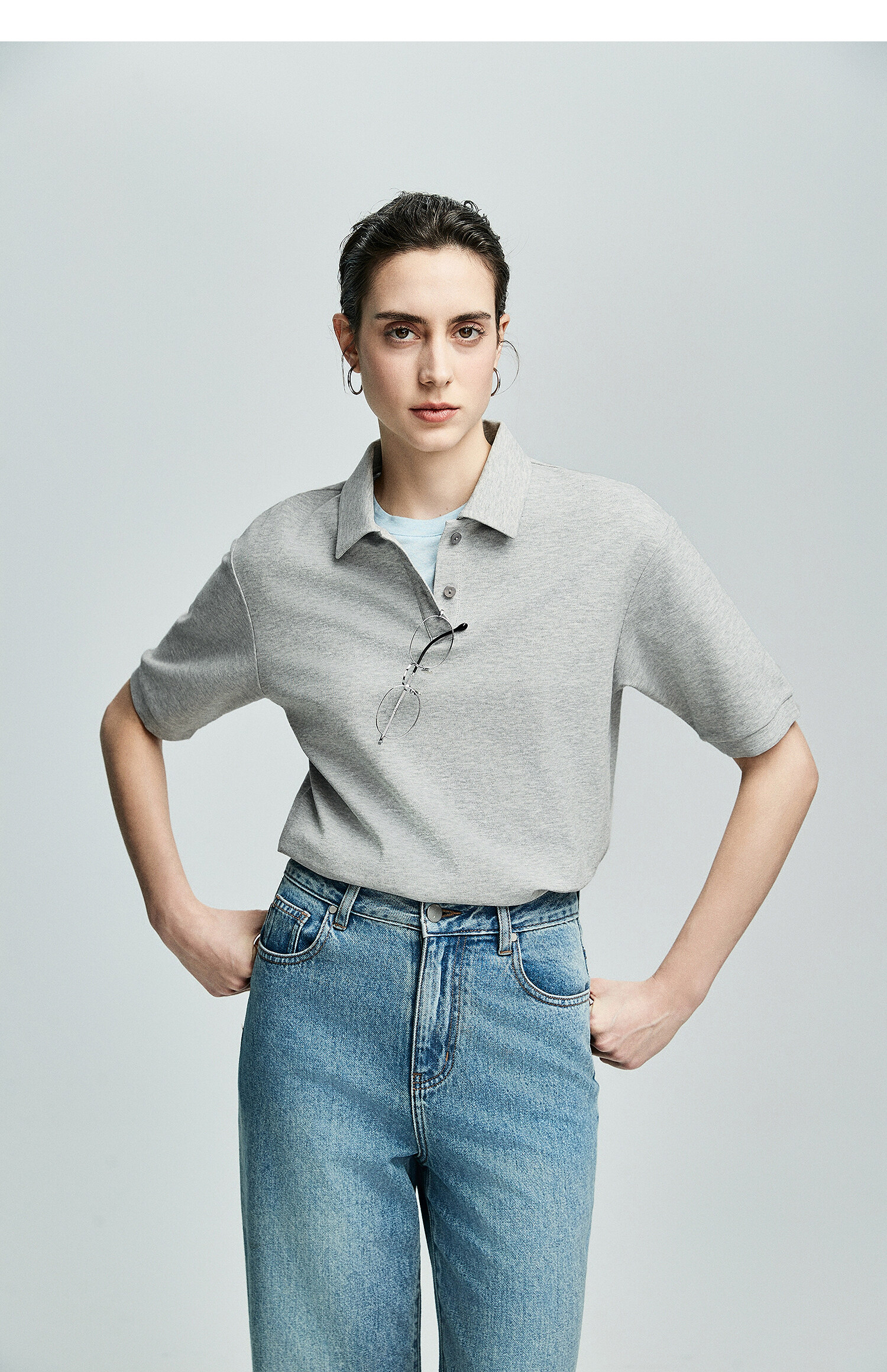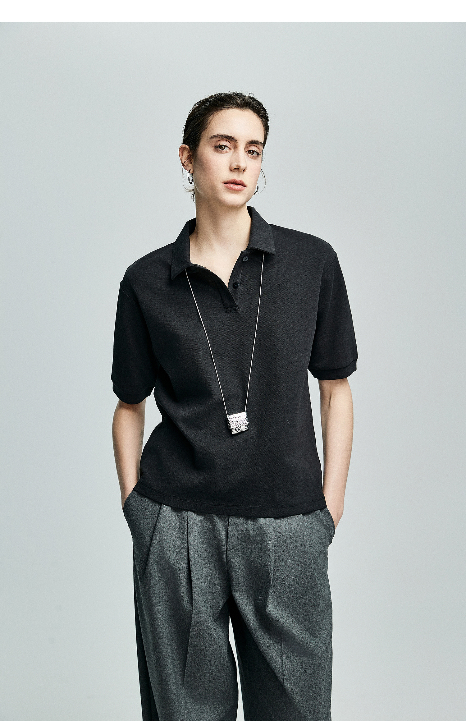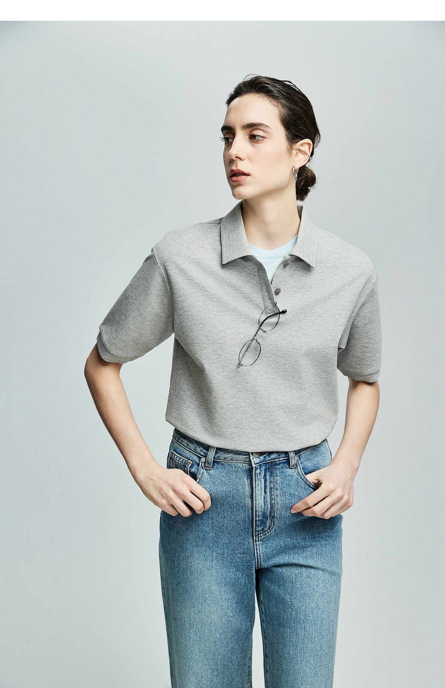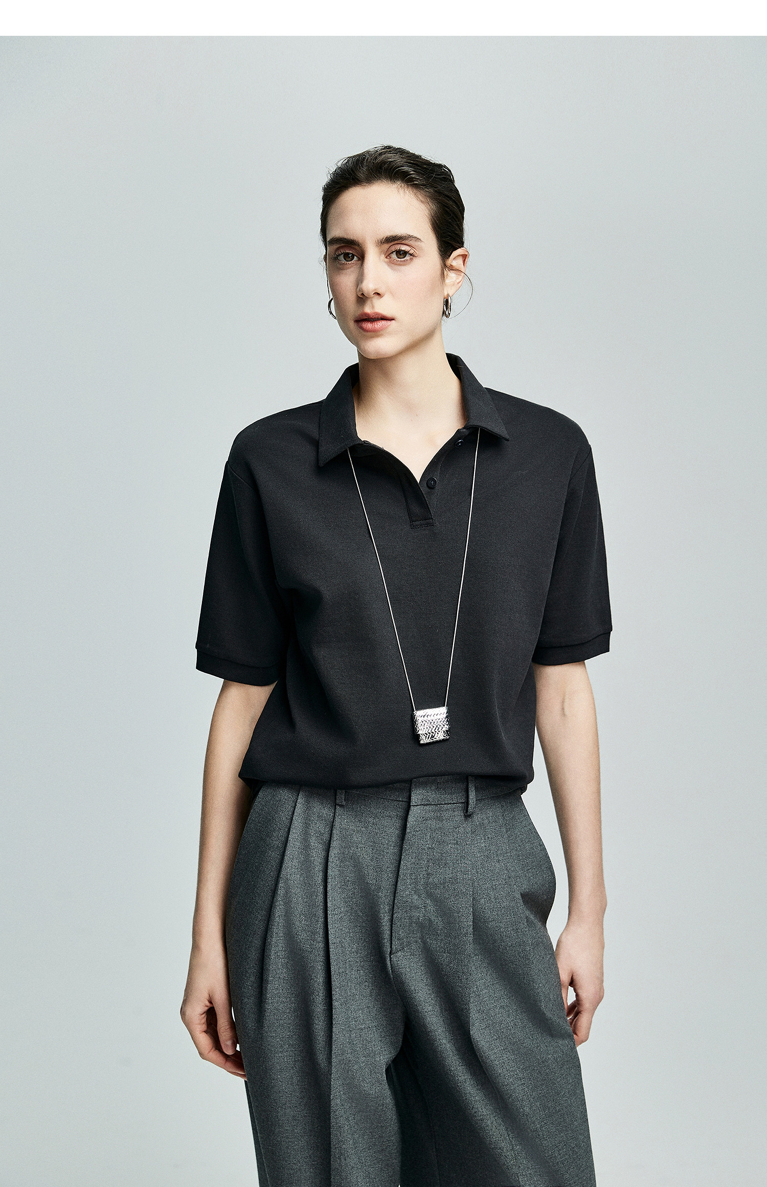 棉仓363601003初棉美式落肩宽松小翻领POLO衫