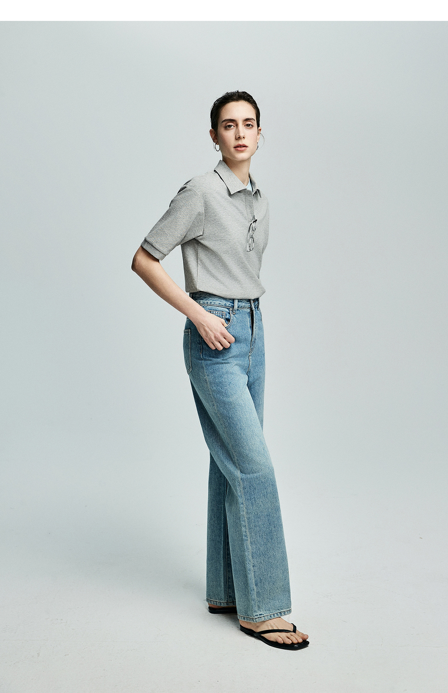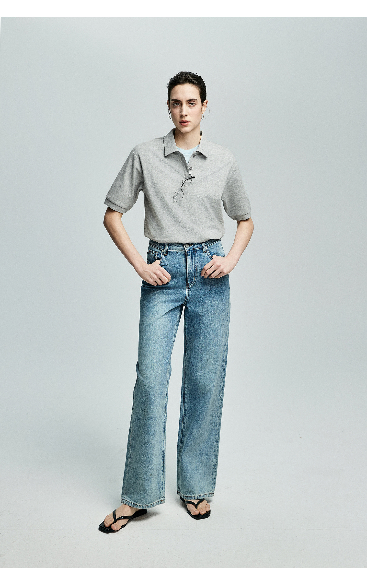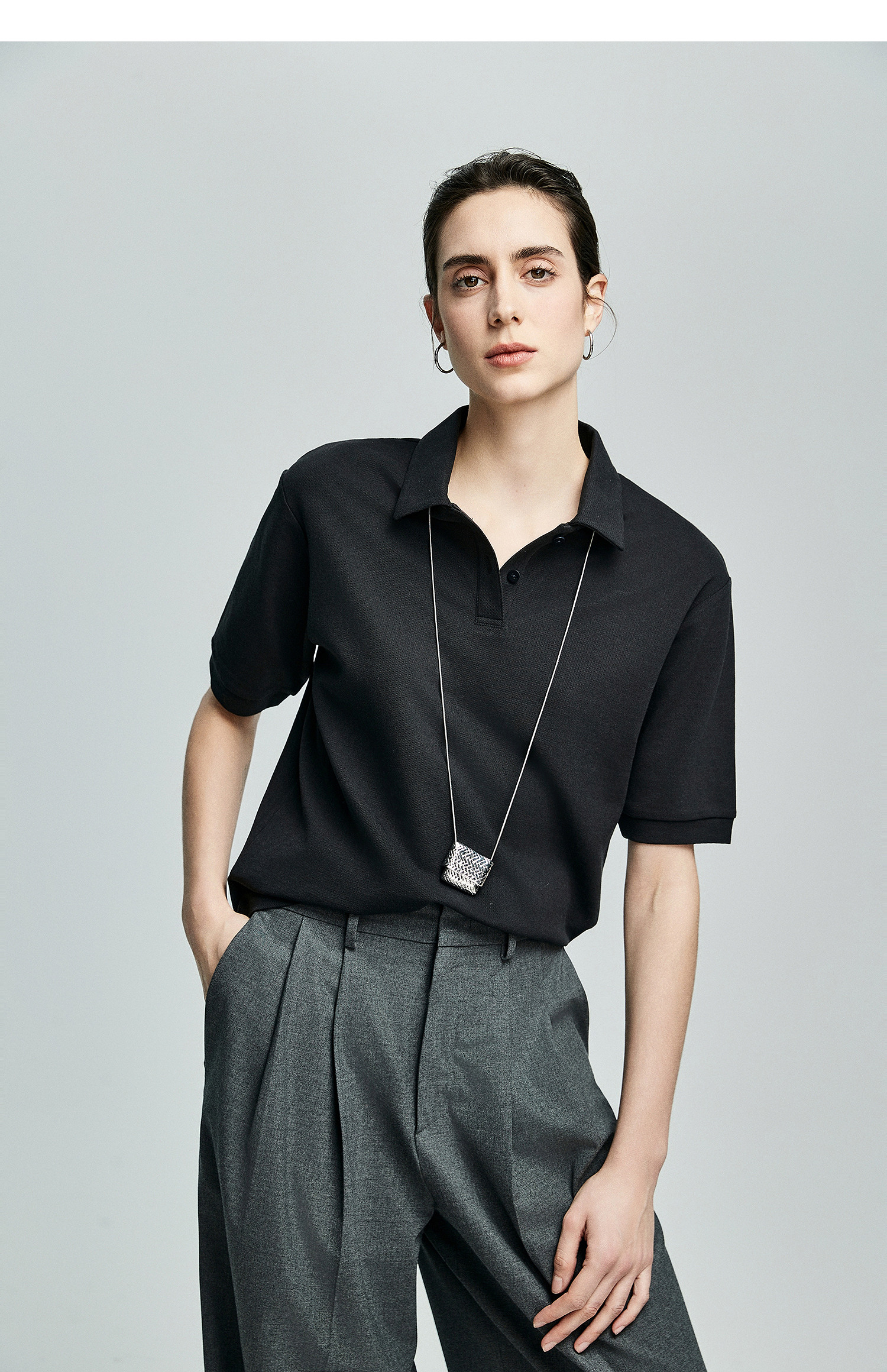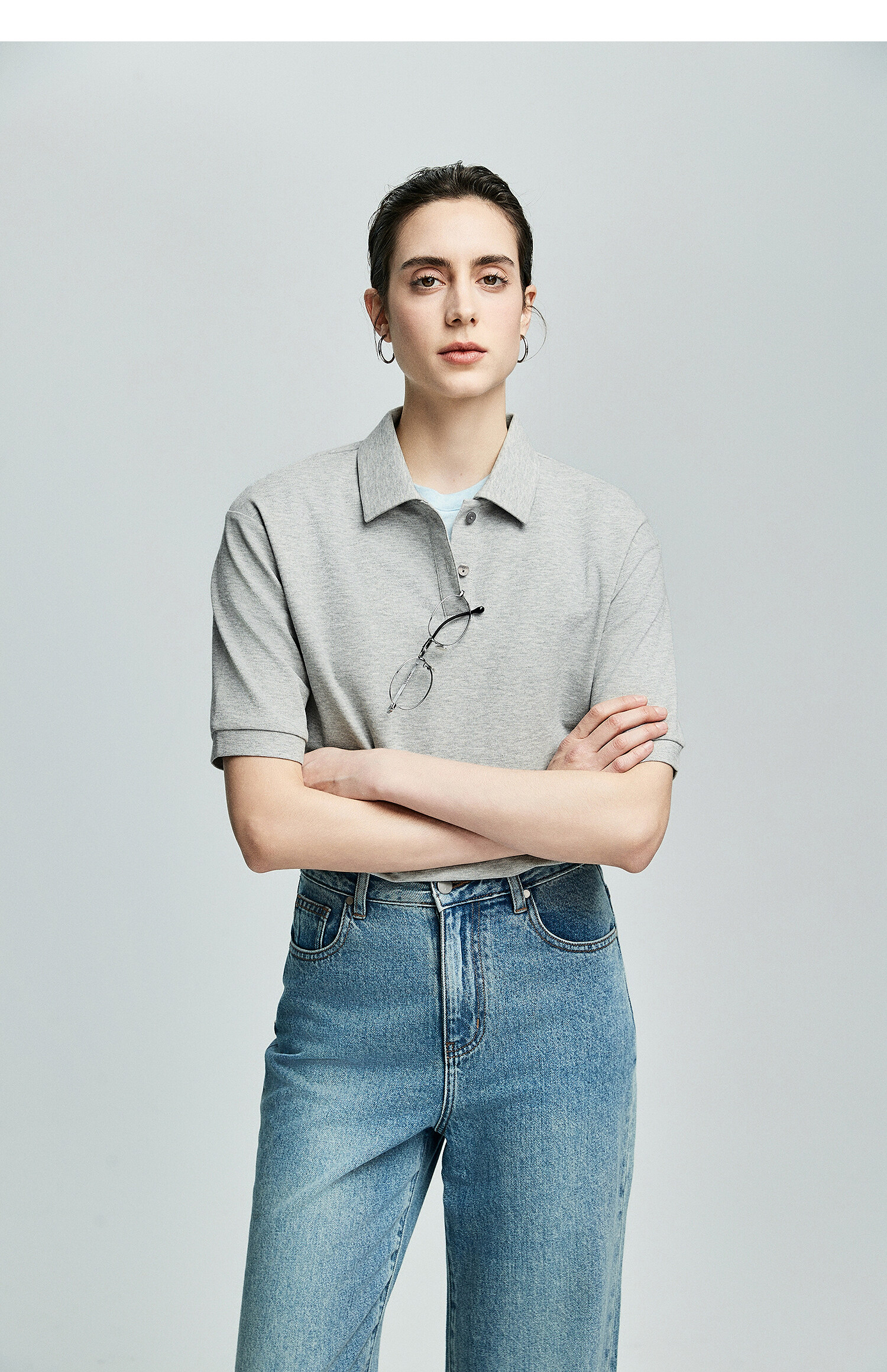 棉仓363601003初棉美式落肩宽松小翻领POLO衫