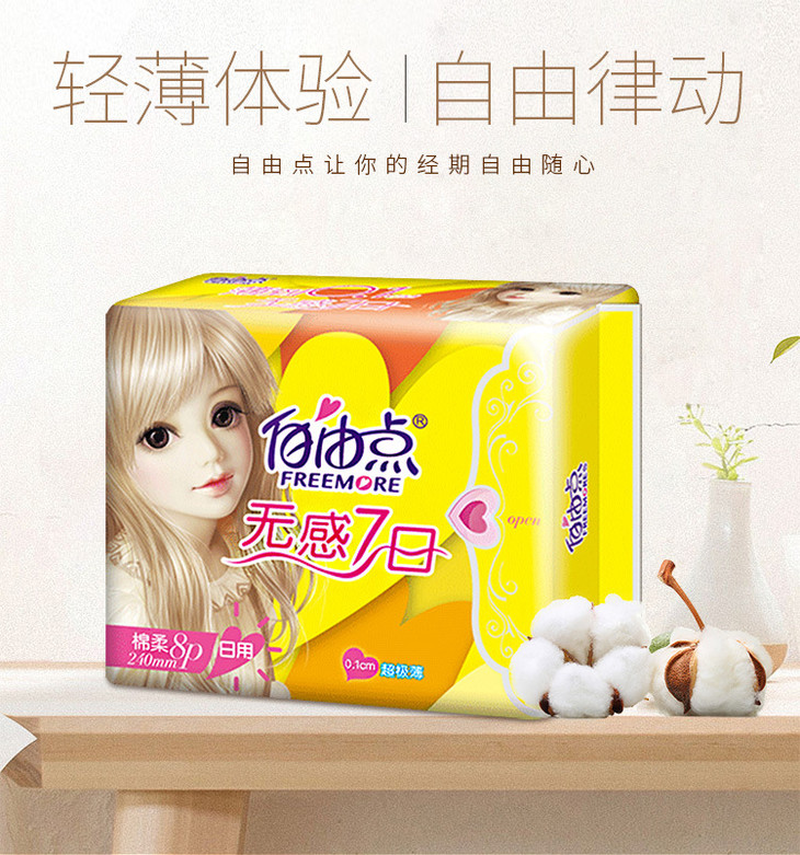 自由点 无感七日超级薄日用棉柔卫生巾 8片240mm