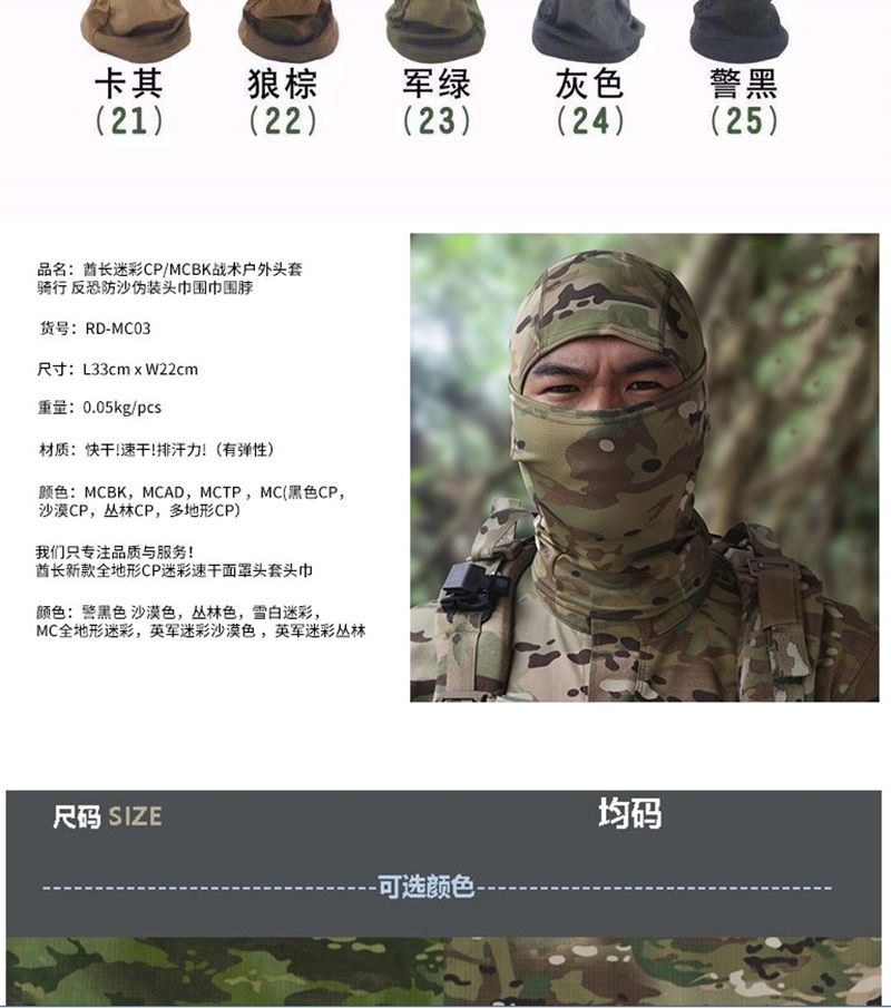 钓鱼迷彩面罩头套骑行防尘头巾围脖男士帽遮脸护脸防风套头帽 头巾