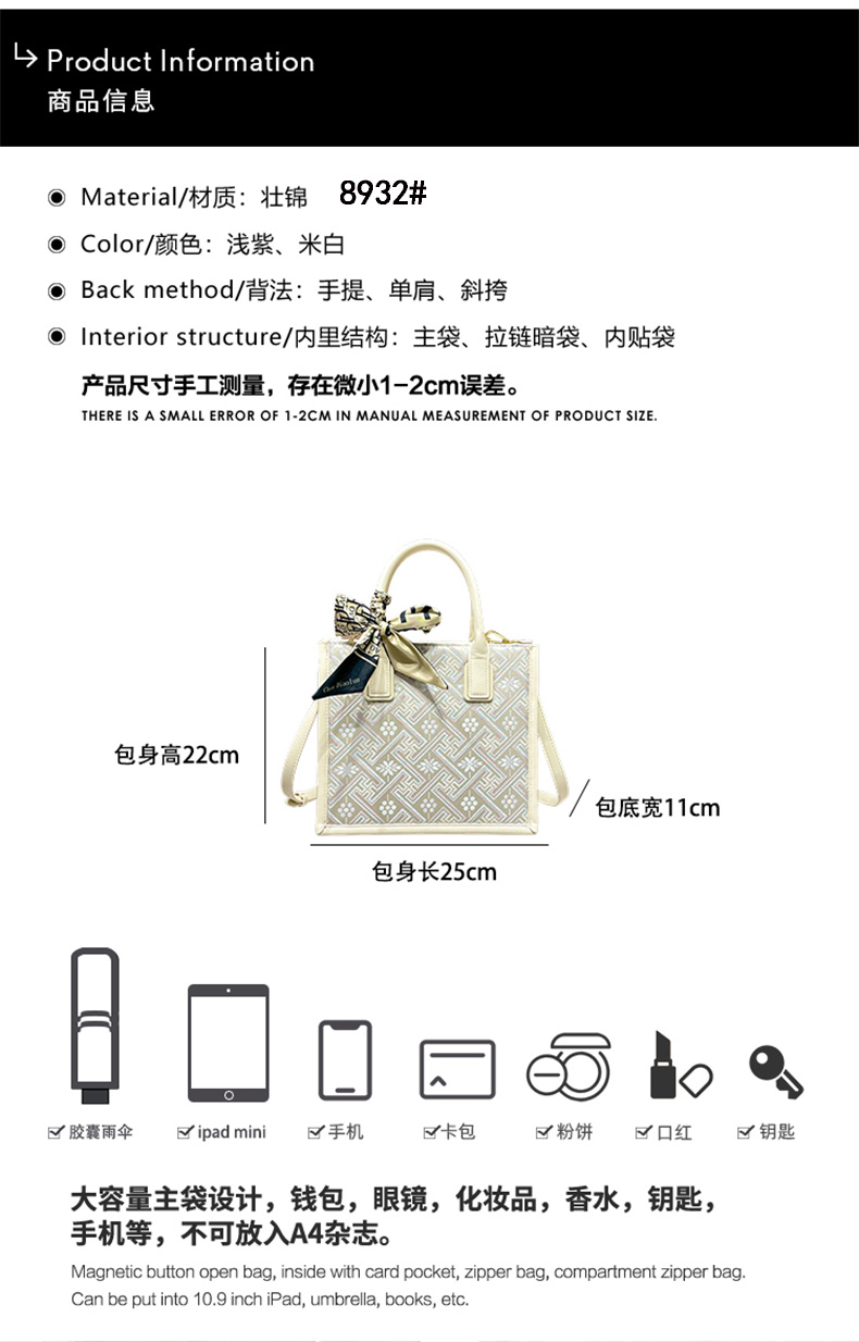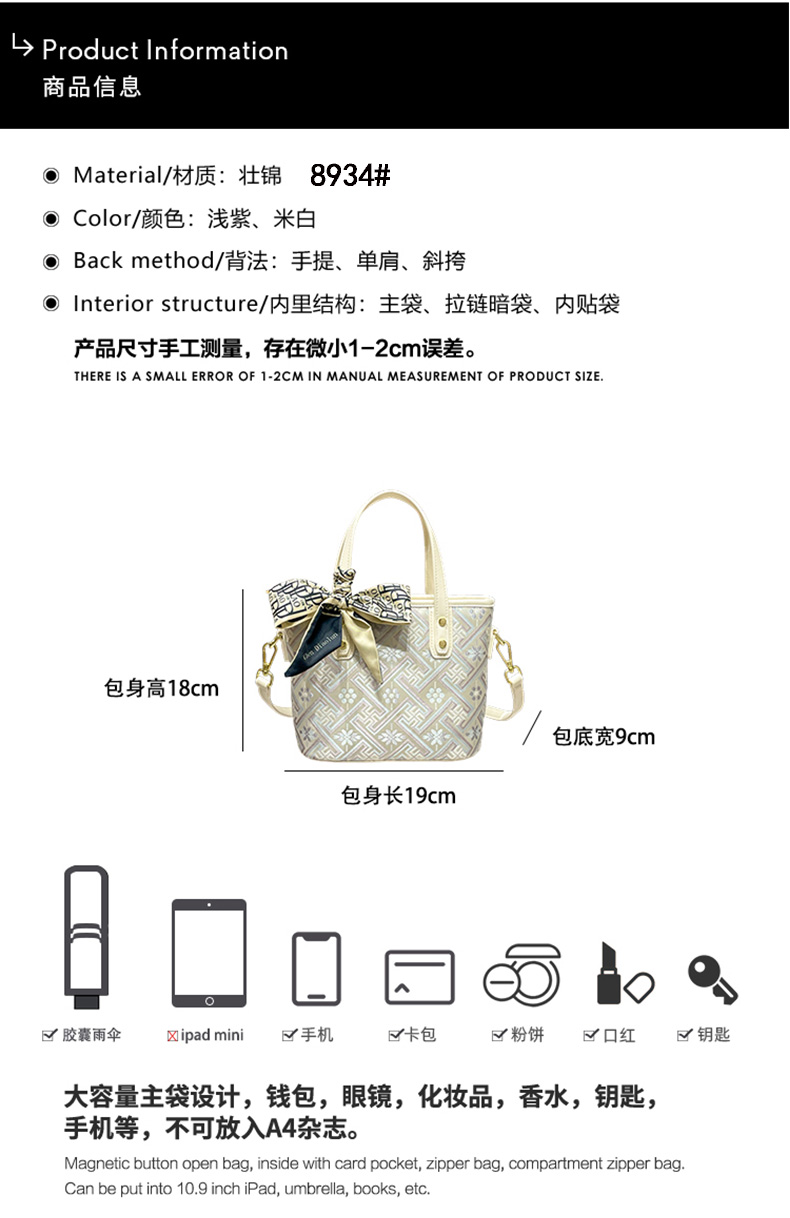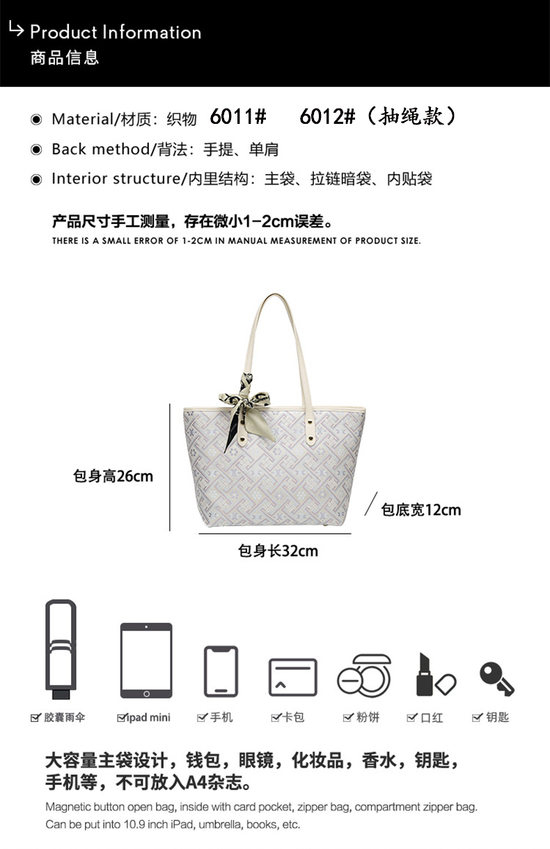 款式:8933#、8932#、8934#、6011#、6012#(包包具体尺寸请参考详情页)