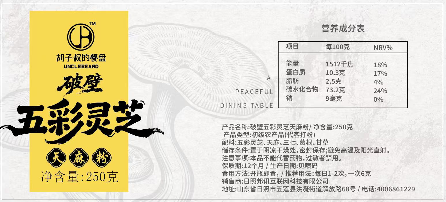 【产品名称】破壁五彩灵芝天麻粉