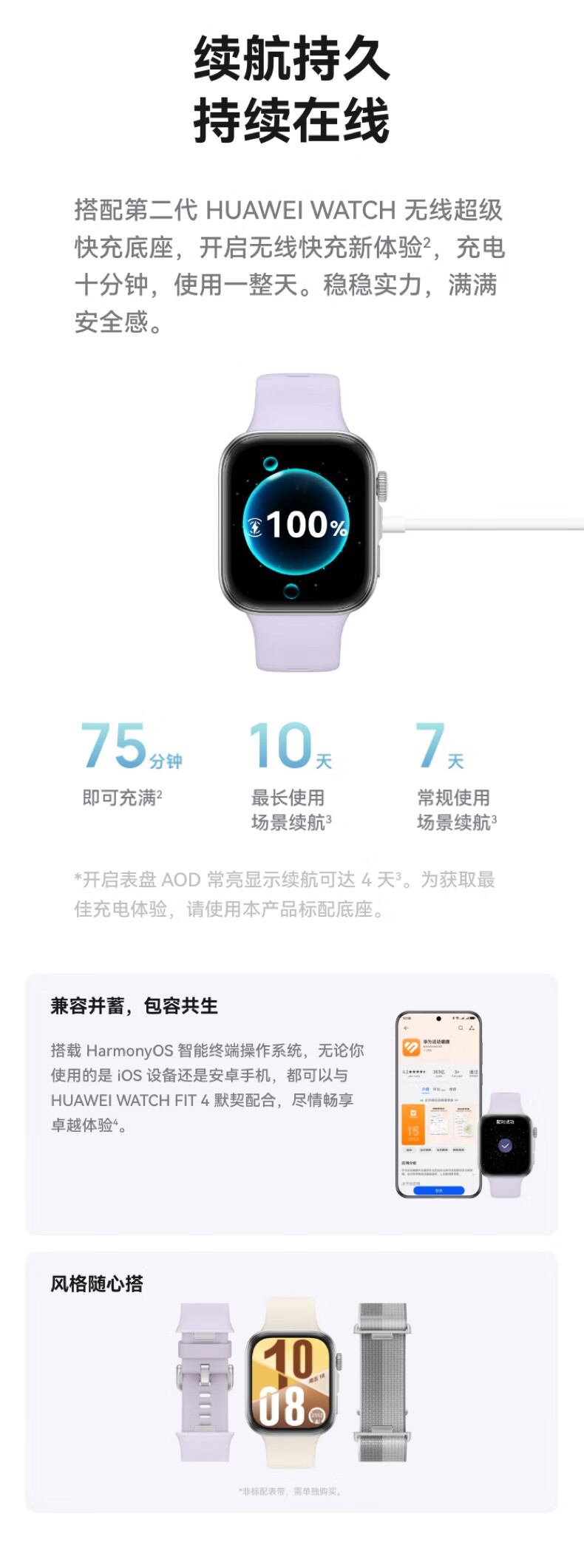 华为HUAWEI WATCH FIT 4 华为运动智能手表超轻薄大屏潮流运动蓝牙通话睡眠监测fit4