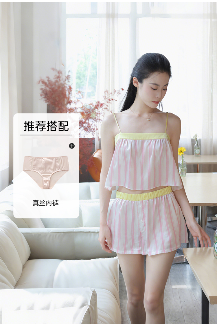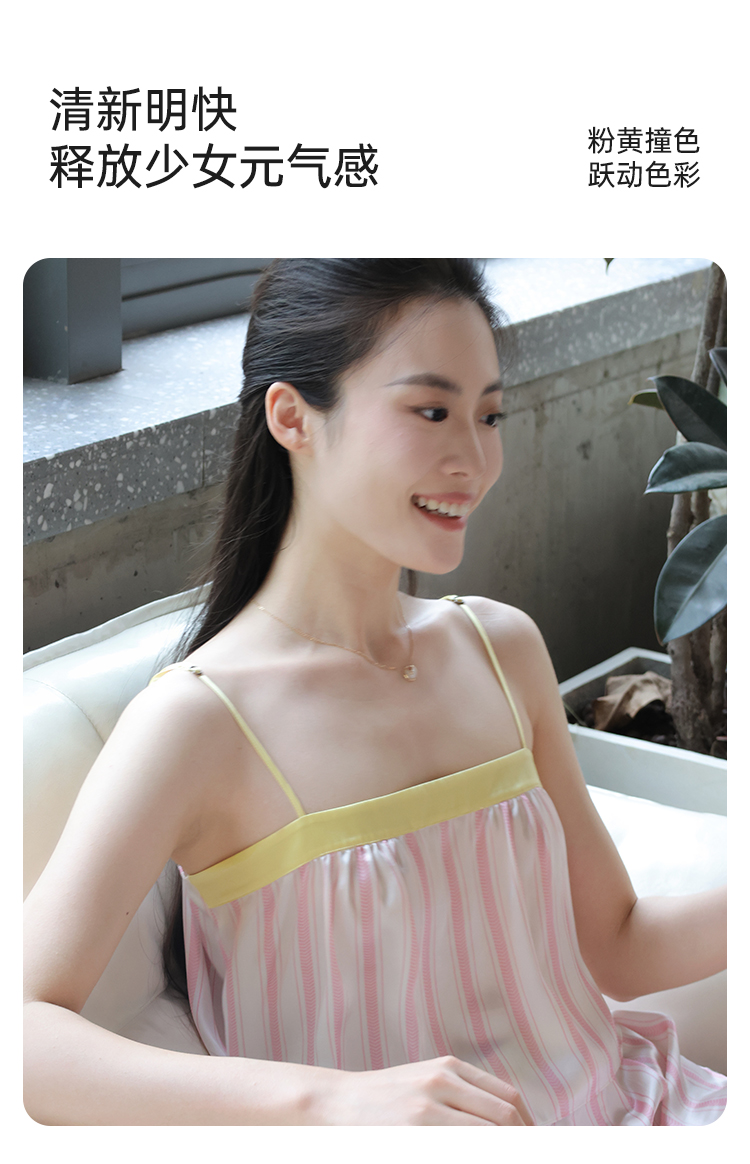 多巴胺』桑罗100%桑蚕丝悦动条纹真丝吊带套装可外穿2025年新款