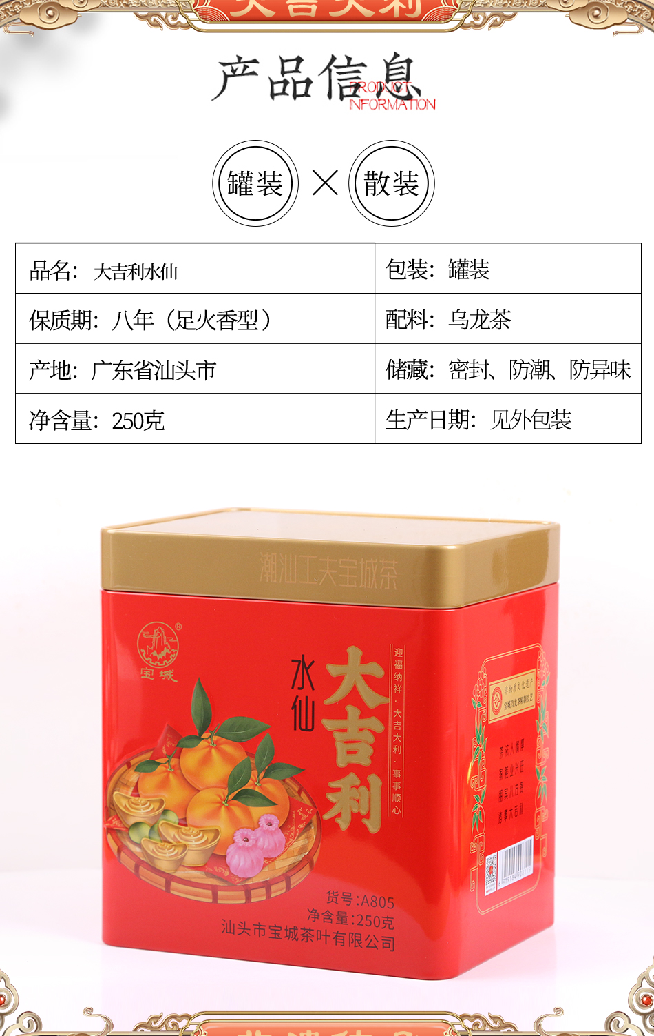 宝城大吉利水仙茶叶散装罐装浓香型乌龙茶礼盒装岩茶A805