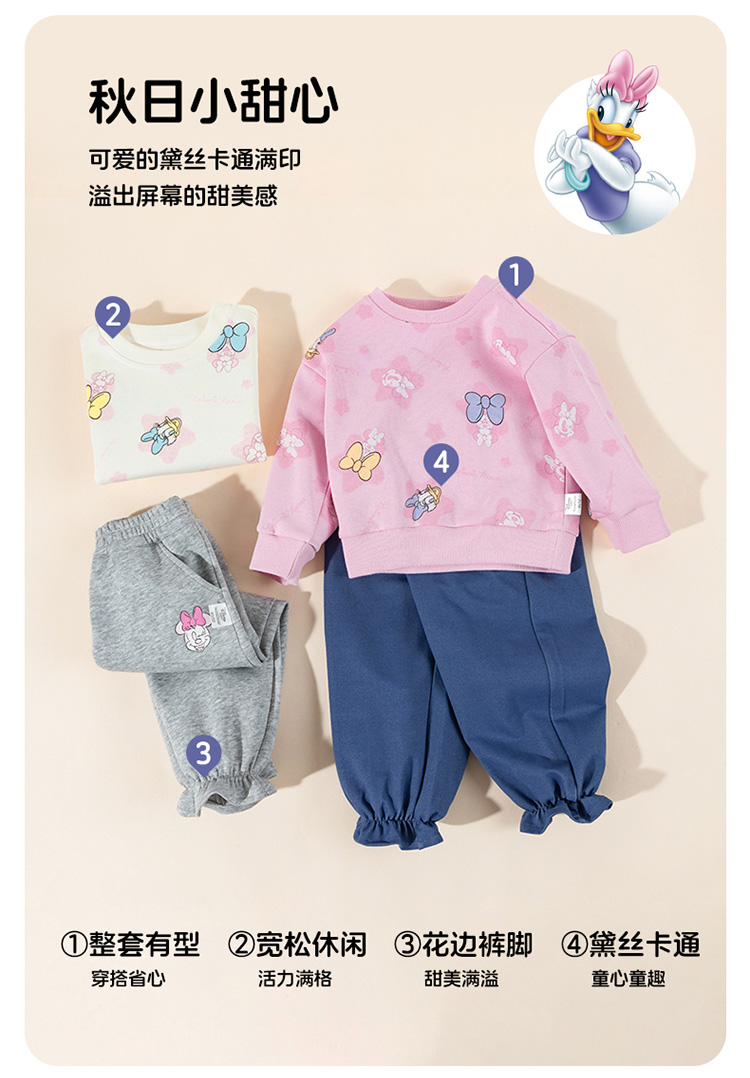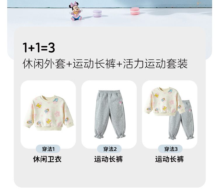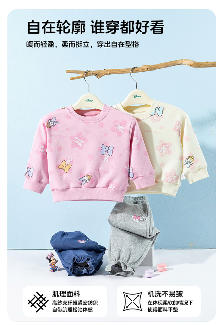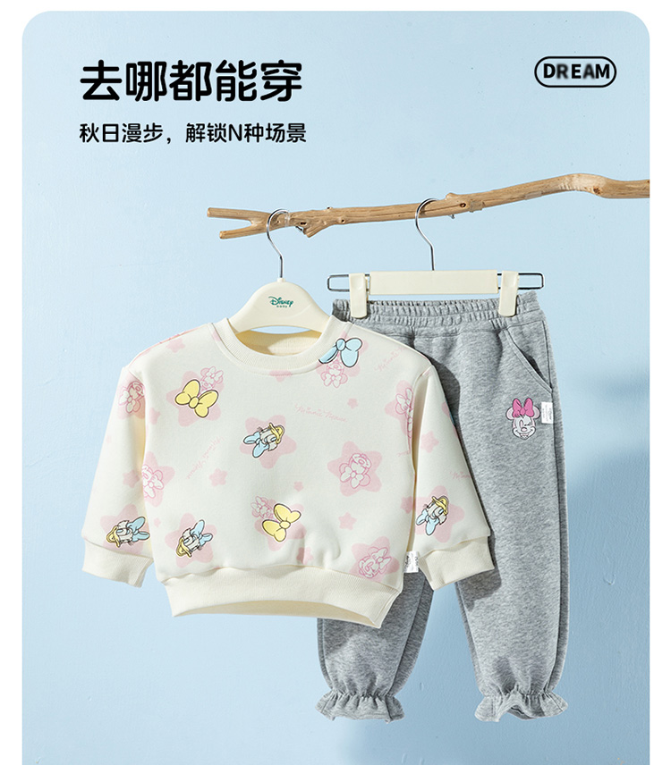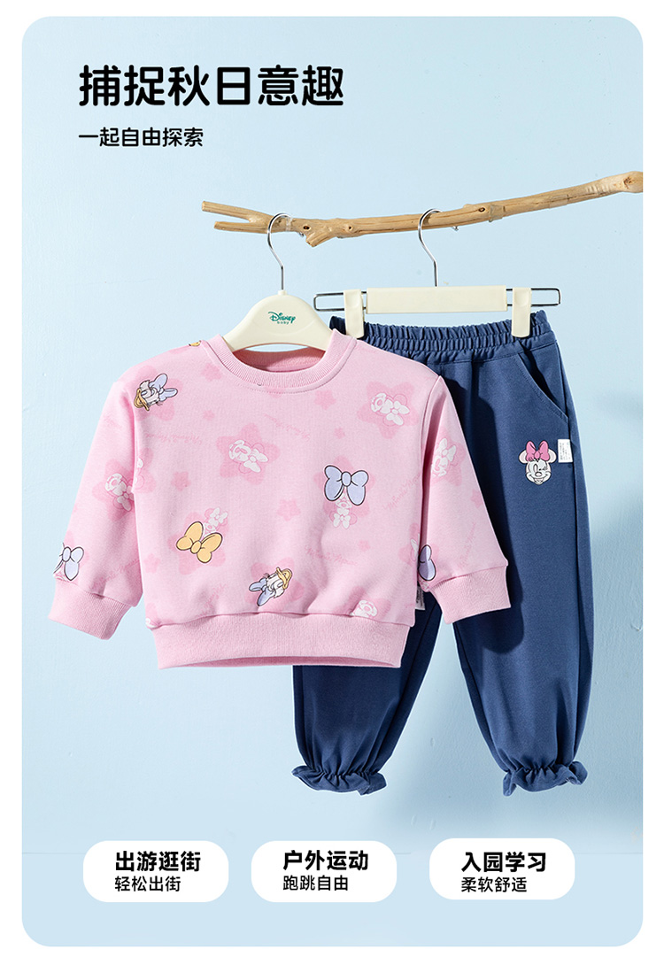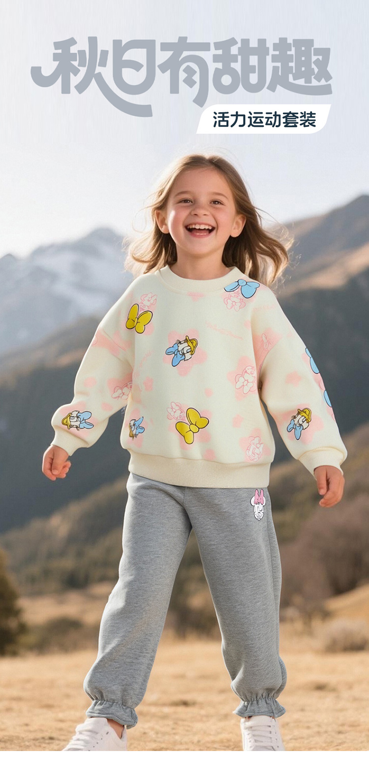 迪士尼2025春秋新款女童卫衣套装宽松舒适耐磨不易起球运动休闲套装ZD3ET028