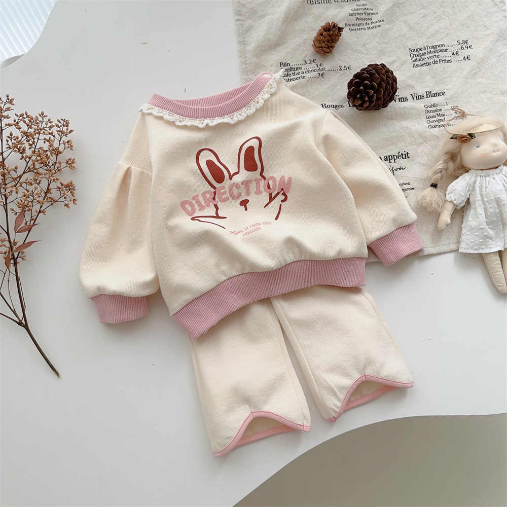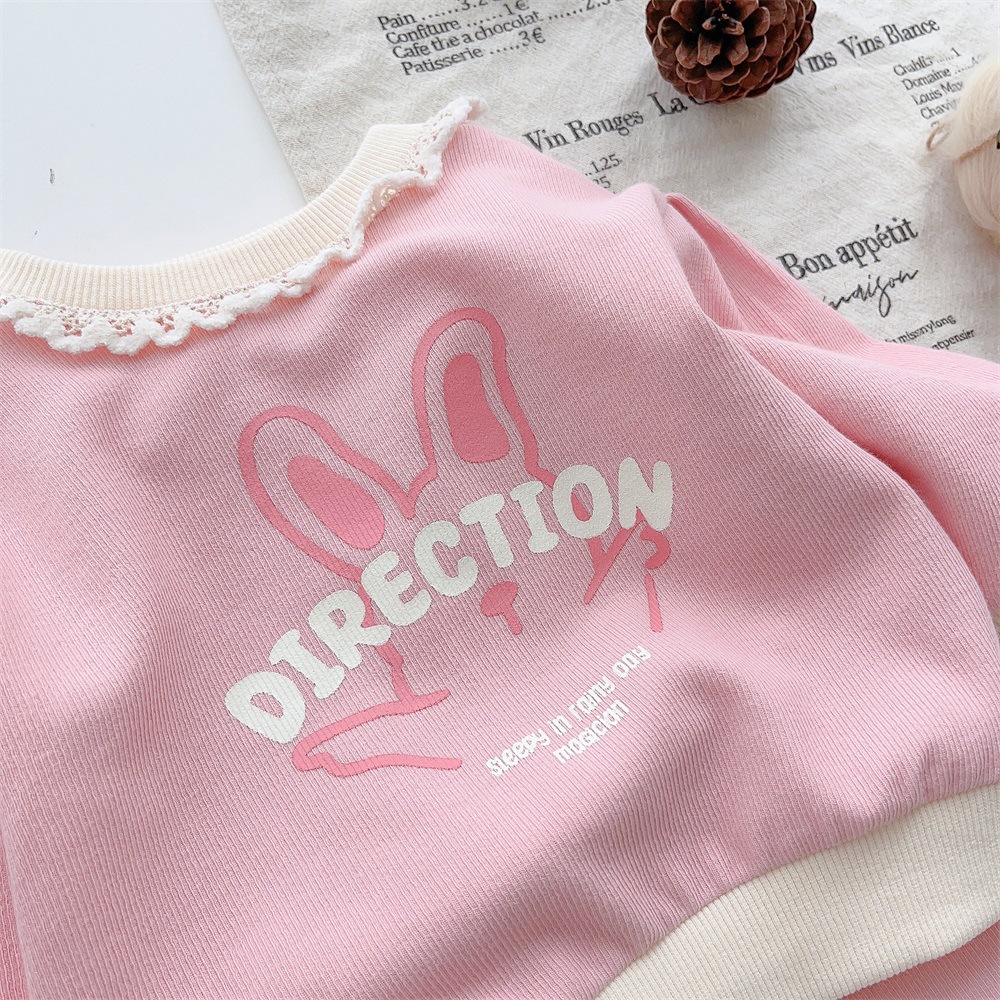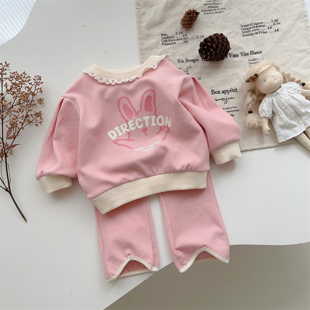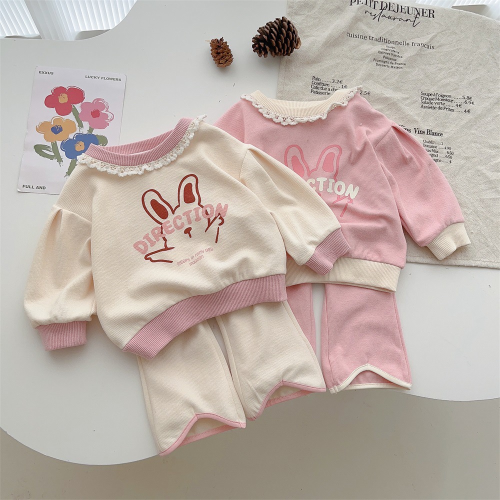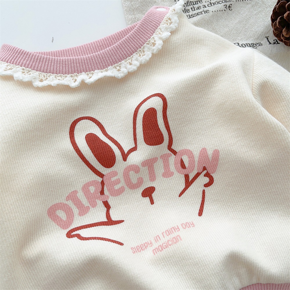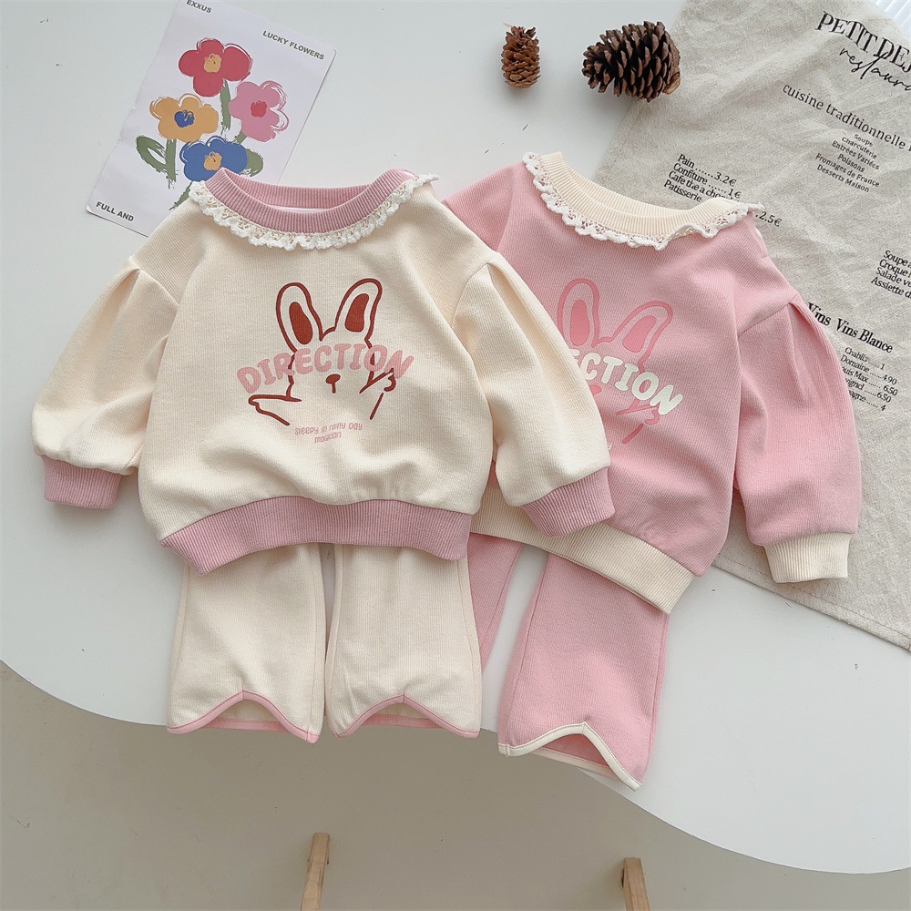 【ins甜美小兔宝宝卫衣长裤套装】2024春秋儿童外出服a类女小童两件套
