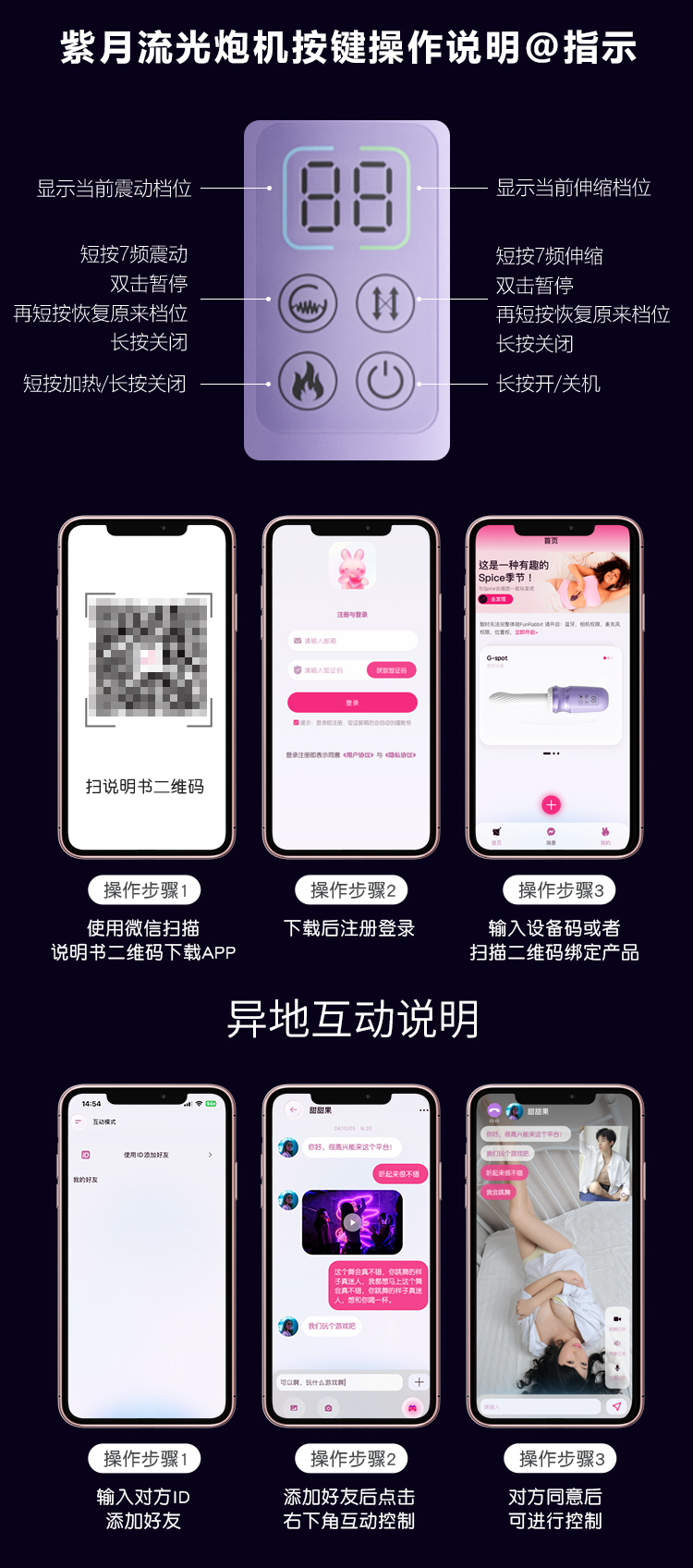 谜姬紫月流光高速迅猛伸缩炮机智能加温APP款