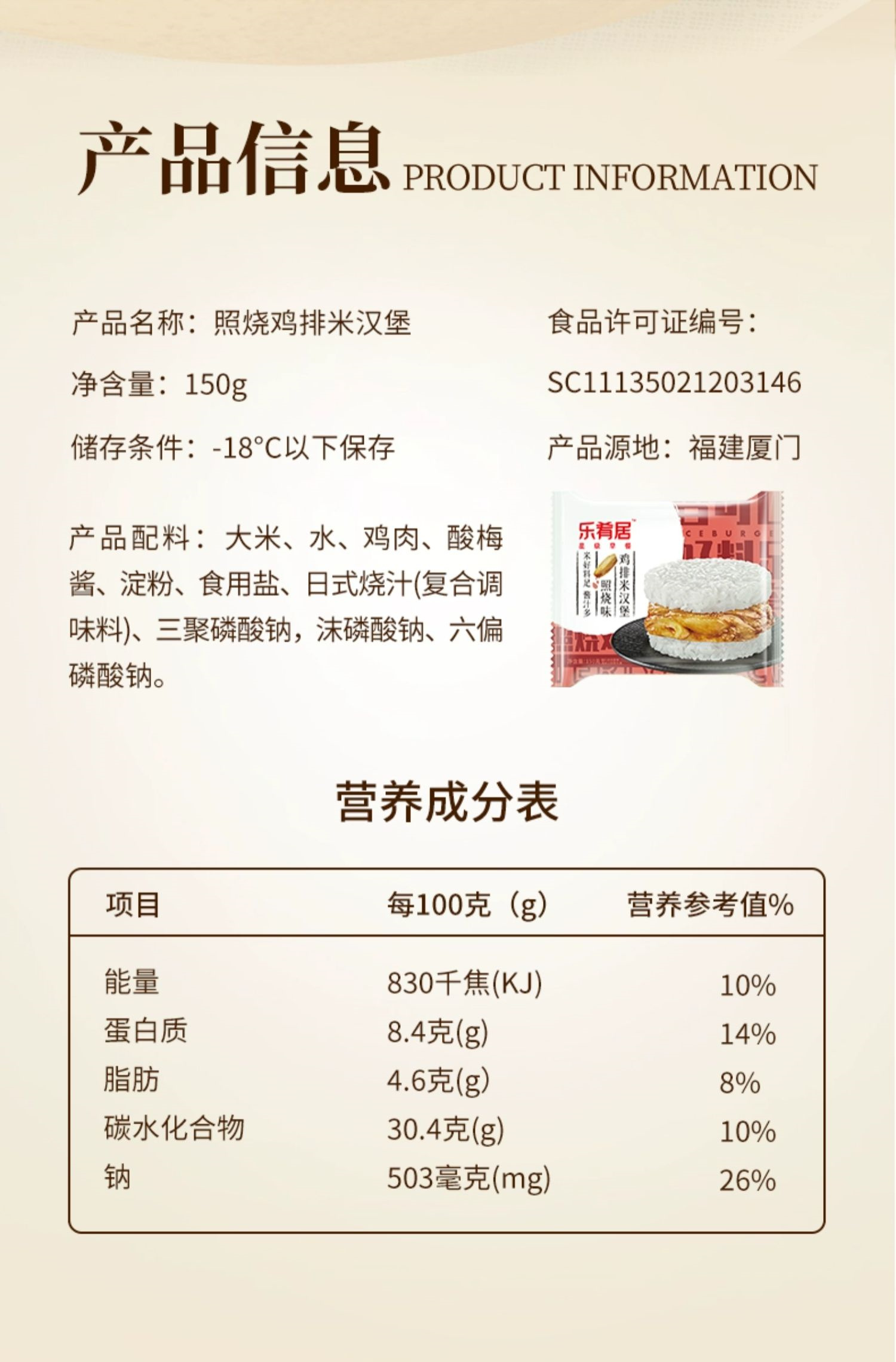 乐肴居照烧鸡排米汉堡饭团加热即食早餐半成品速食